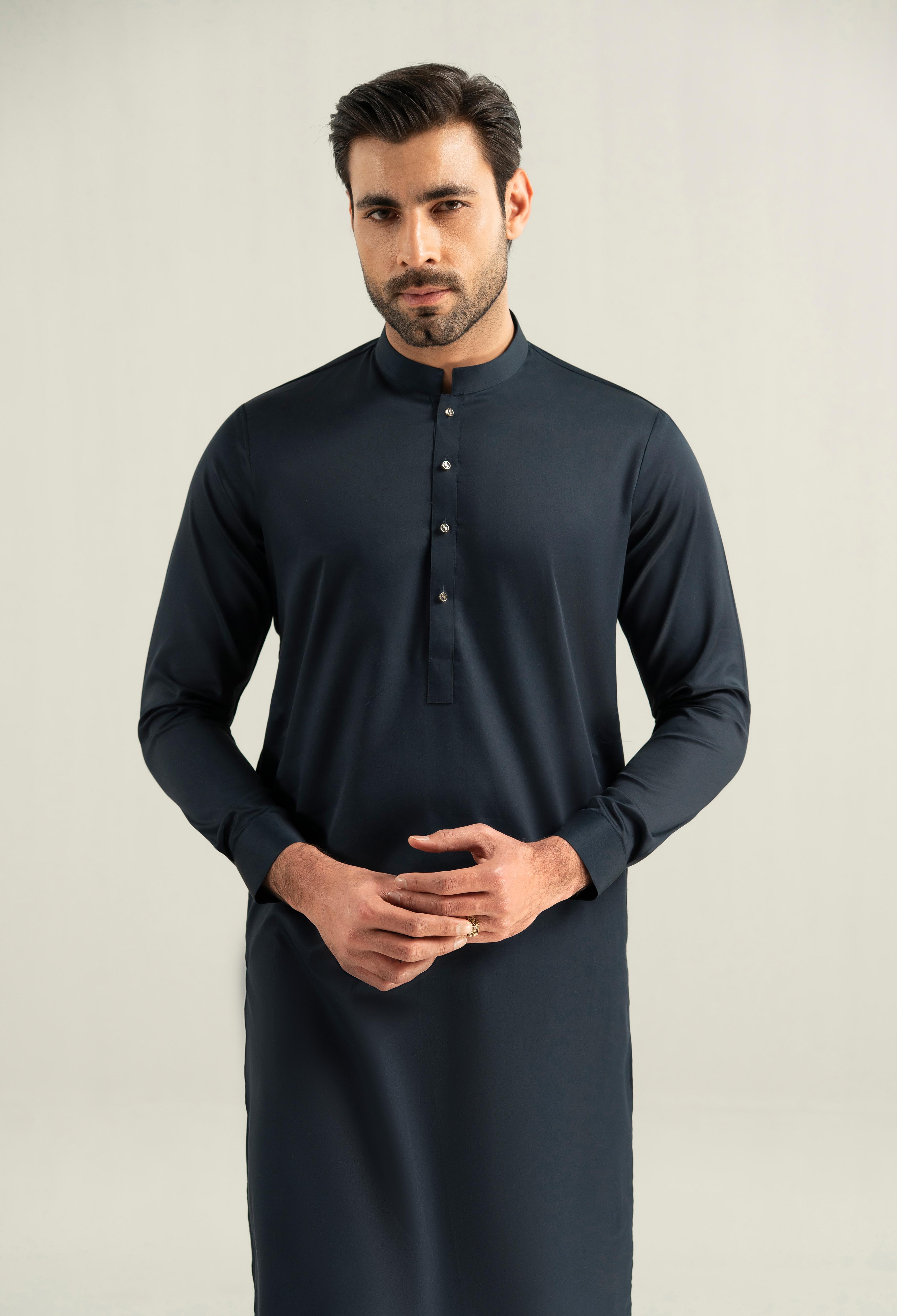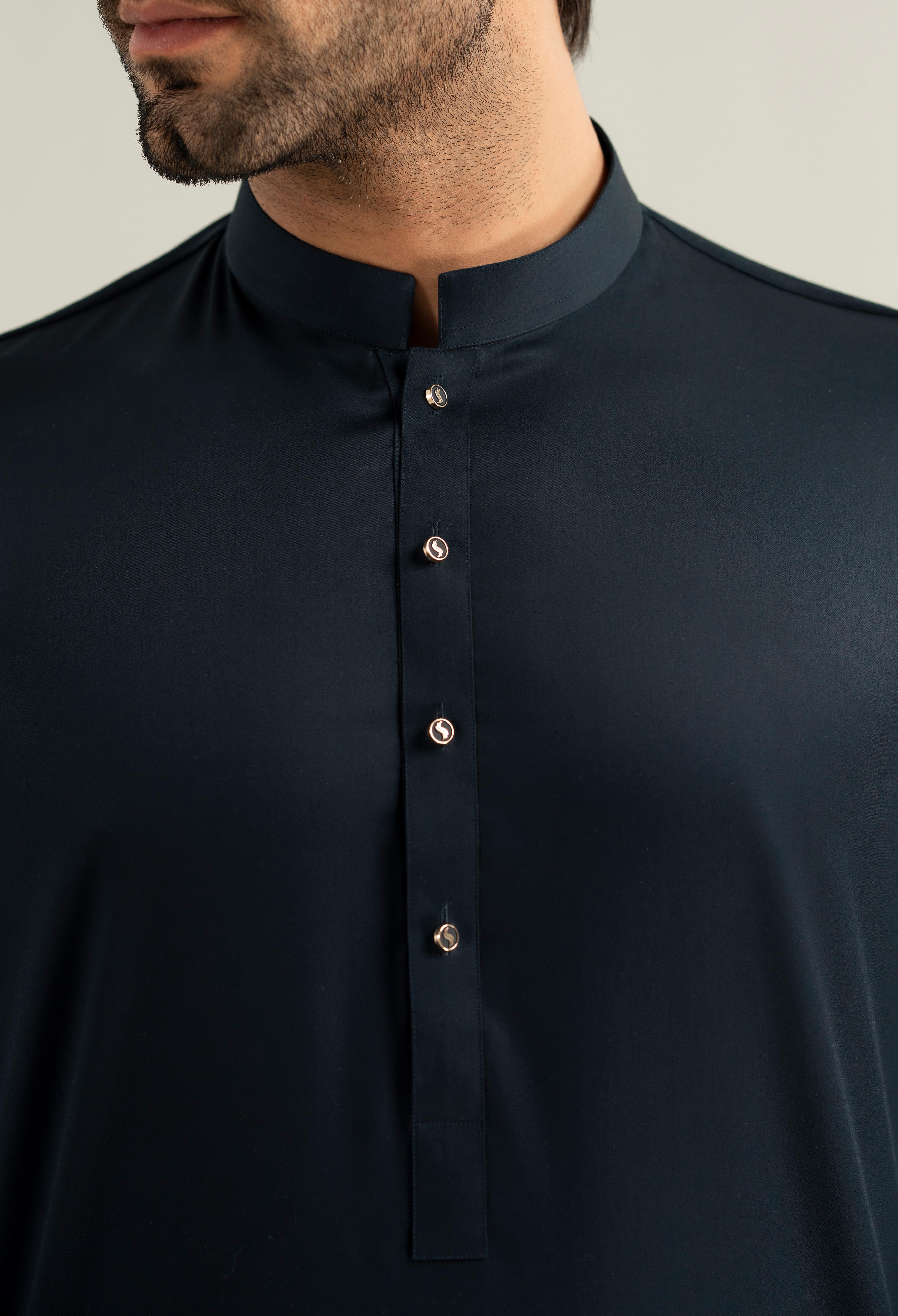 Defined by refined detailing and contemporary design, this festive piece offers a modern yet elevated elegance. Featuring a straight band collar, hidden placket, and rivets on the sleeve placket, it offers subtle sophistication.
