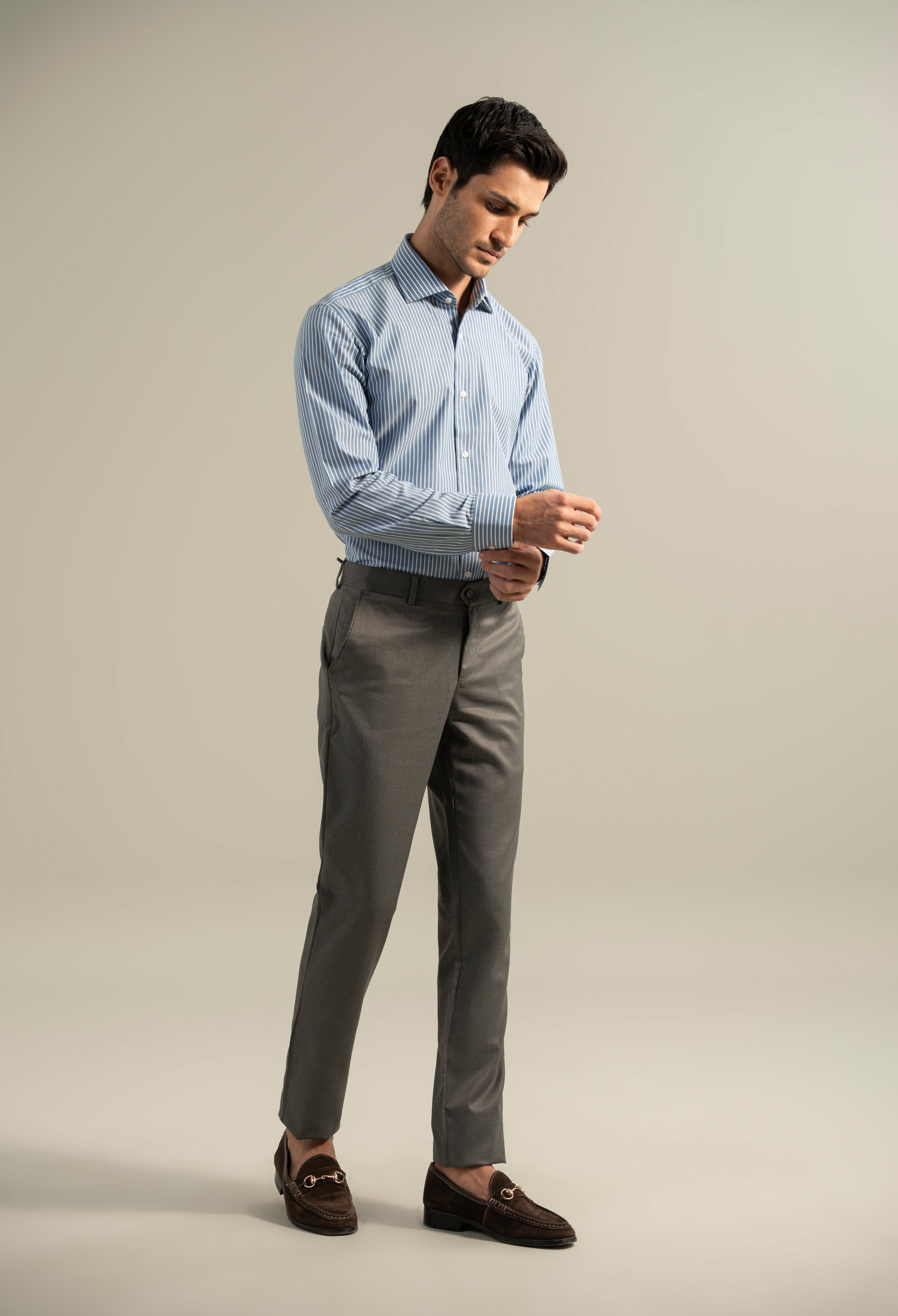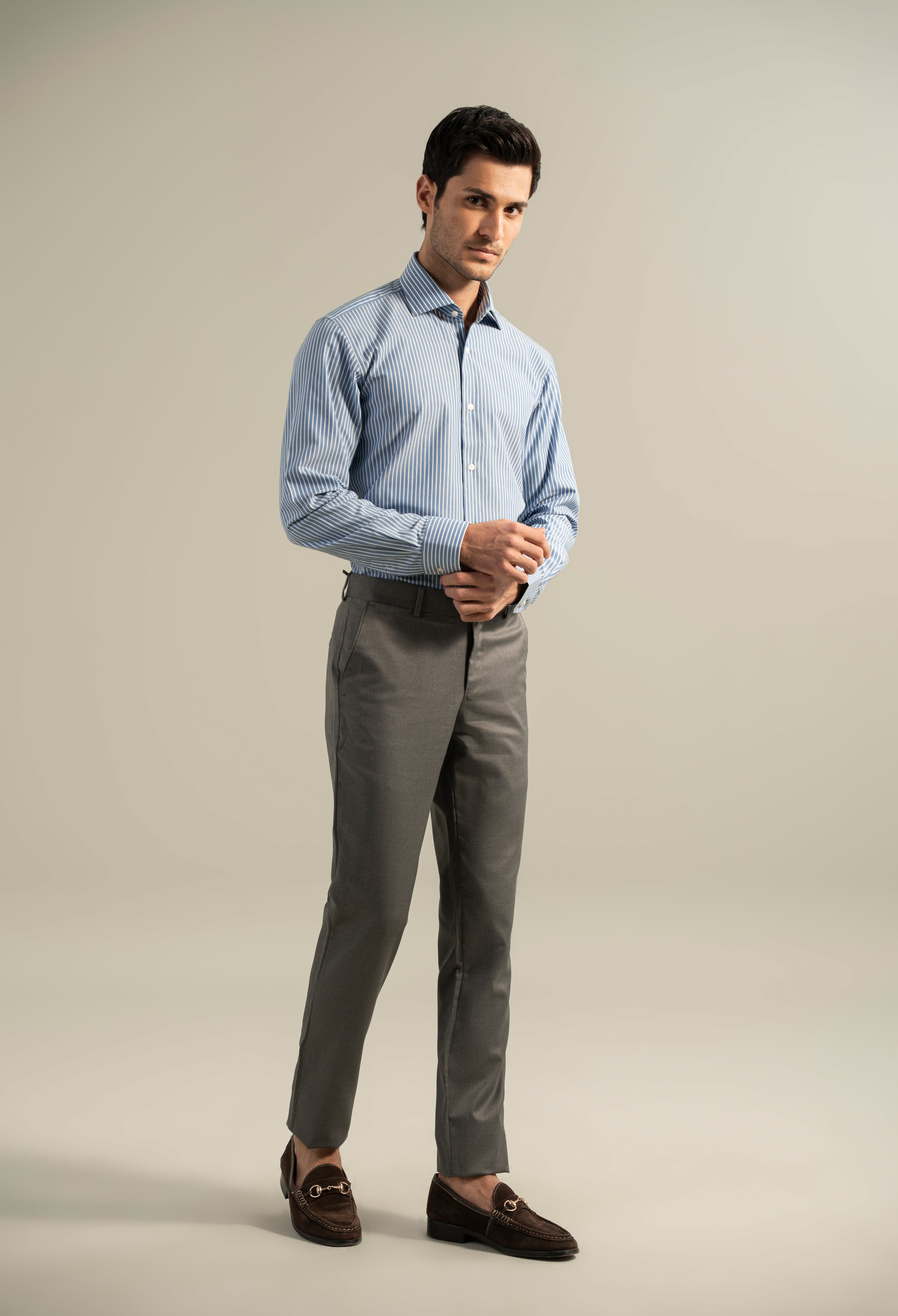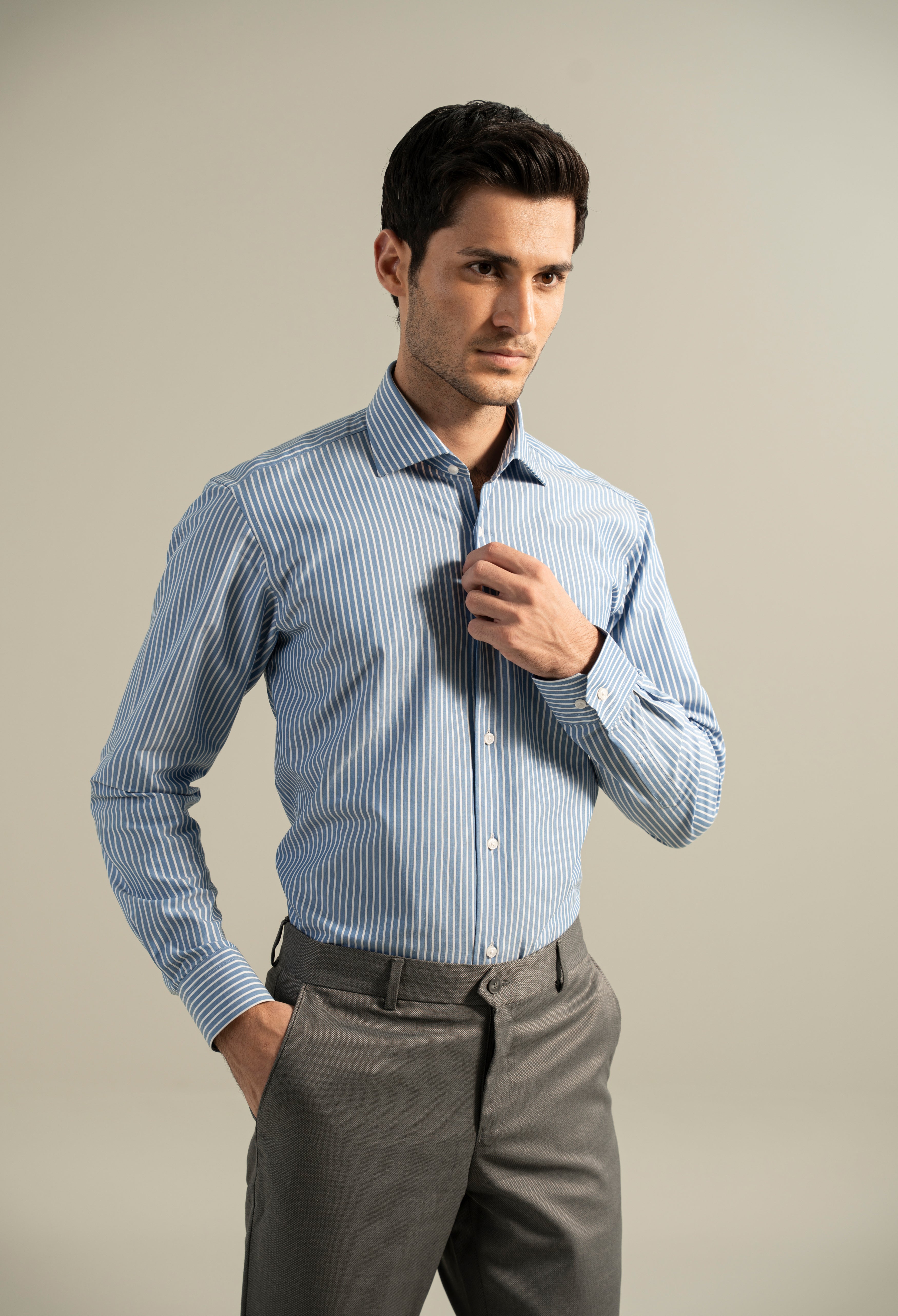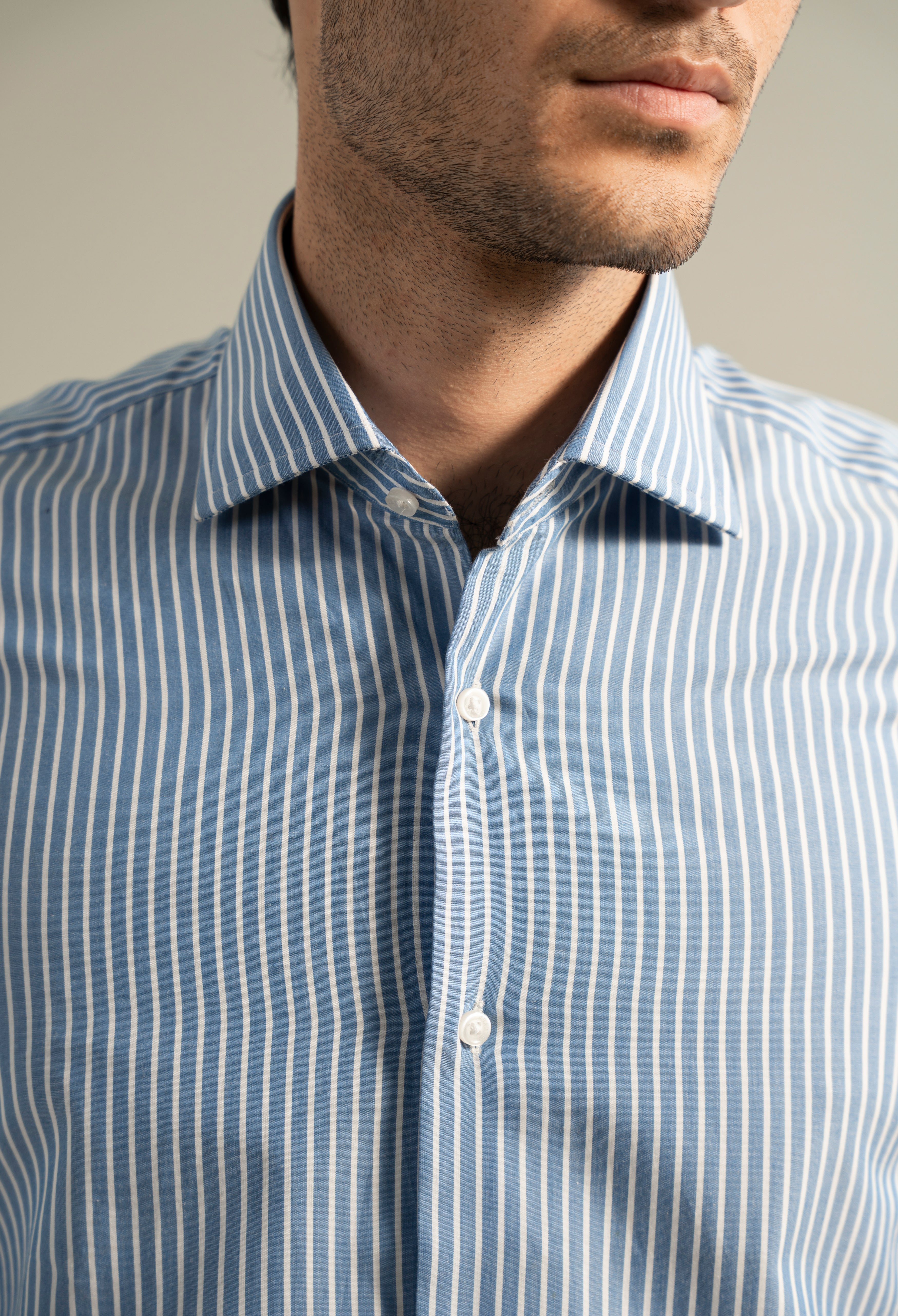 Elevate your wardrobe with the Artic Blue Stripe Shirt, expertly crafted for a refined and polished look. Its subtle stripes offer a timeless pattern that pairs effortlessly with both casual and formal attire.