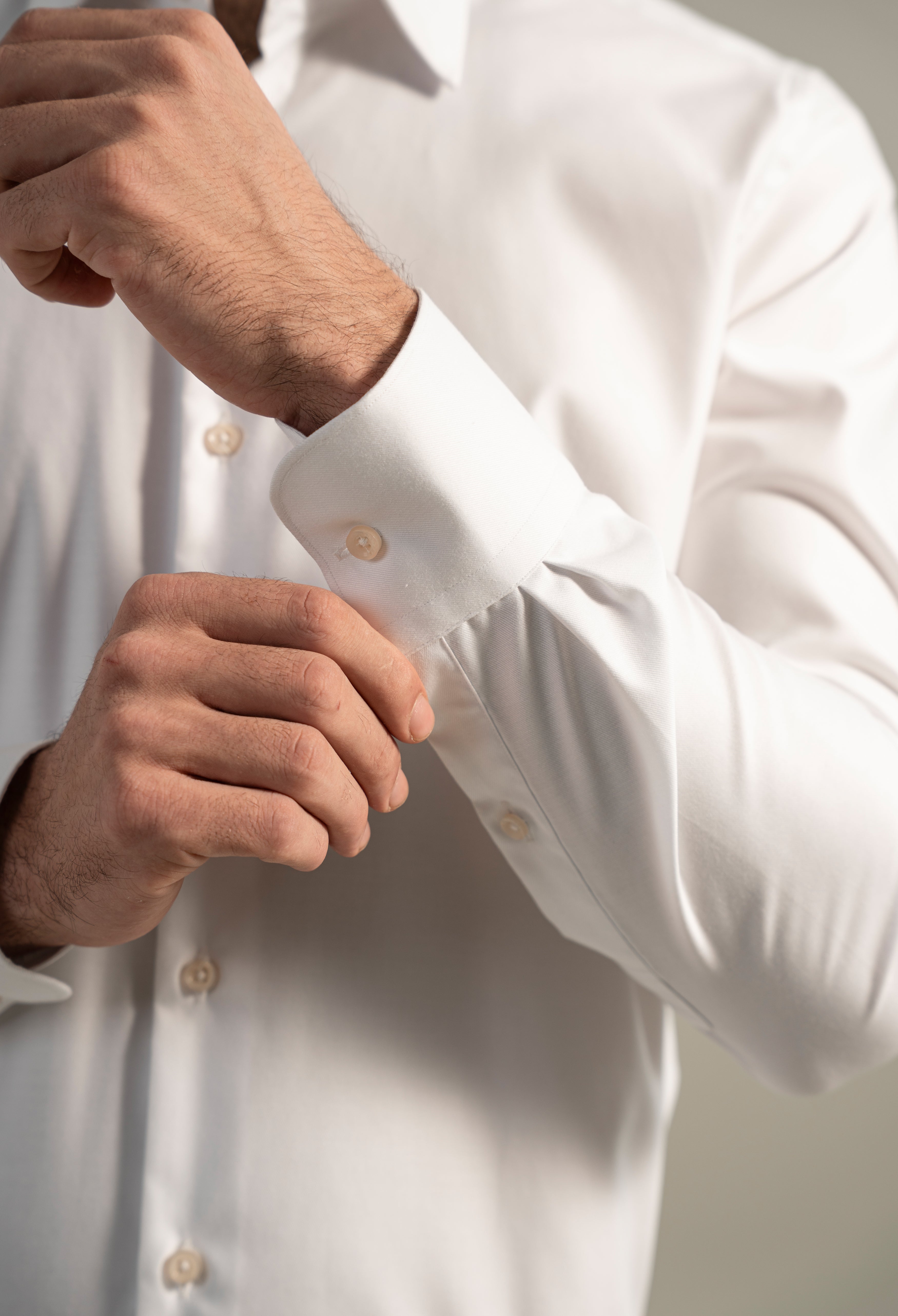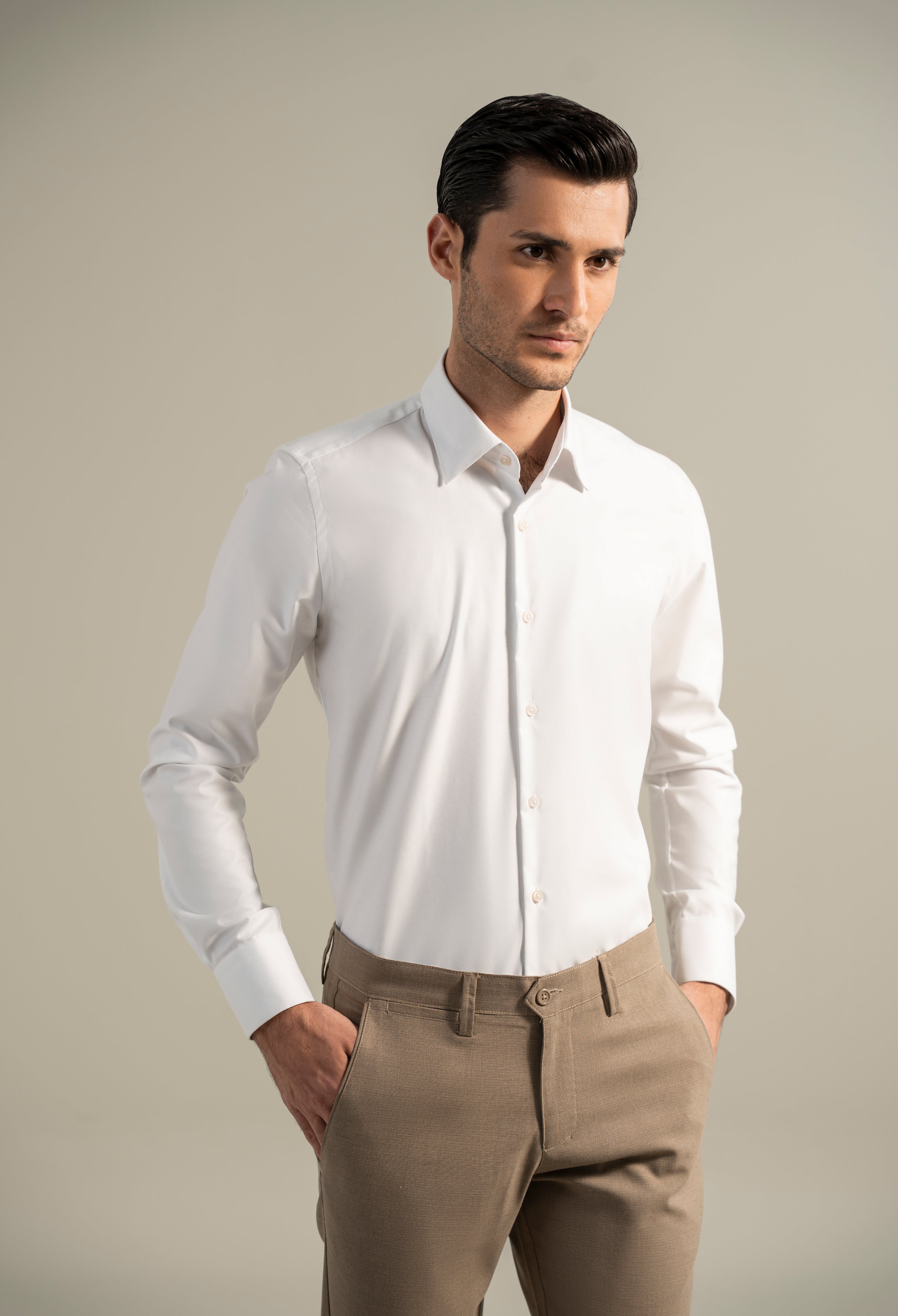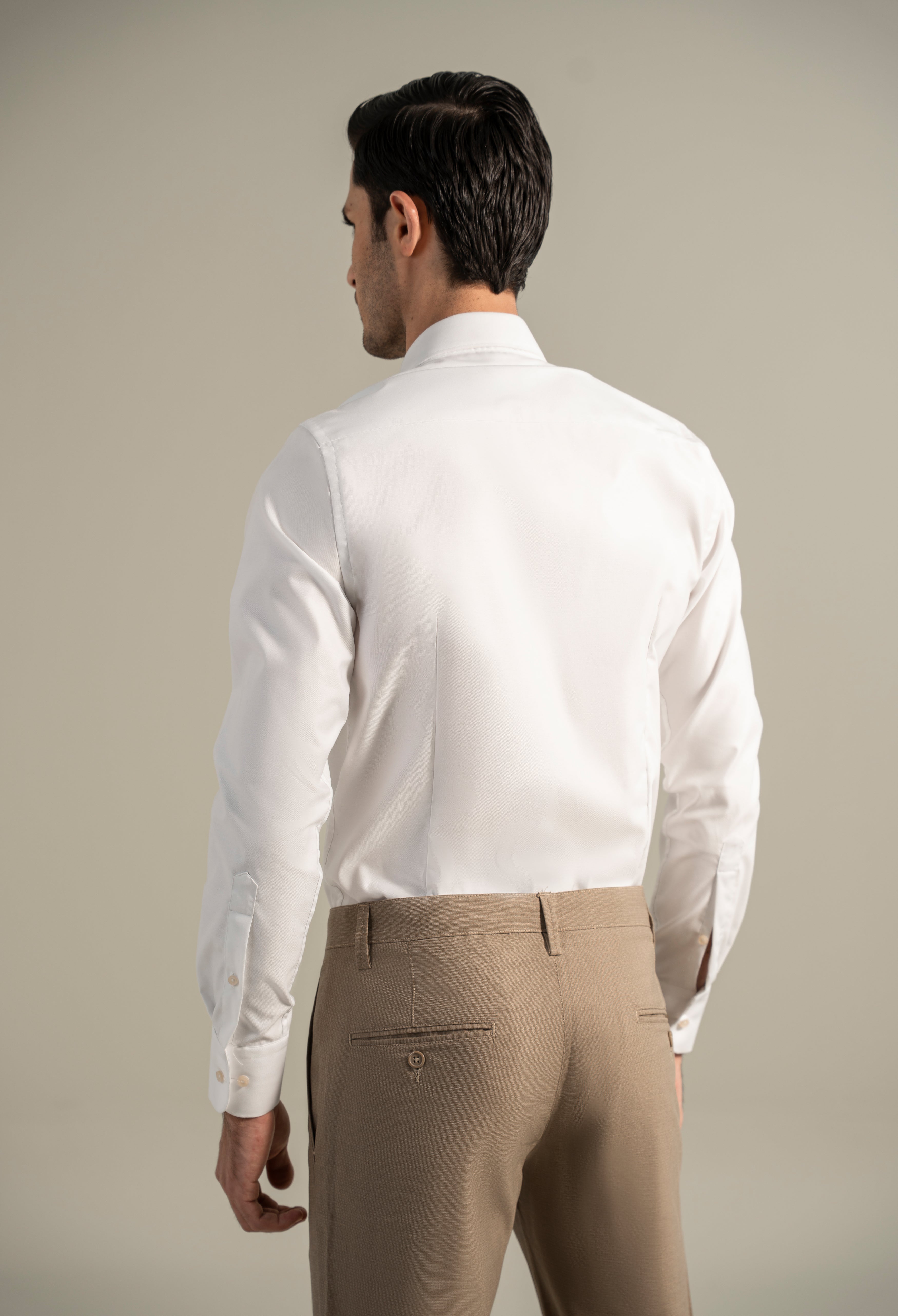 This Formal Shirt is made from smooth fabric with durable plastic buttons. It has a patch pocket, a rounded hem, and a small pleat at the back for comfort. The collar and placket are simple and neat, and the cuffs have a diagonal cut for a clean finish. Perfect for a sharp, professional look.