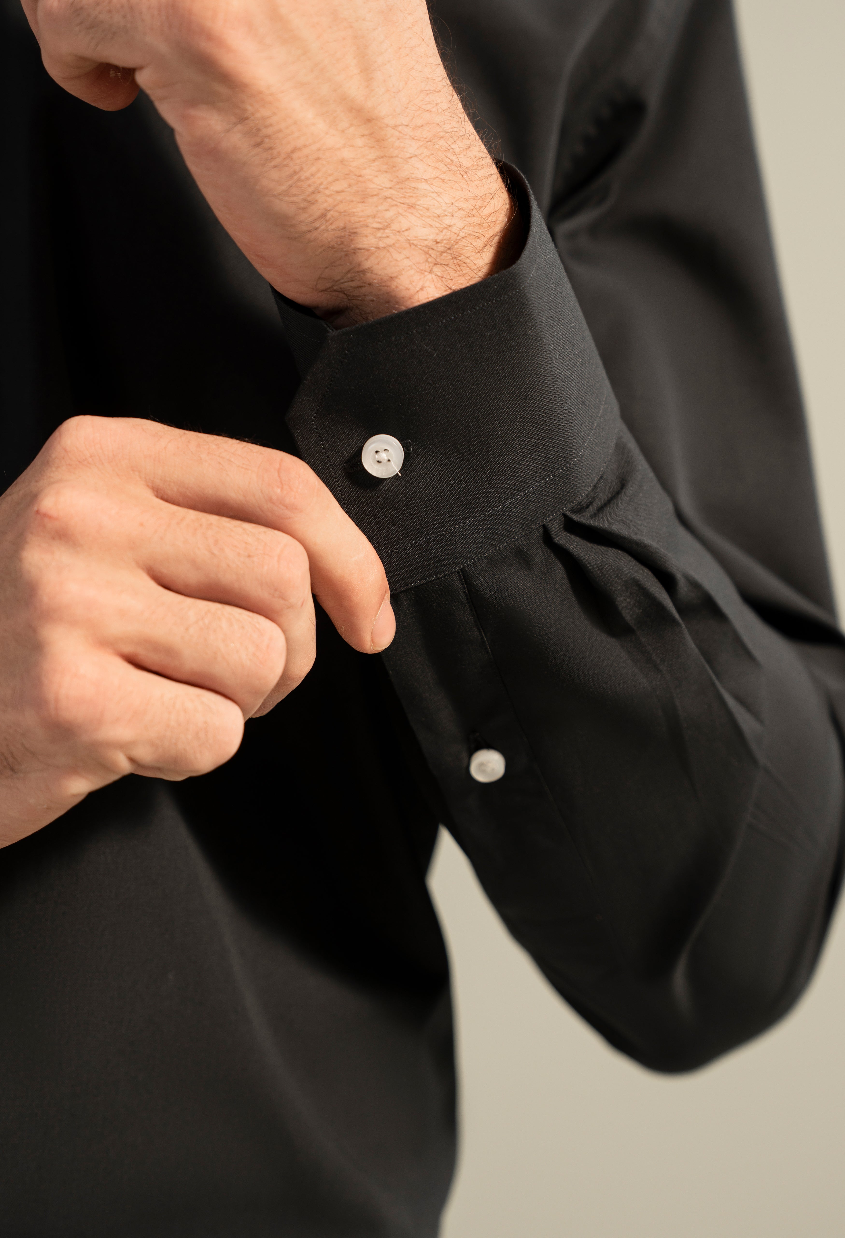 This Formal Shirt is made from smooth fabric with durable plastic buttons. It has a patch pocket, a rounded hem, and a small pleat at the back for comfort. The collar and placket are simple and neat, and the cuffs have a diagonal cut for a clean finish. Perfect for a sharp, professional look.