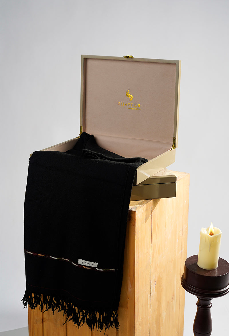 Black Pure Wool Men's Shawl is a pure wool shawl designed to keep you warm during the cold winter season. Our thick, luxurious shawl is crafted from 100% Pure Wool, providing superior softness and warmth.