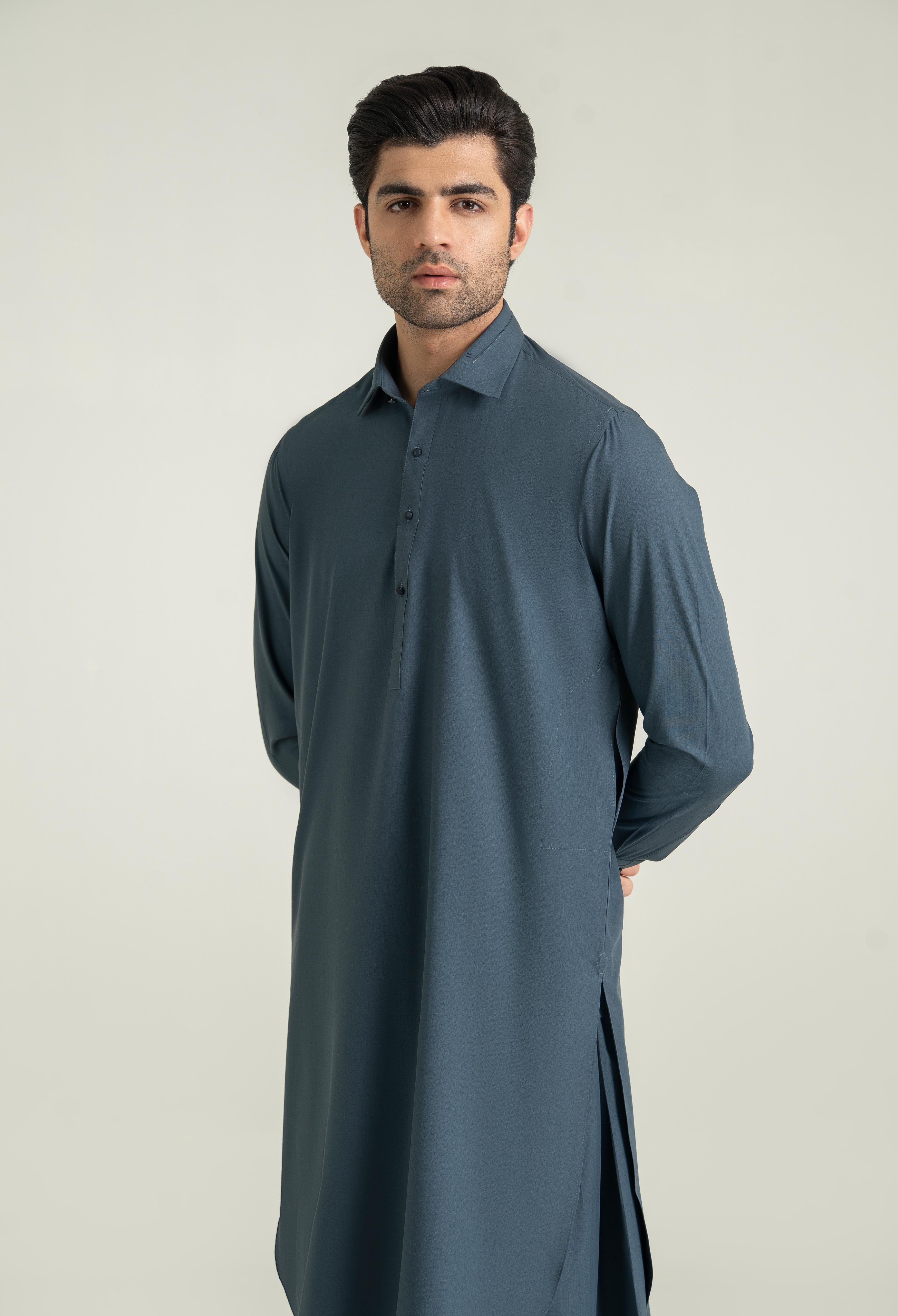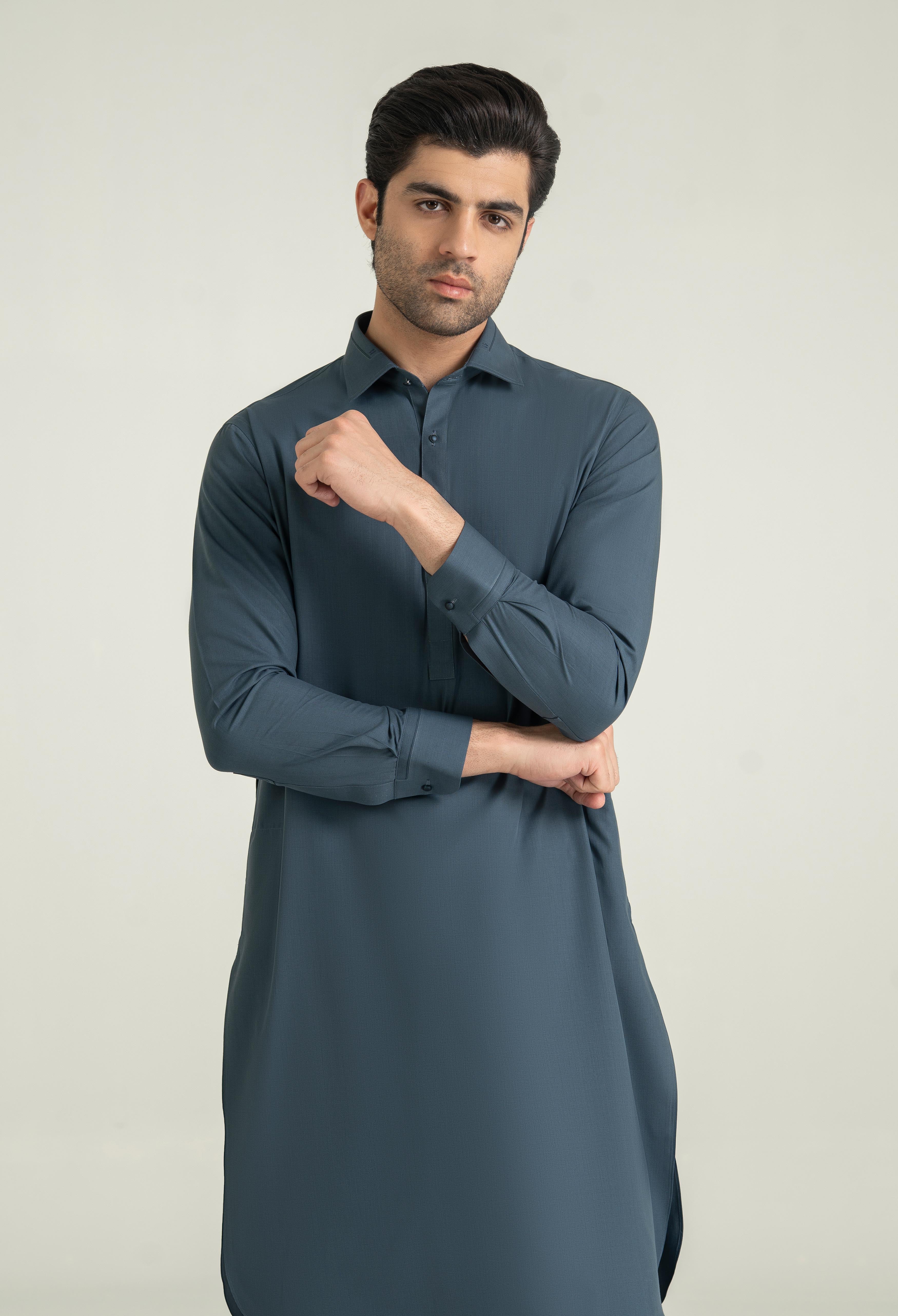 A refined fusion of traditional Eastern tailoring and modern detailing. This shirt features a classic collar with contrast piping and patch detail, finished with double straight stitching for a clean, structured look.