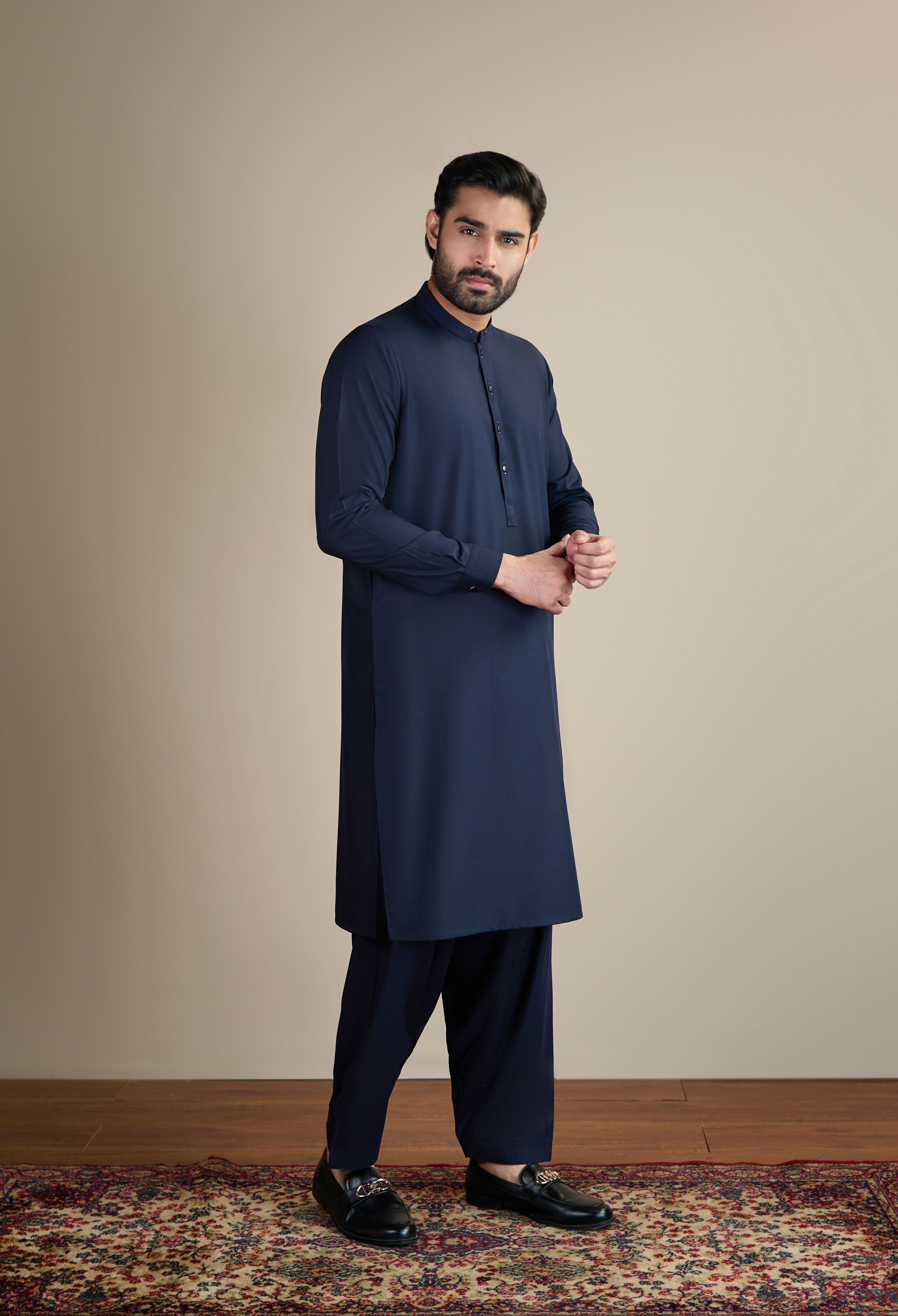 Experience refined elegance with this Topsia Dark Violet Blue Detailing Kameez Shalwar, a testament to superior tailoring and design precision. The ensemble features expertly executed detailing that showcases traditional craftsmanship at its finest.
