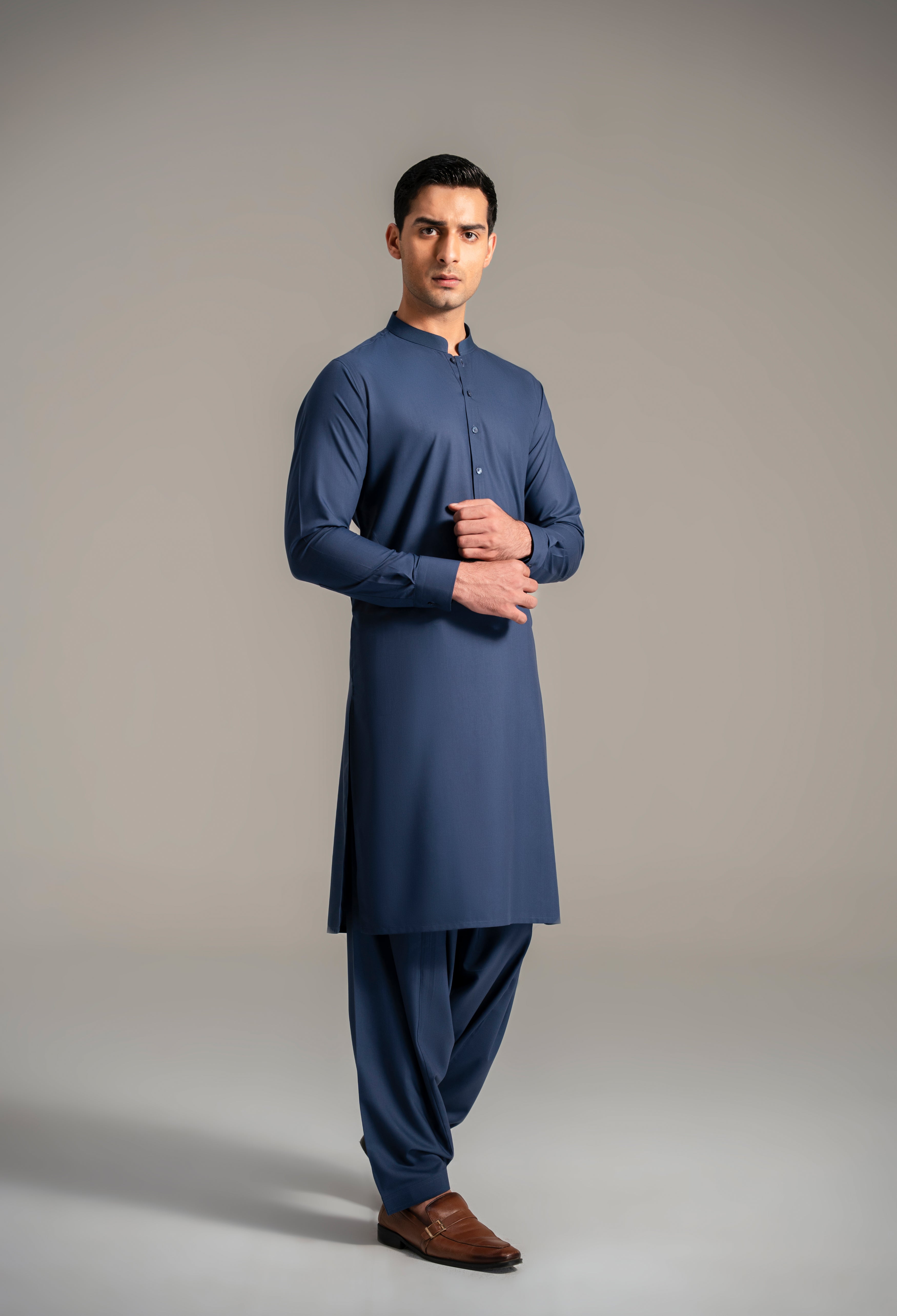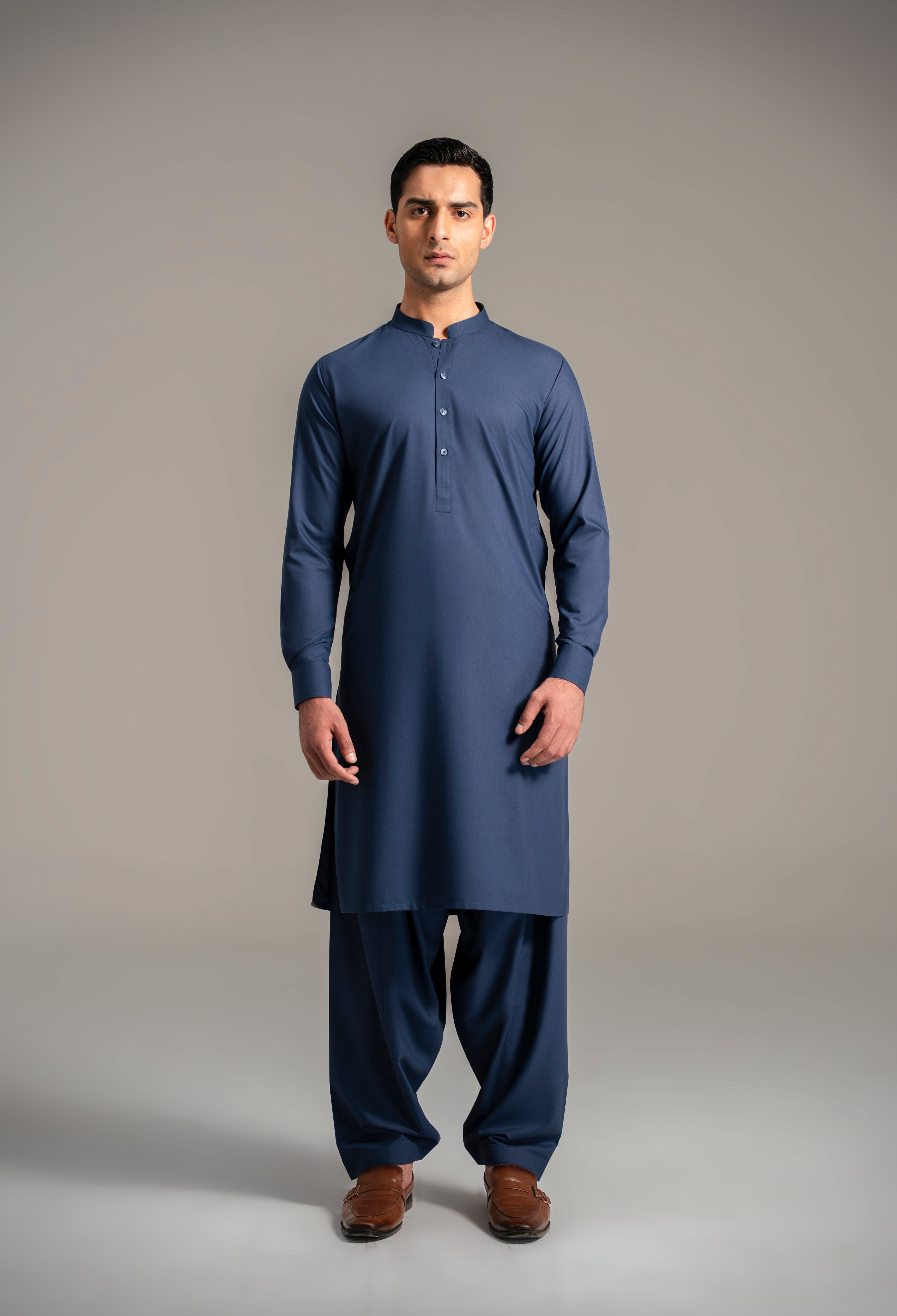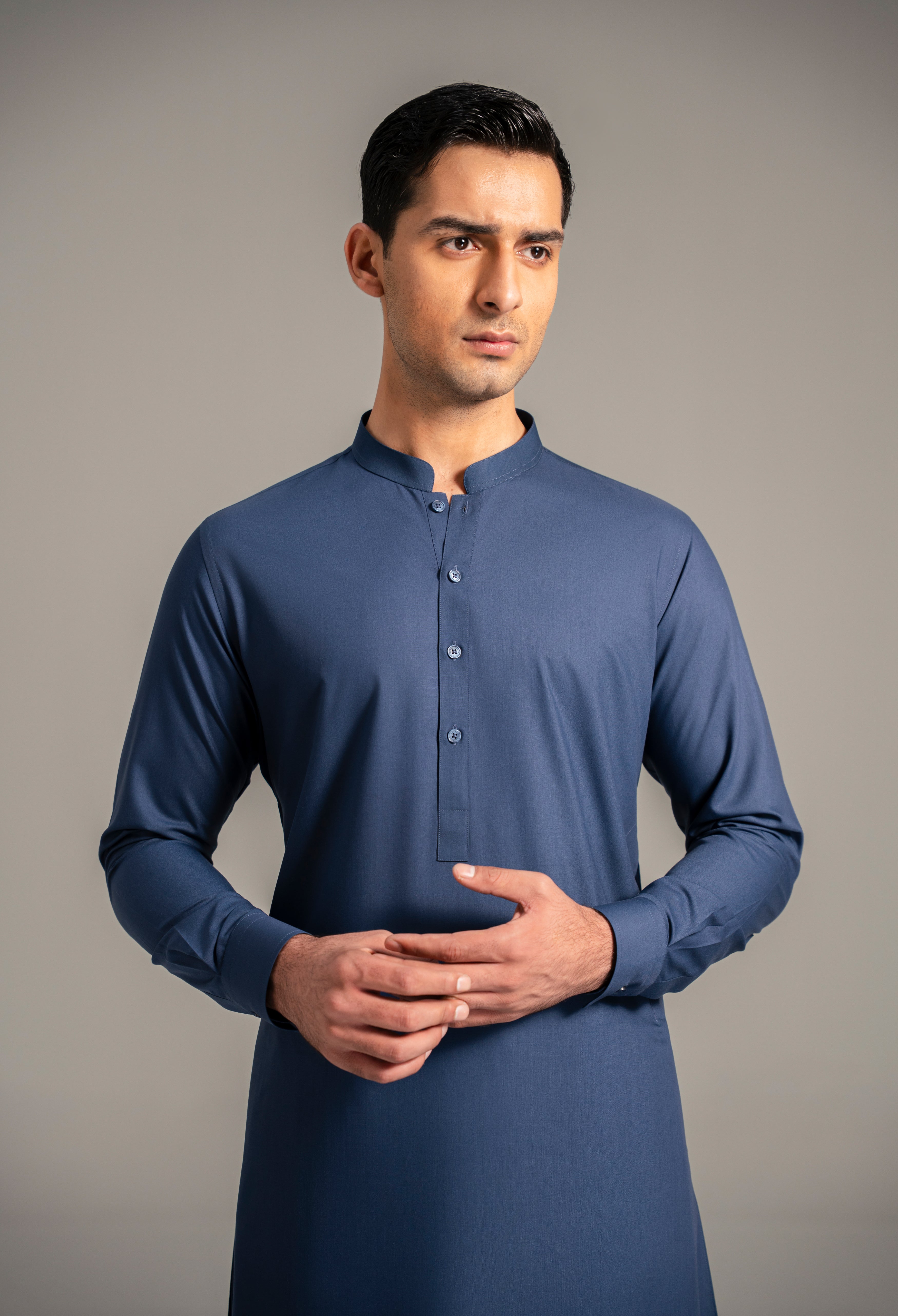 Upgrade your wardrobe with our toyo toyo Kameez Shalwar. With a Band collar, straight hem, and straight cuffs, this stylish article is perfect for any occasion. Plus, the Metal Shaffer logo on the galfi adds a touch of sophistication. Look and feel your best with this versatile and trendy outfit.