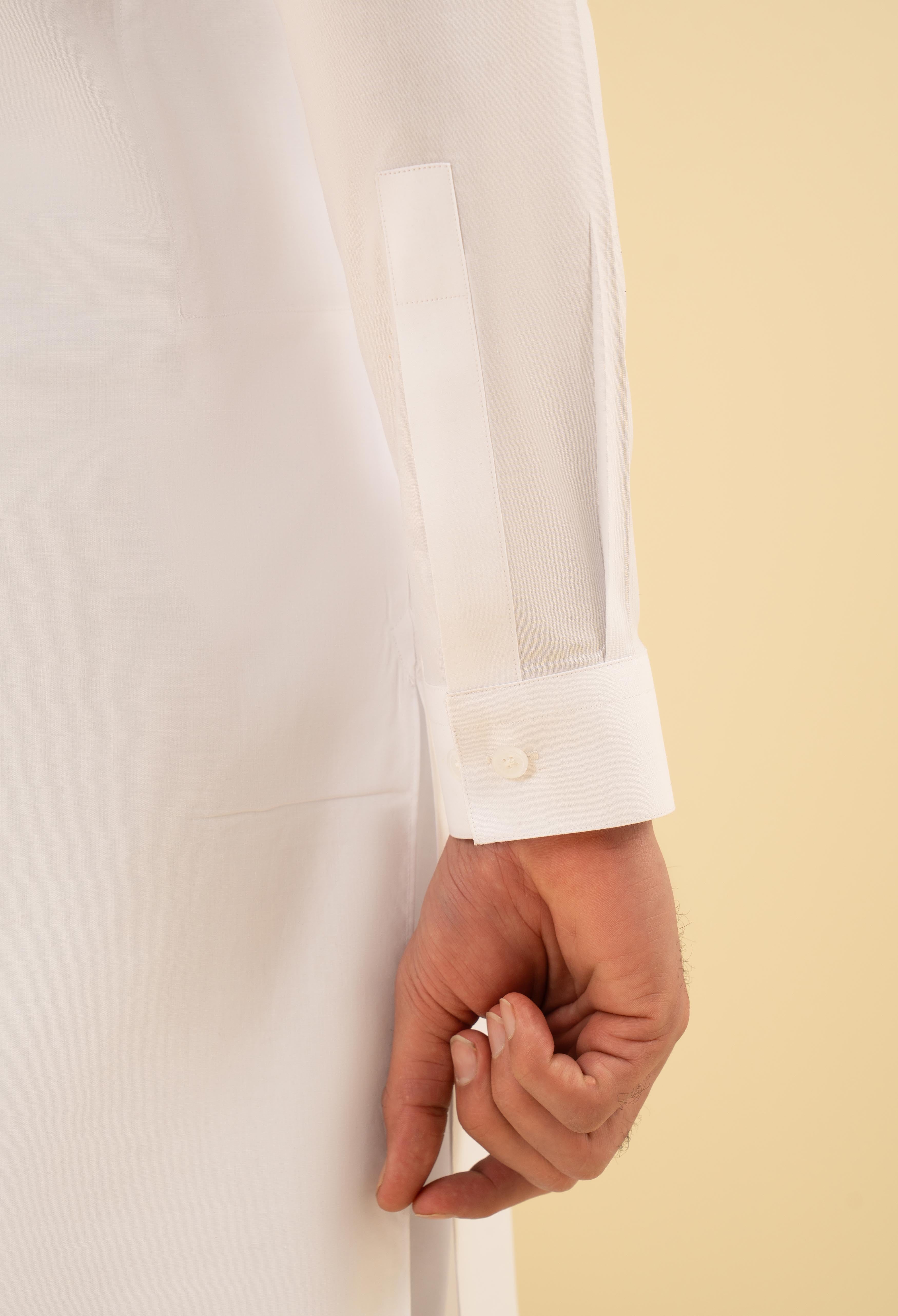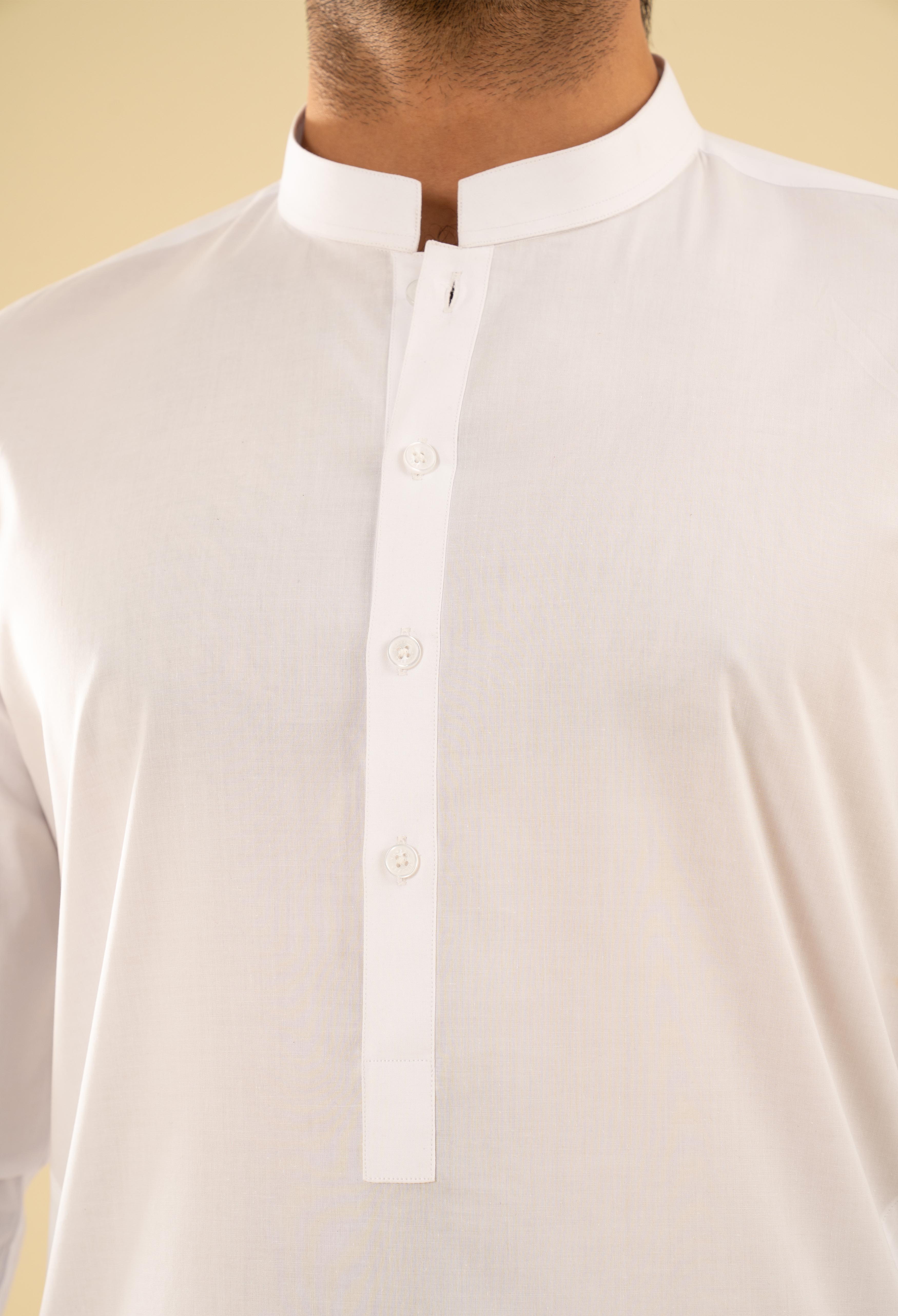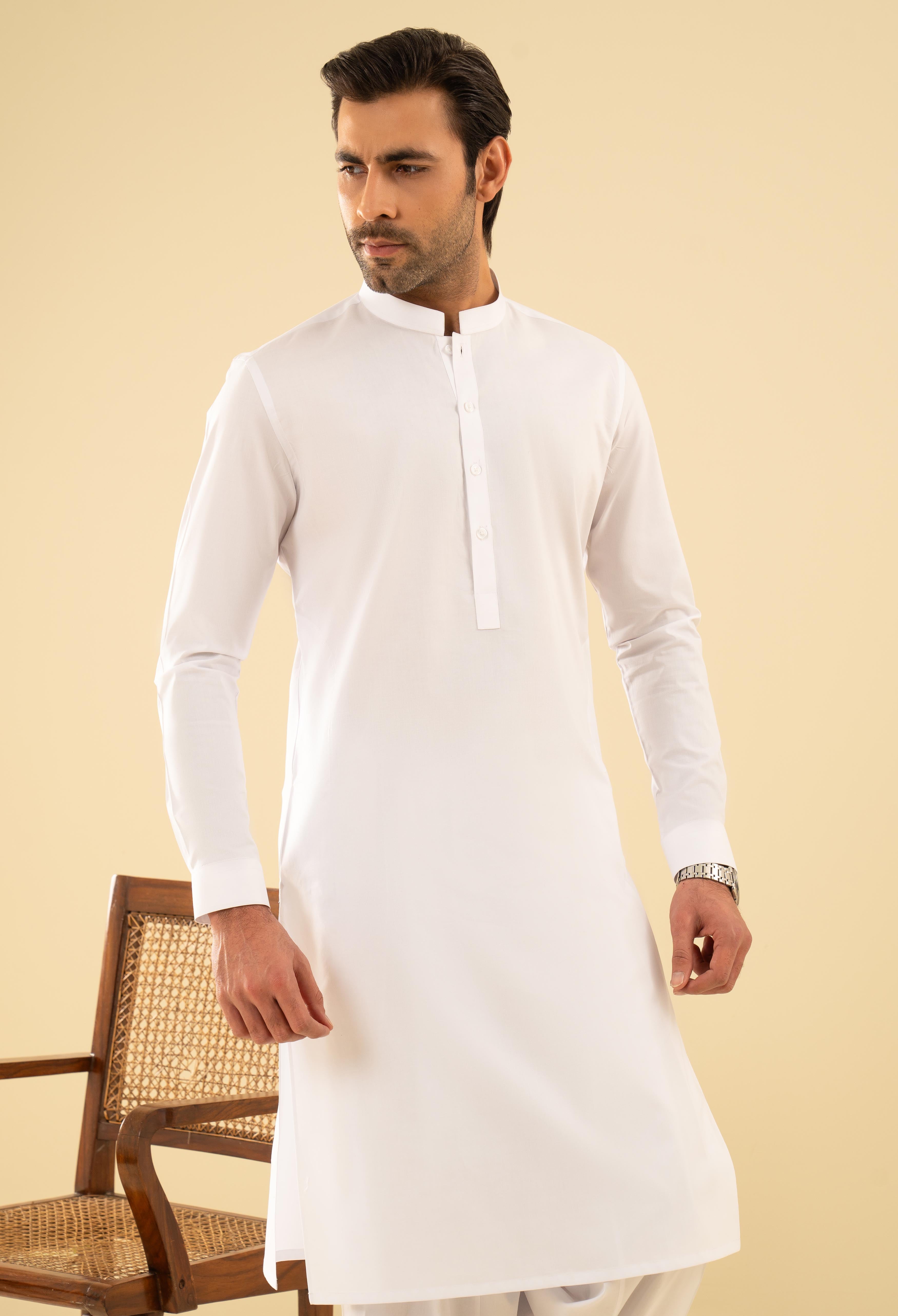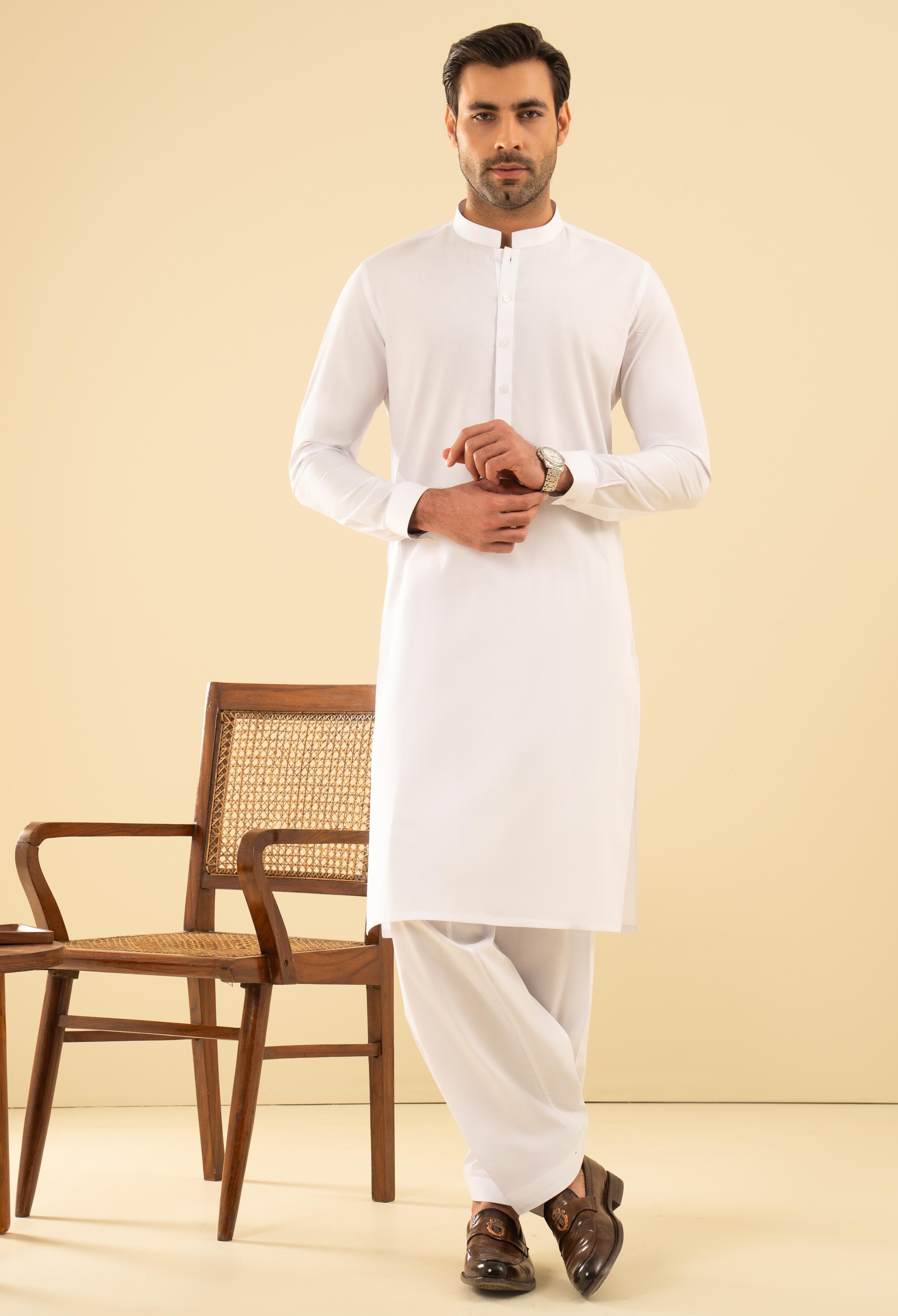 A men’s shalwar kameez in Sogo cotton fabric with a shirt collar design blends timeless tradition with a contemporary edge. The breathable cotton ensures comfort and versatility, while the relaxed fit offers effortless grace. The shirt collar adds a modern, structured touch, enhancing the outfit's adaptability for both formal settings. Clean stitching and minimalistic detailing complete the design, emphasizing sophistication and cultural authenticity.