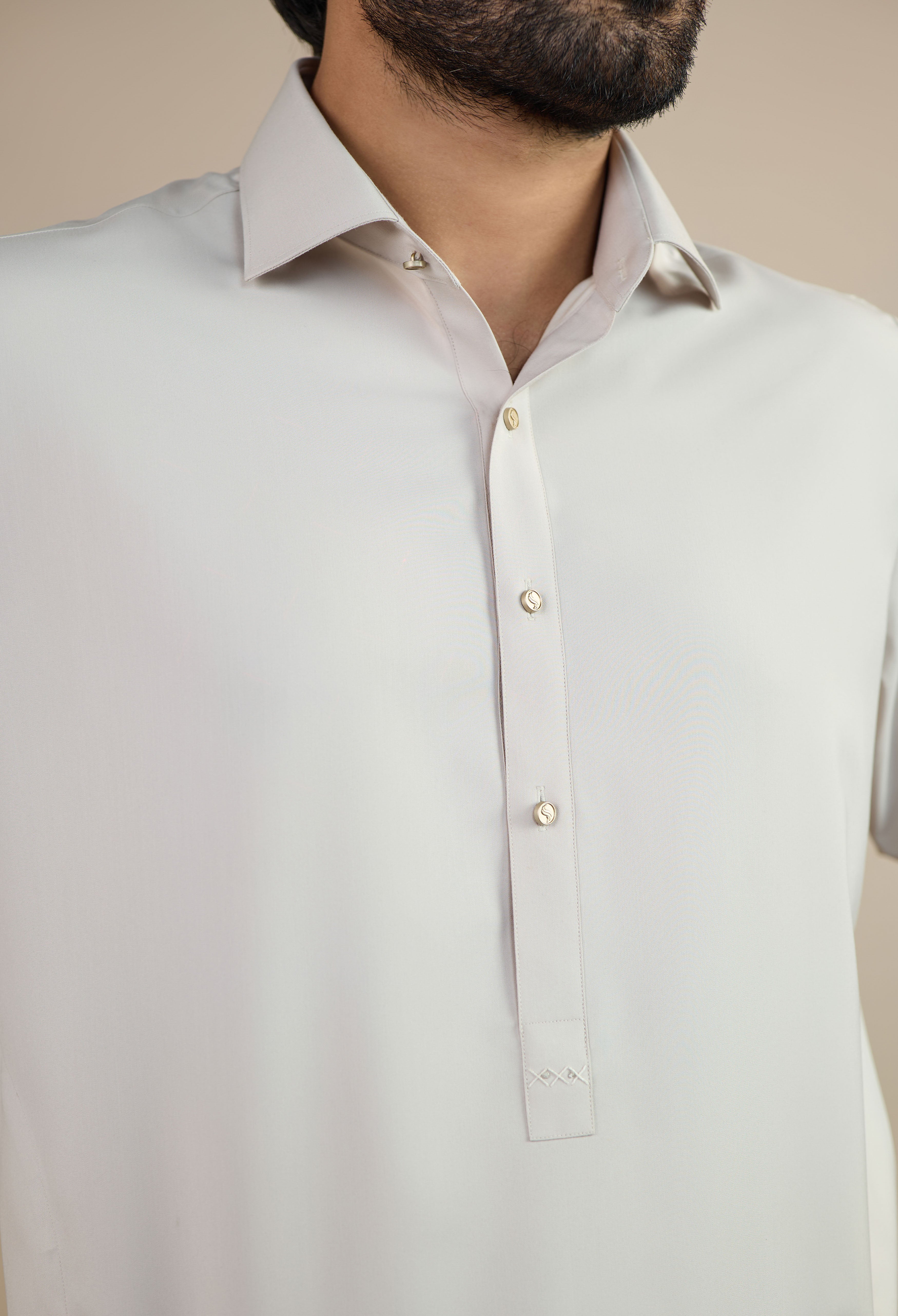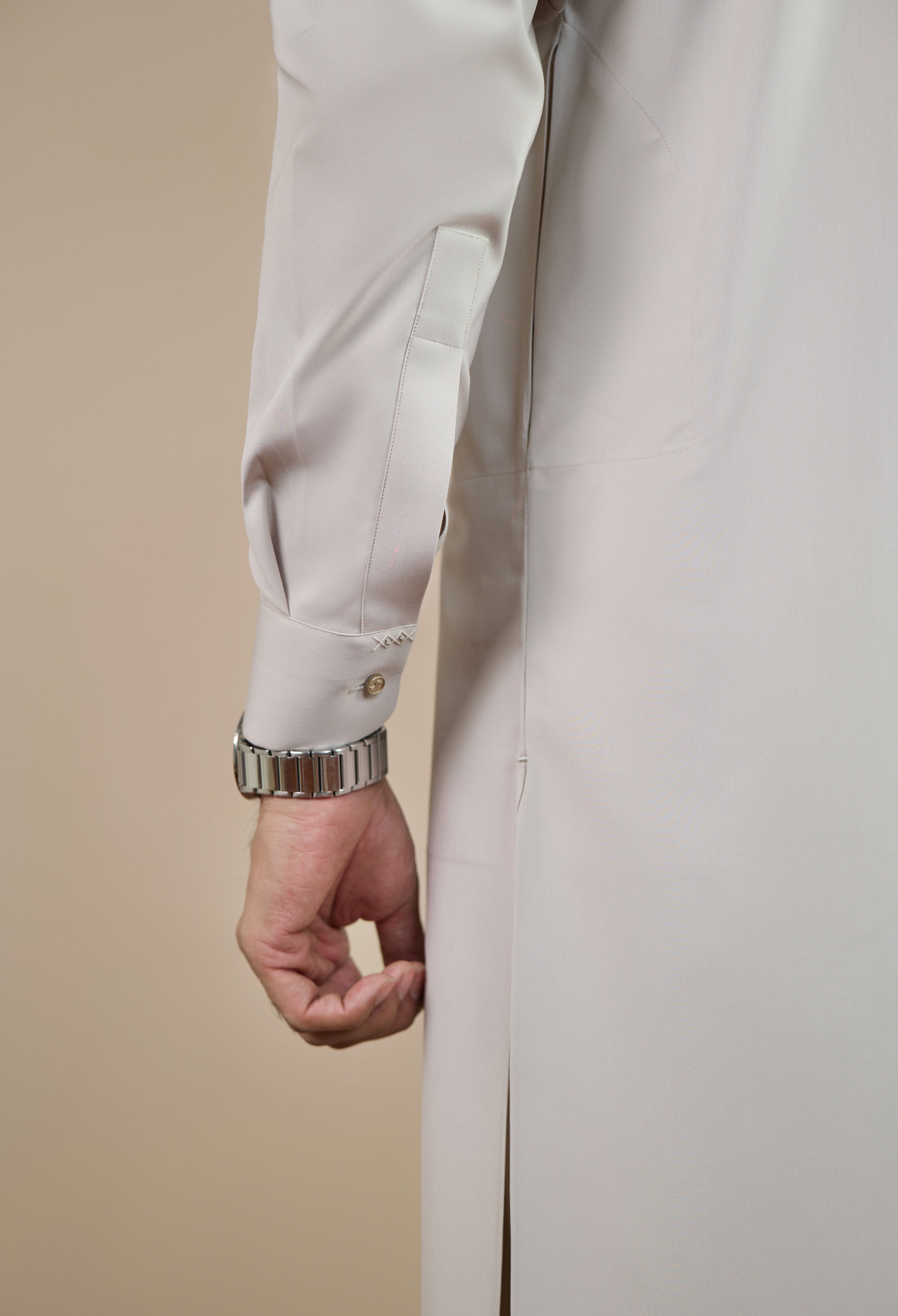 Anchor stitching in self-color thread reinforces key structural points, including the shoulder seams, front placket, back yoke, and cuffs, providing durability while preserving a seamless, tonal appearance.
