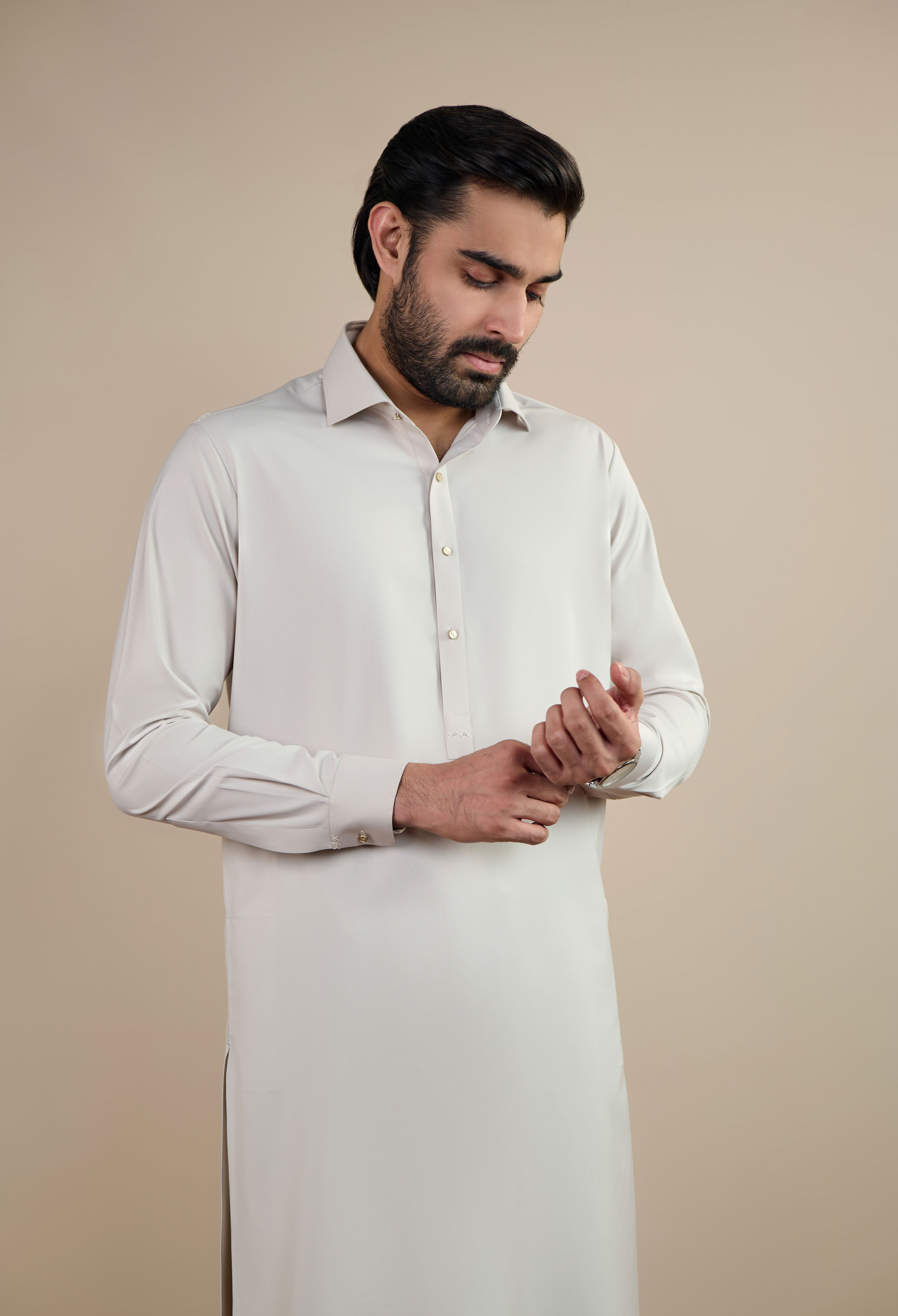 Designed for the winter season, this article combines clean lines, essential detailing, and precise construction. Featuring a round shirt collar, it offers a softer, contemporary alternative to the traditional pointed collar, lending a modern edge while maintaining timeless sophistication.