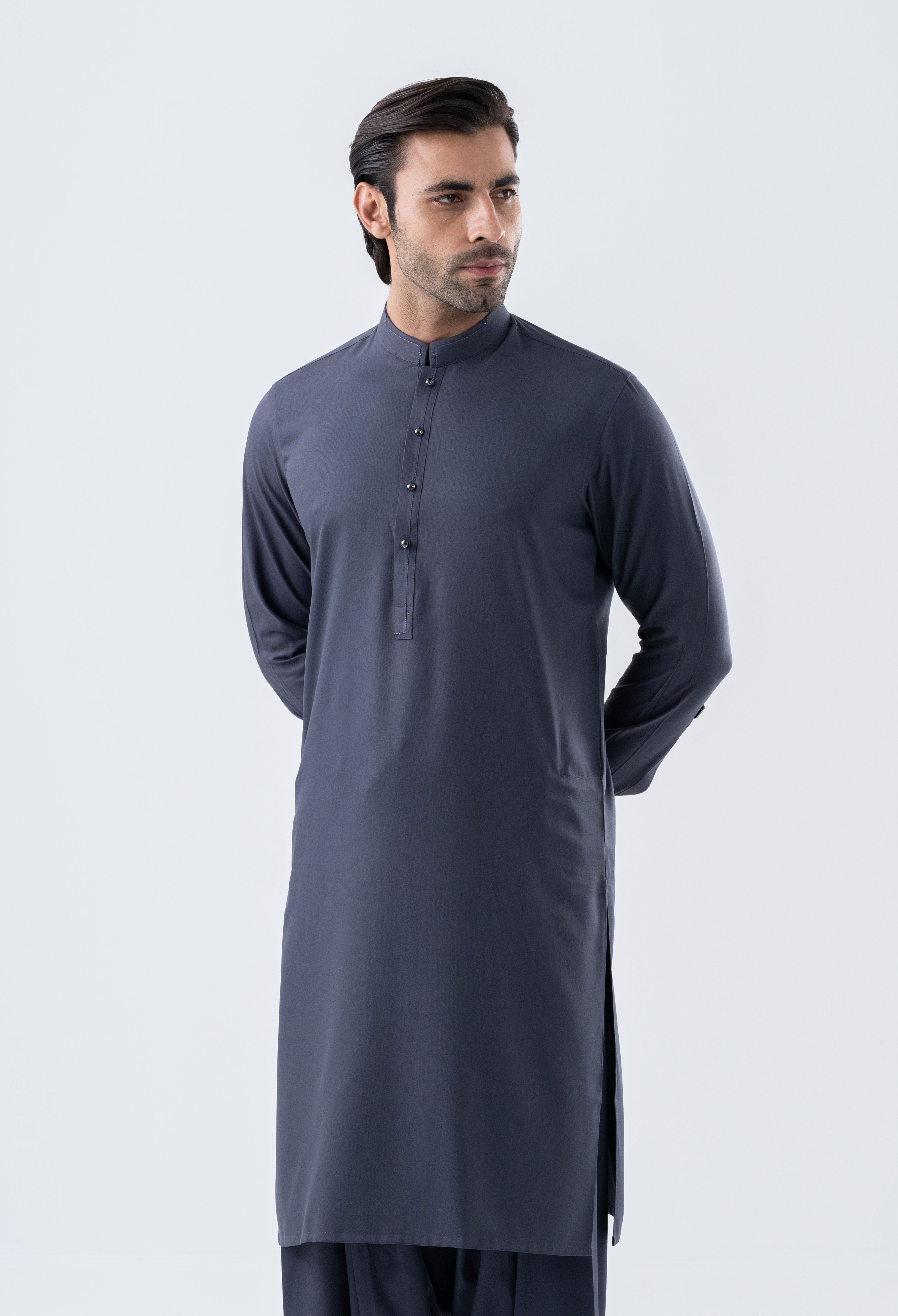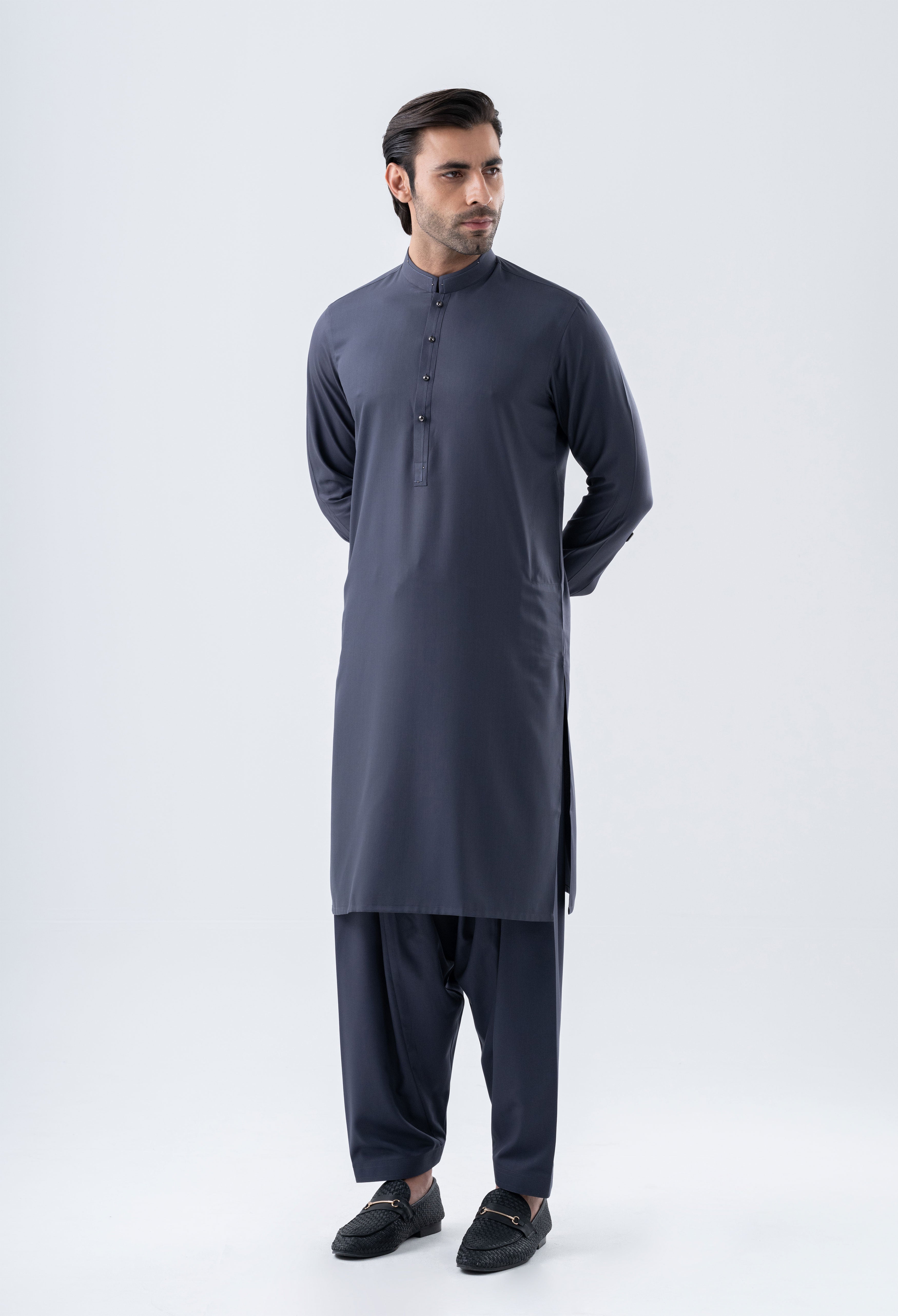Redefine elegance with our ASKARI slim-fit shalwar suit, crafted for the modern gentleman. Featuring a refined band collar, single cuffs, and premium metal fancy buttons, it’s a statement of timeless sophistication.
