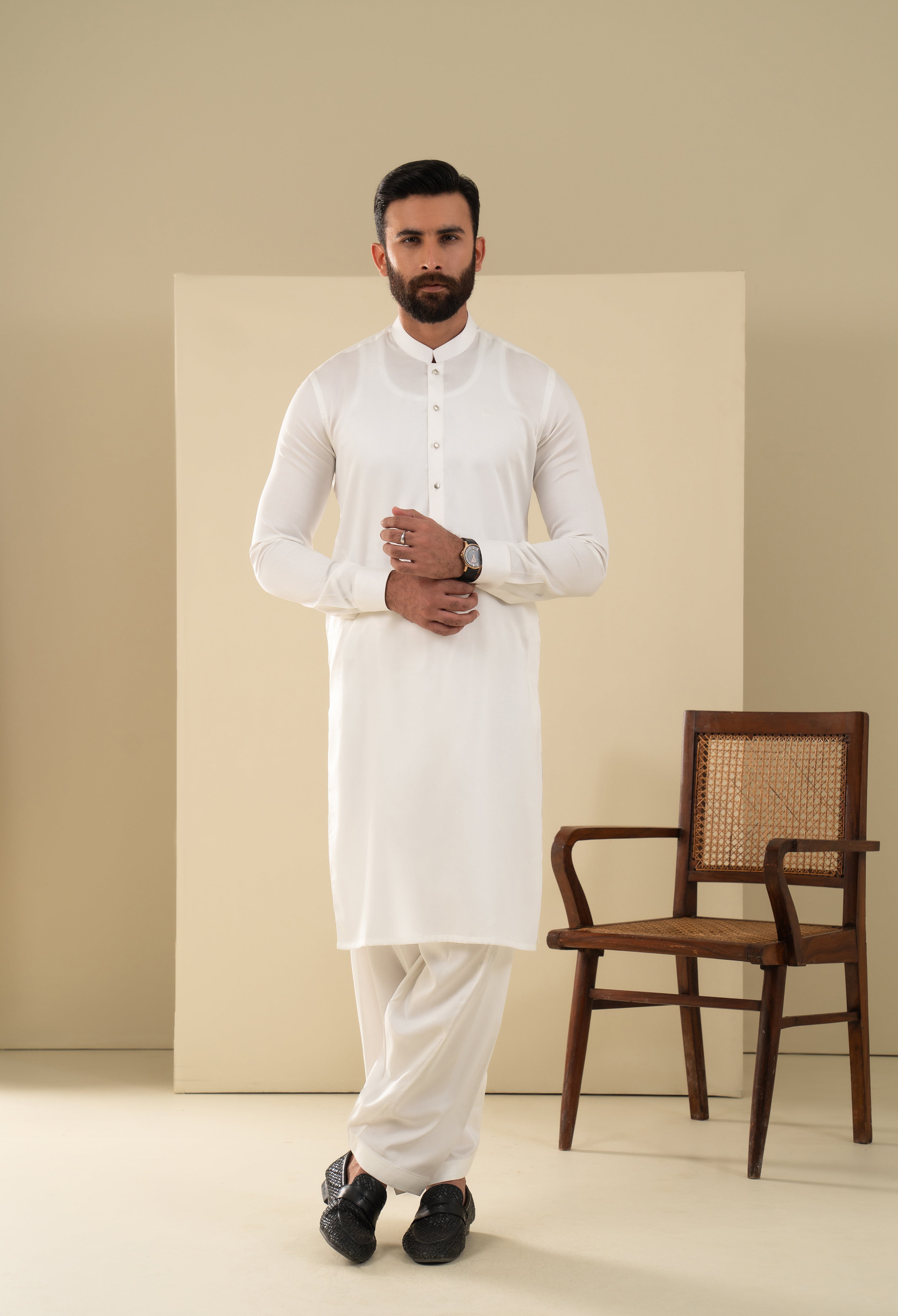 The Sawan Cotton is a stylish and comfortable choice for casual wear. This Shalwar Suit features a distinctive band collar, adding a modern touch to your look. The straight hem and straight cuffs provide a clean, tailored appearance, while two side pockets offer practical functionality. Perfect for any relaxed occasion, the Sawan Cotton ensures effortless style and comfort.