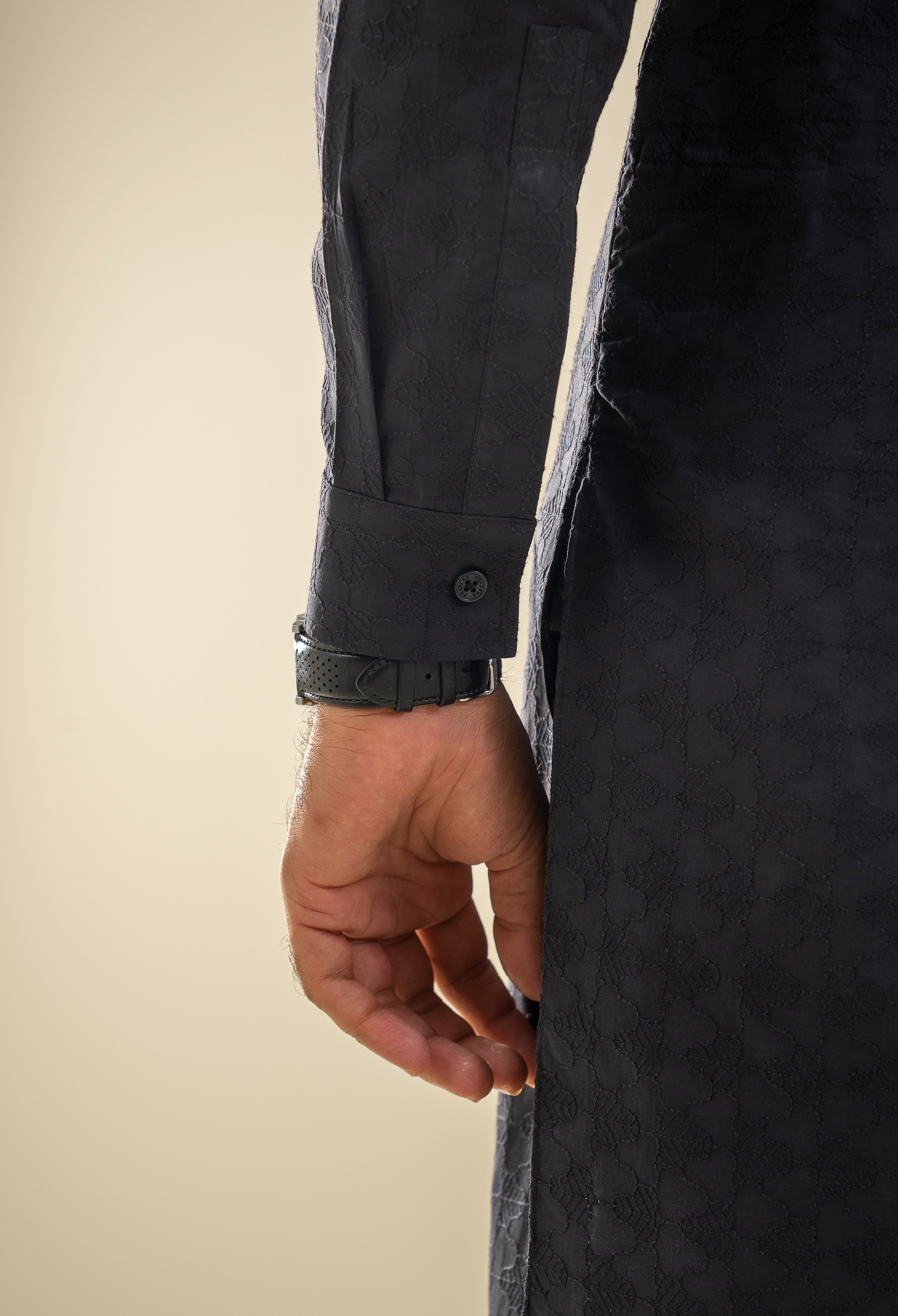 This fabric exemplifies a meticulously structured embroidery technique, wherein raised stitching delineates geometric patterns, potentially drawing inspiration from architectural motifs. The presence of worn and frayed edges harmonizes raw texture with refined craftsmanship, contributing to a distinctive vintage appeal. The fabric’s richness and bold aesthetic, rendering it highly suitable for heritage-inspired or artisanal textile applications.