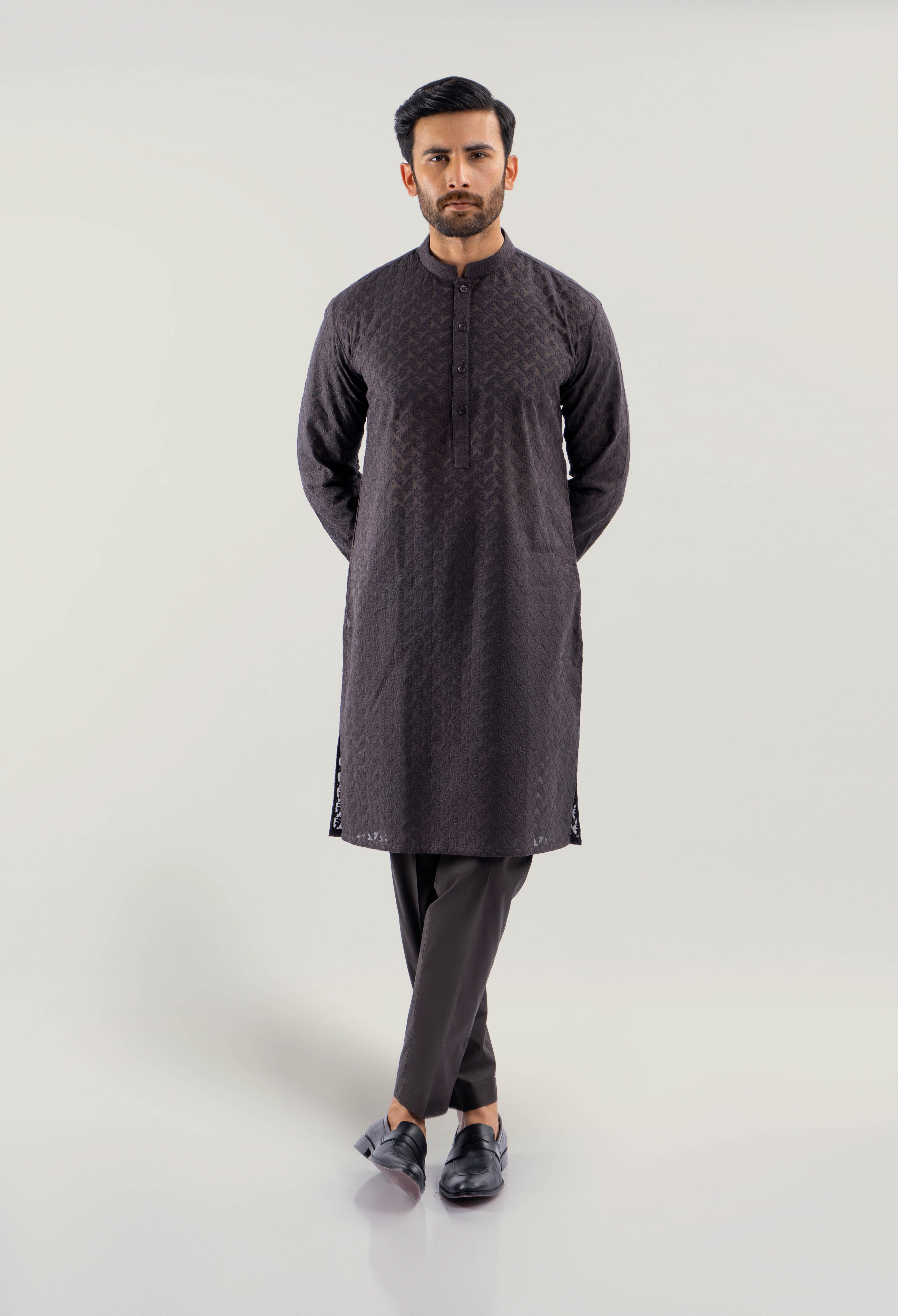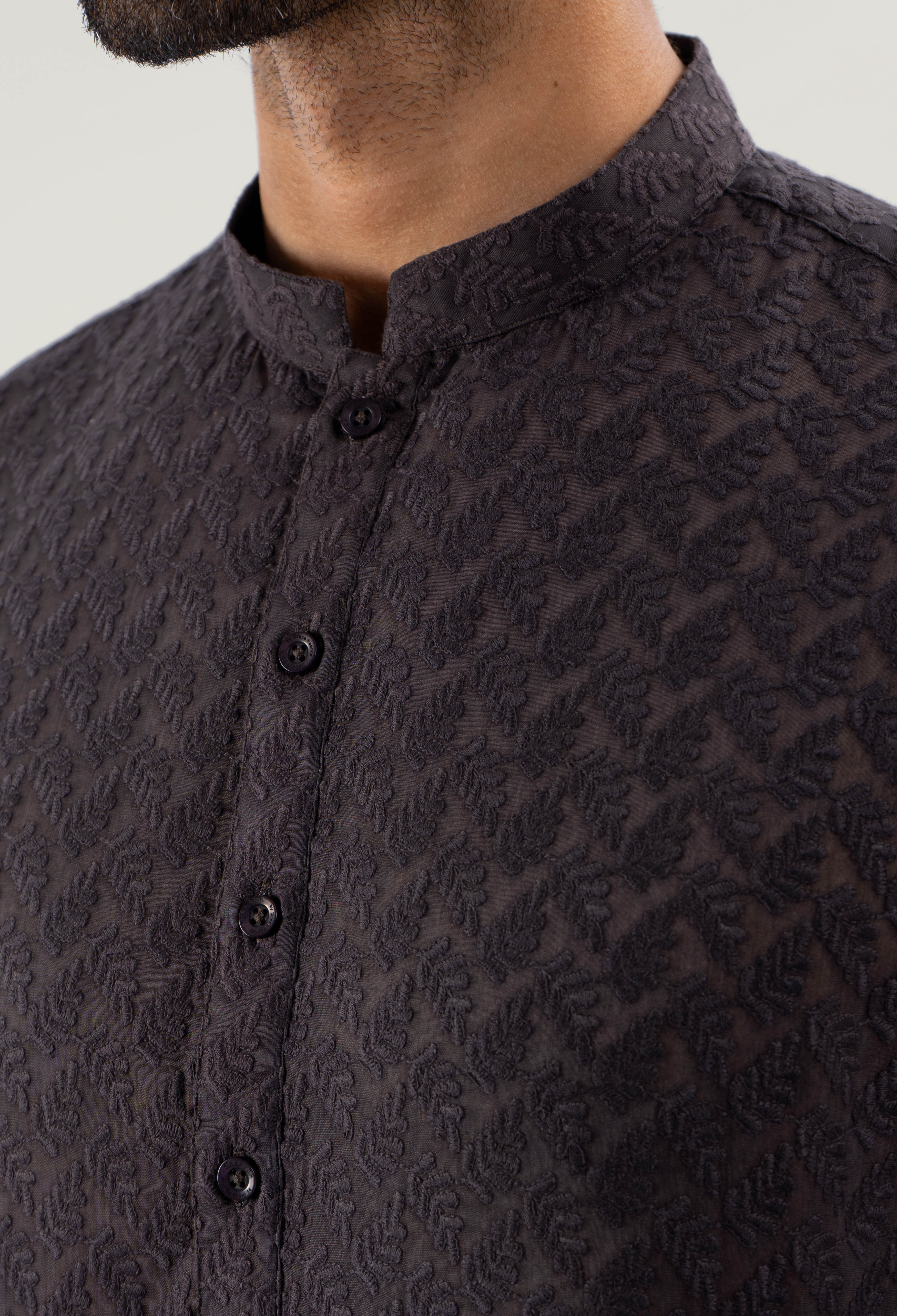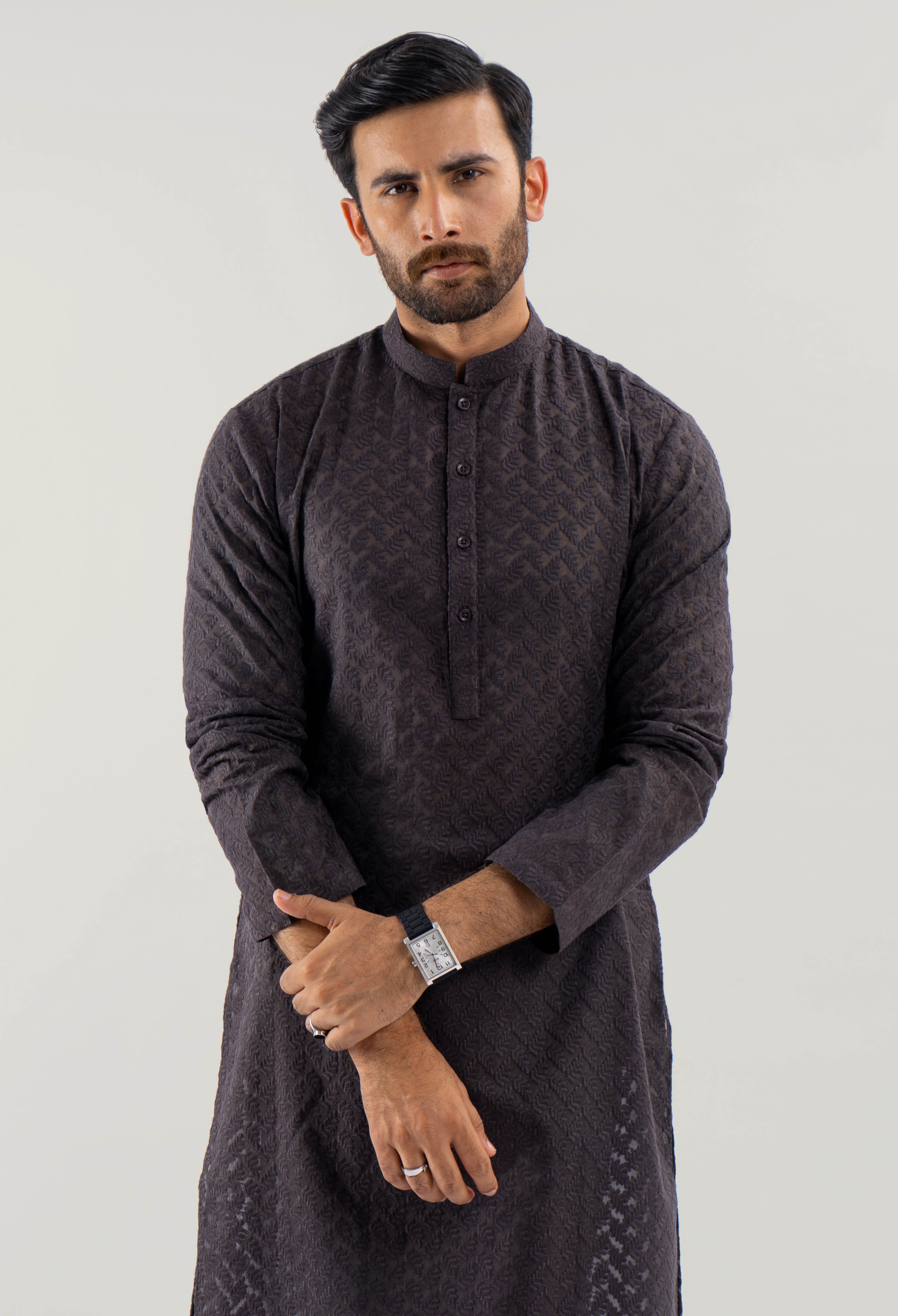 Wood Brown - Beeline Loves Schiffli Kurta Pajama