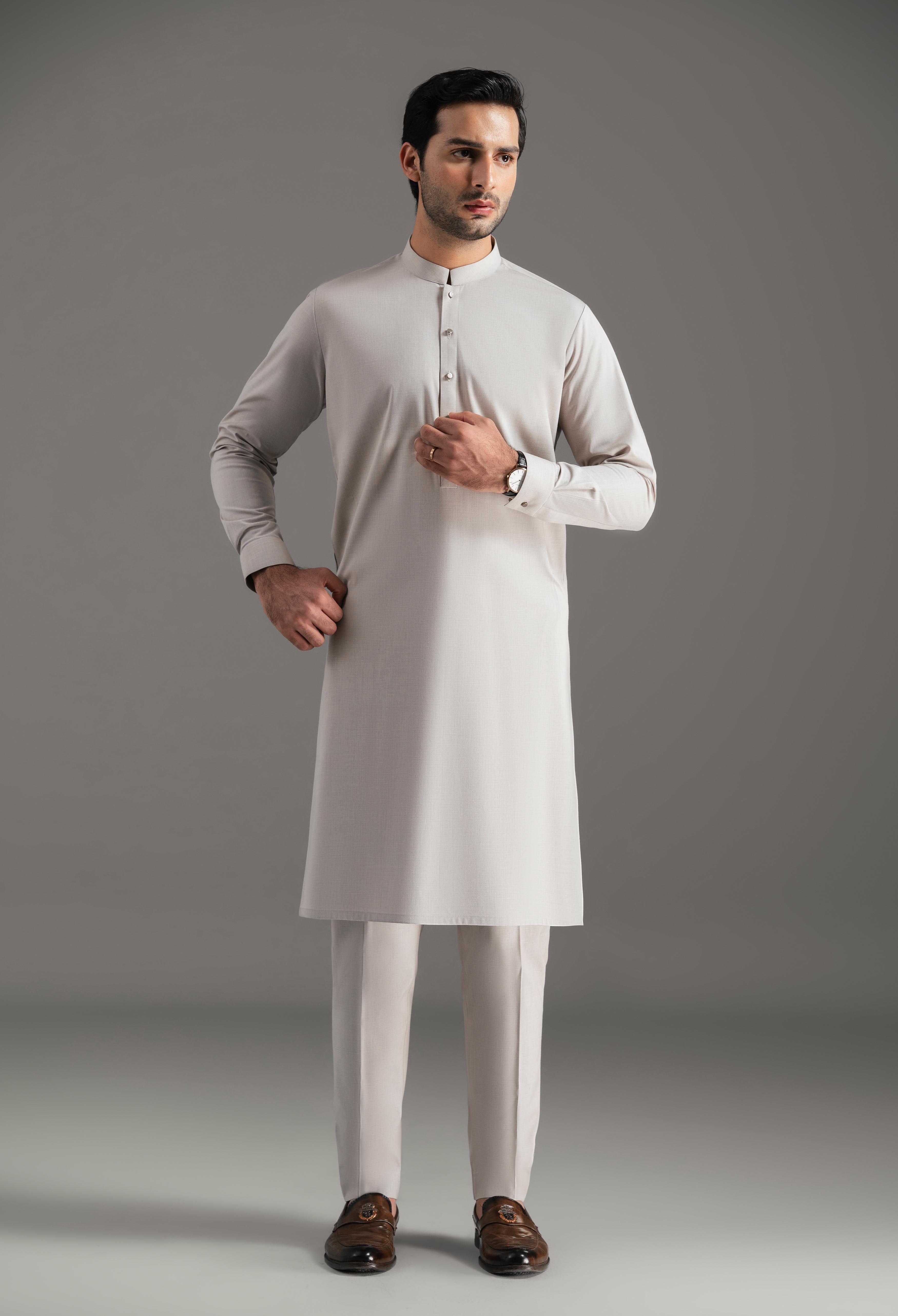 Dusty Beige Blended Kurta Pajama