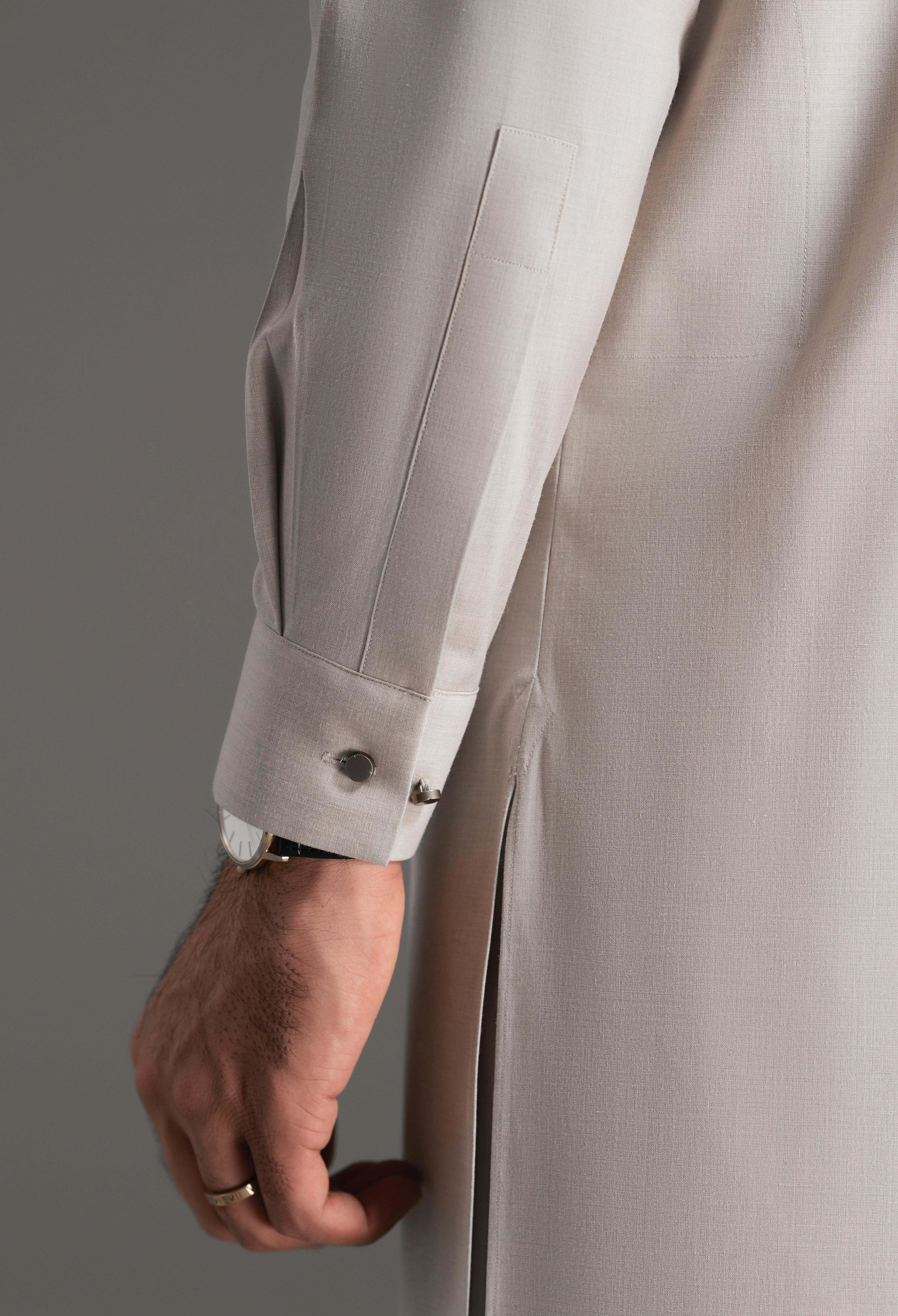 Designed for the winter season, this article captures light elegance through its minimal and refined design aesthetic. It features a basic straight band collar, straight cuffs measuring 2.25 inches, a hidden stitch back, and a straight hem, forming a clean and balanced silhouette that feels both contemporary and timeless. Two neatly integrated side pockets add practical functionality while preserving the garment’s clean, continuous lines.