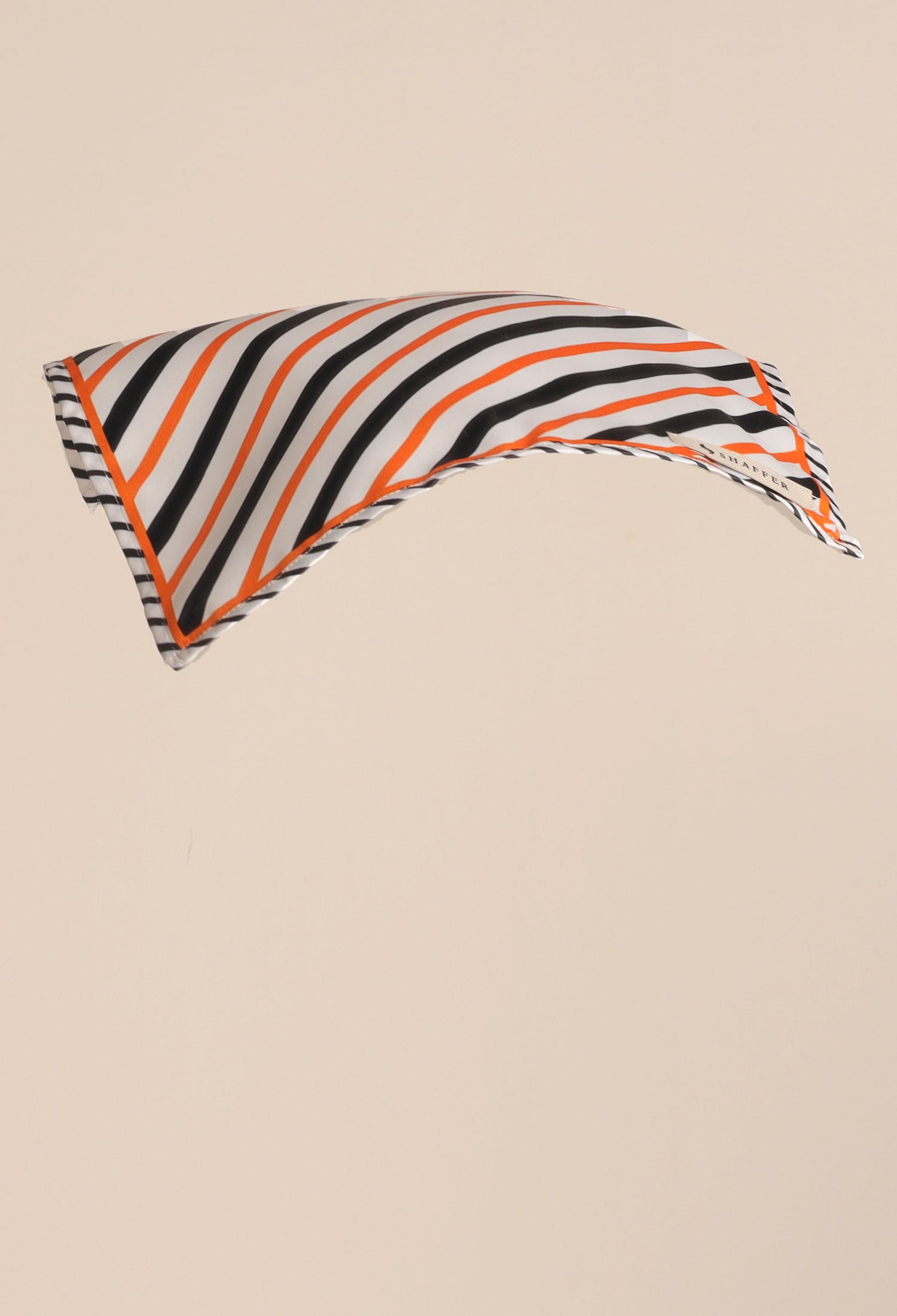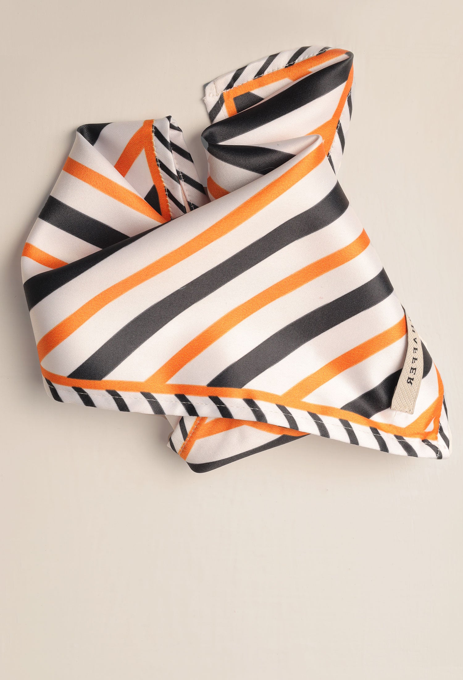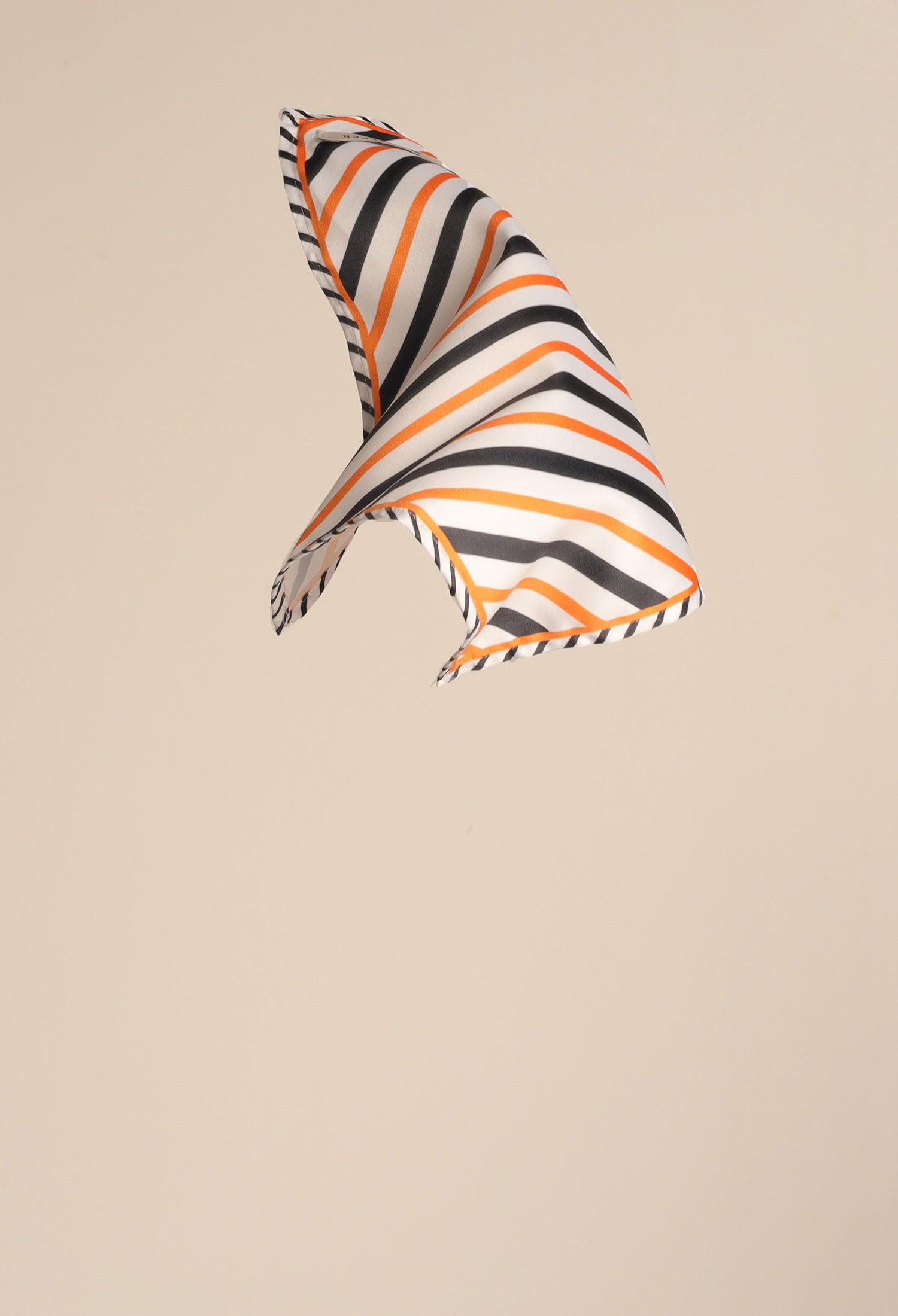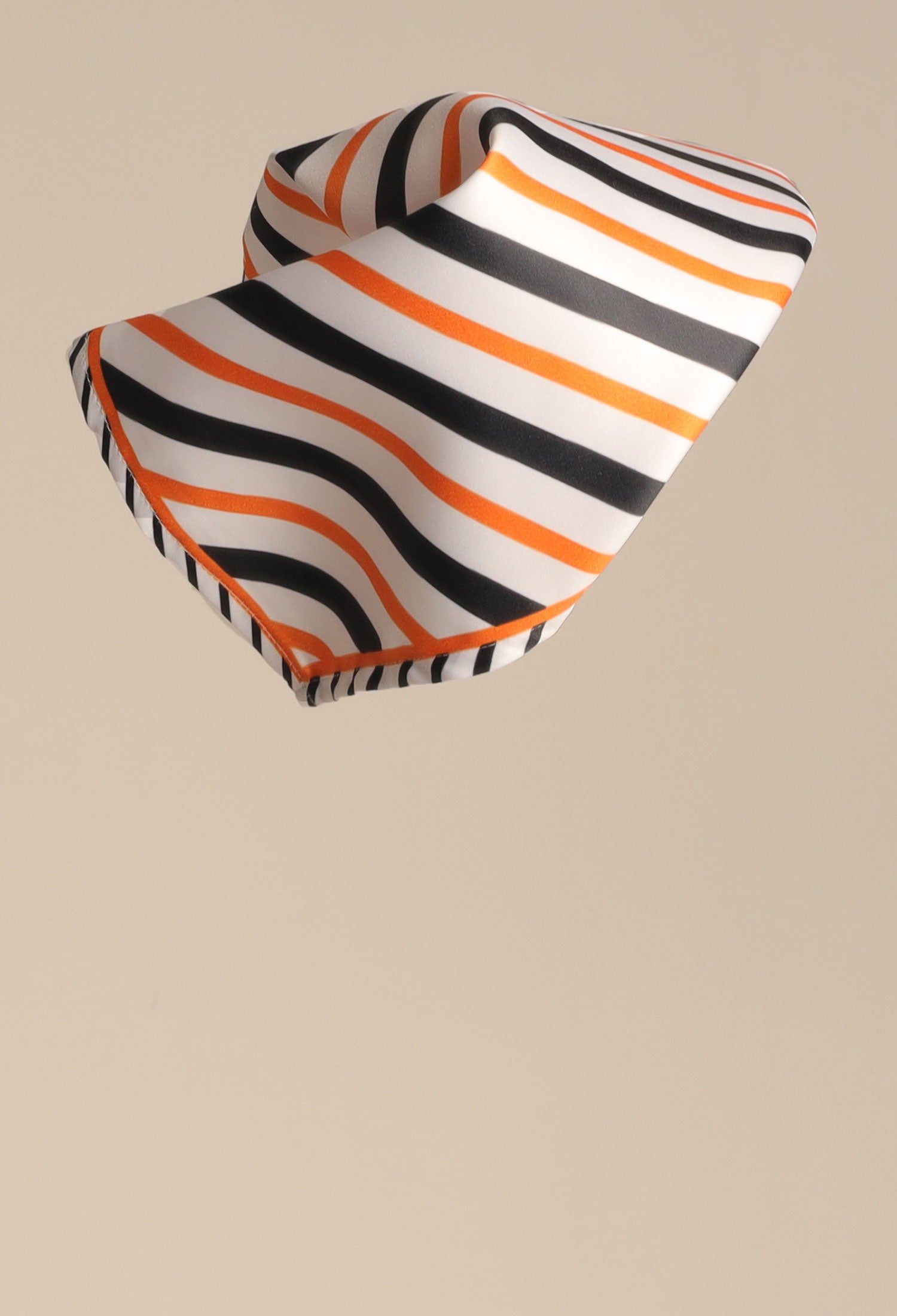 This DIAGONAL STRIPE POCKET SQUARE measures 10" by 10", crafted out of Satin Silk fabric and featuring a digital print of two contrasting colors in diagonal stripes.