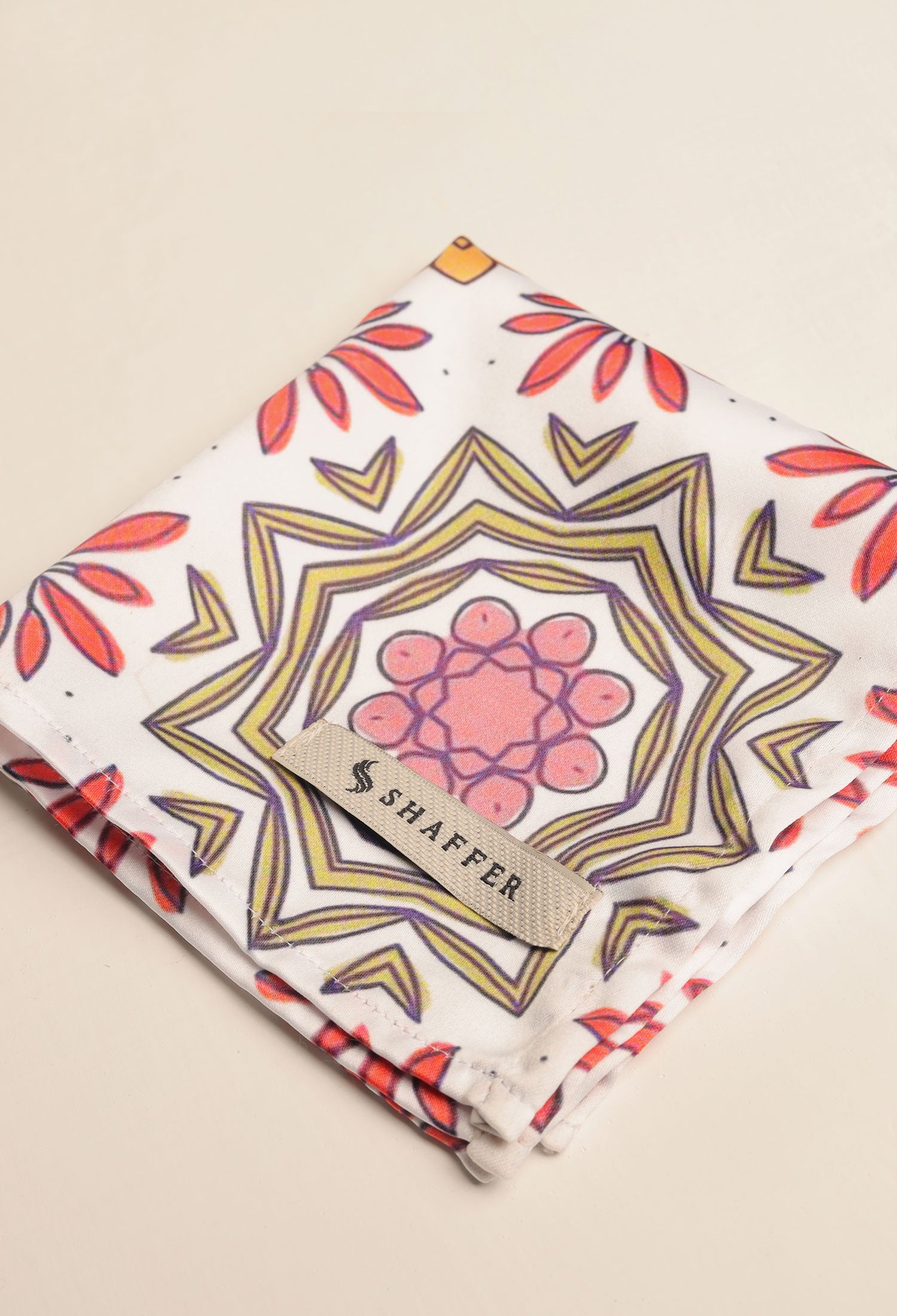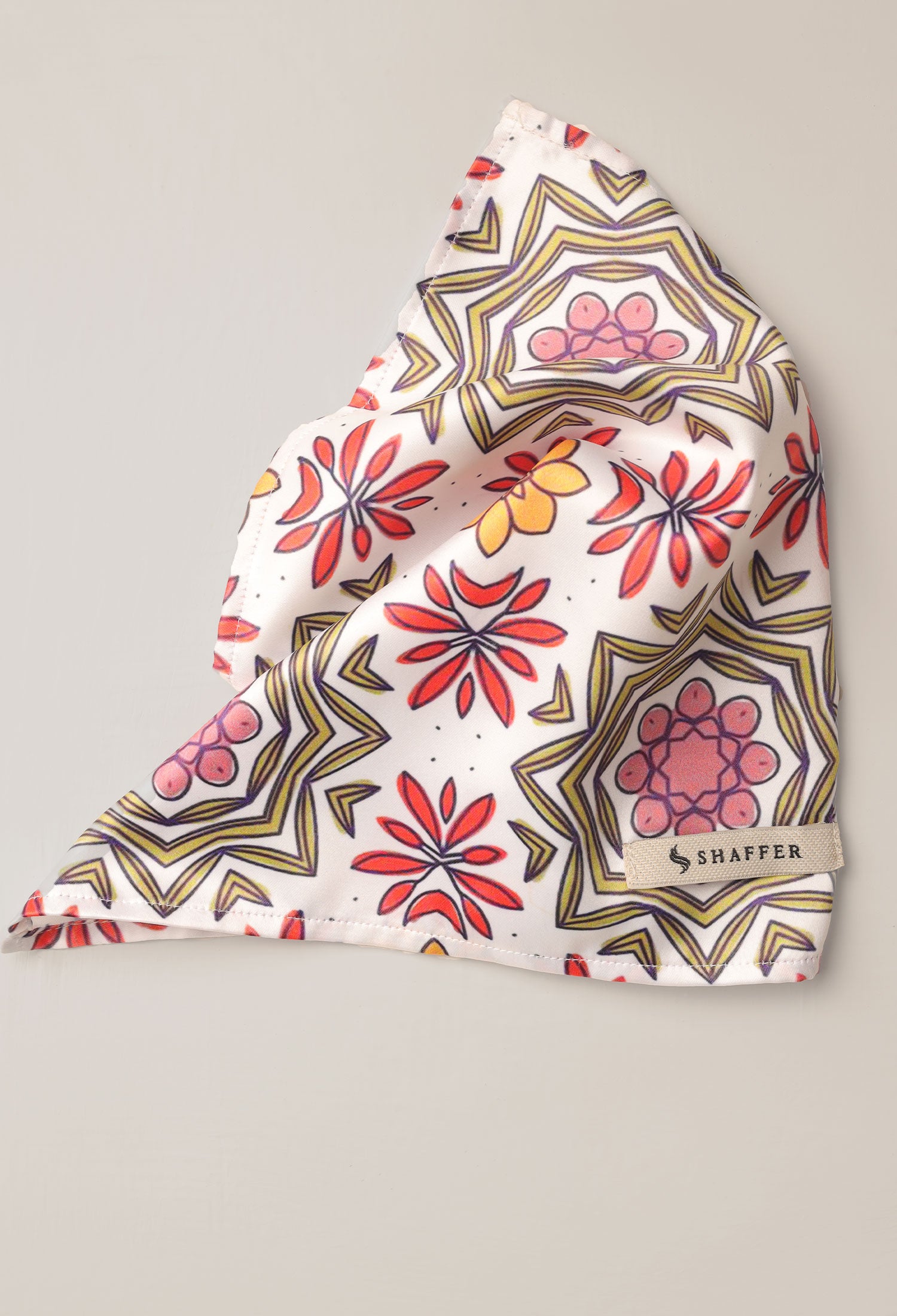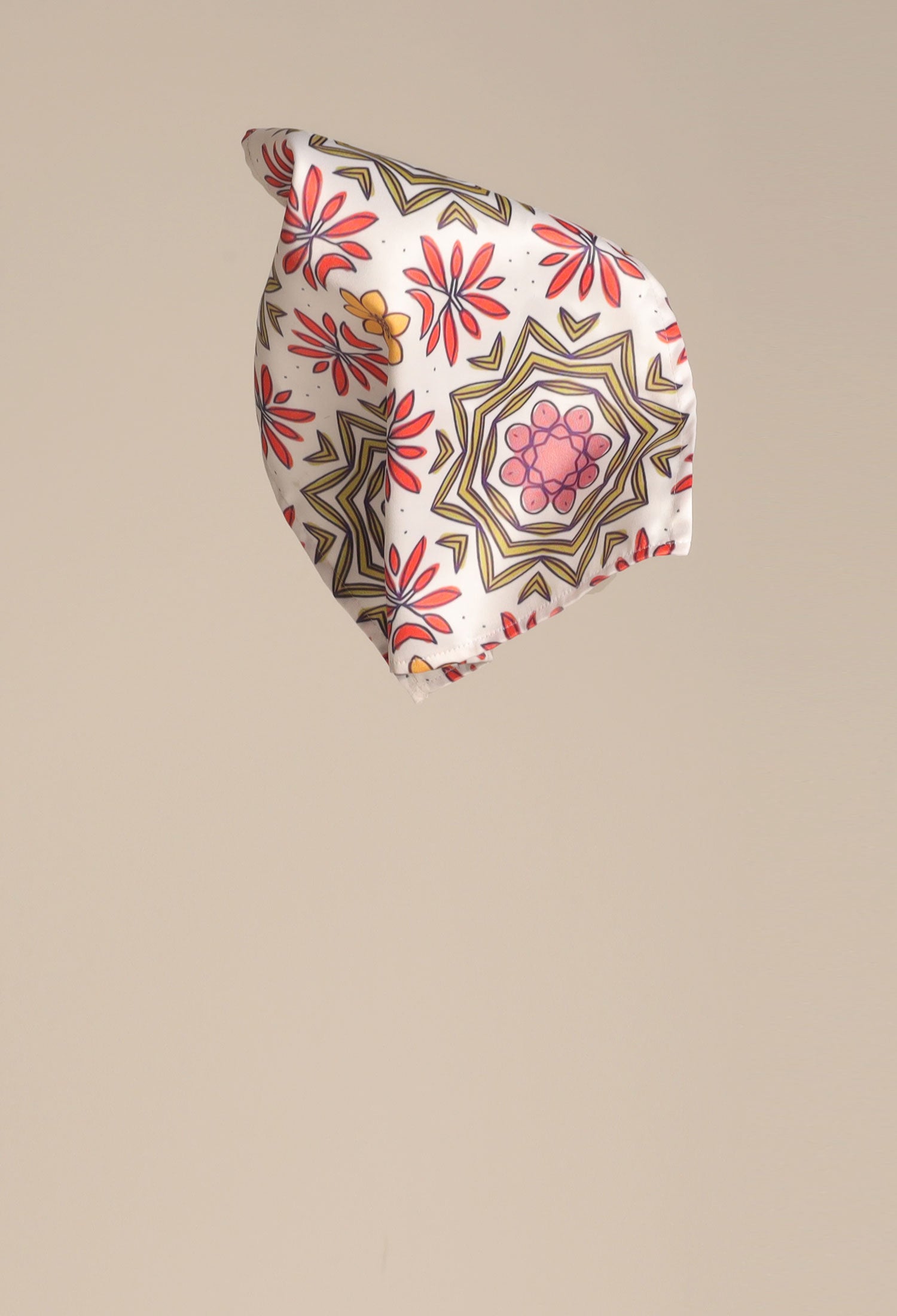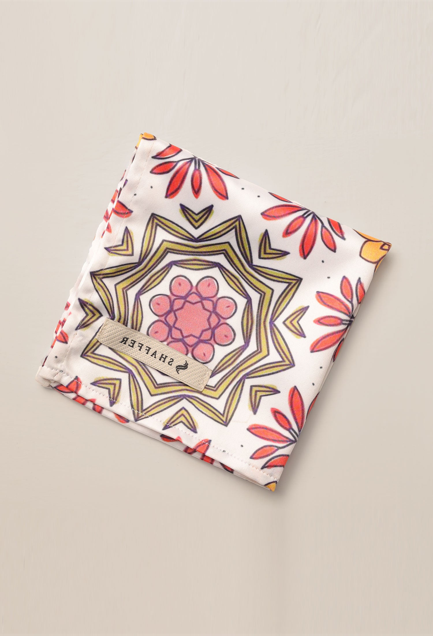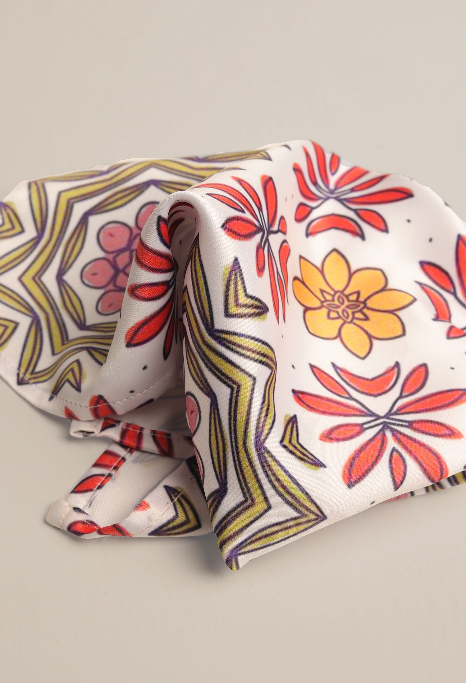 his OPTIMISM POCKET SQUARE is crafted from satin silk fabric and features an upbeat floral motif in refreshing spring hues. Each piece measures 10" by 10".