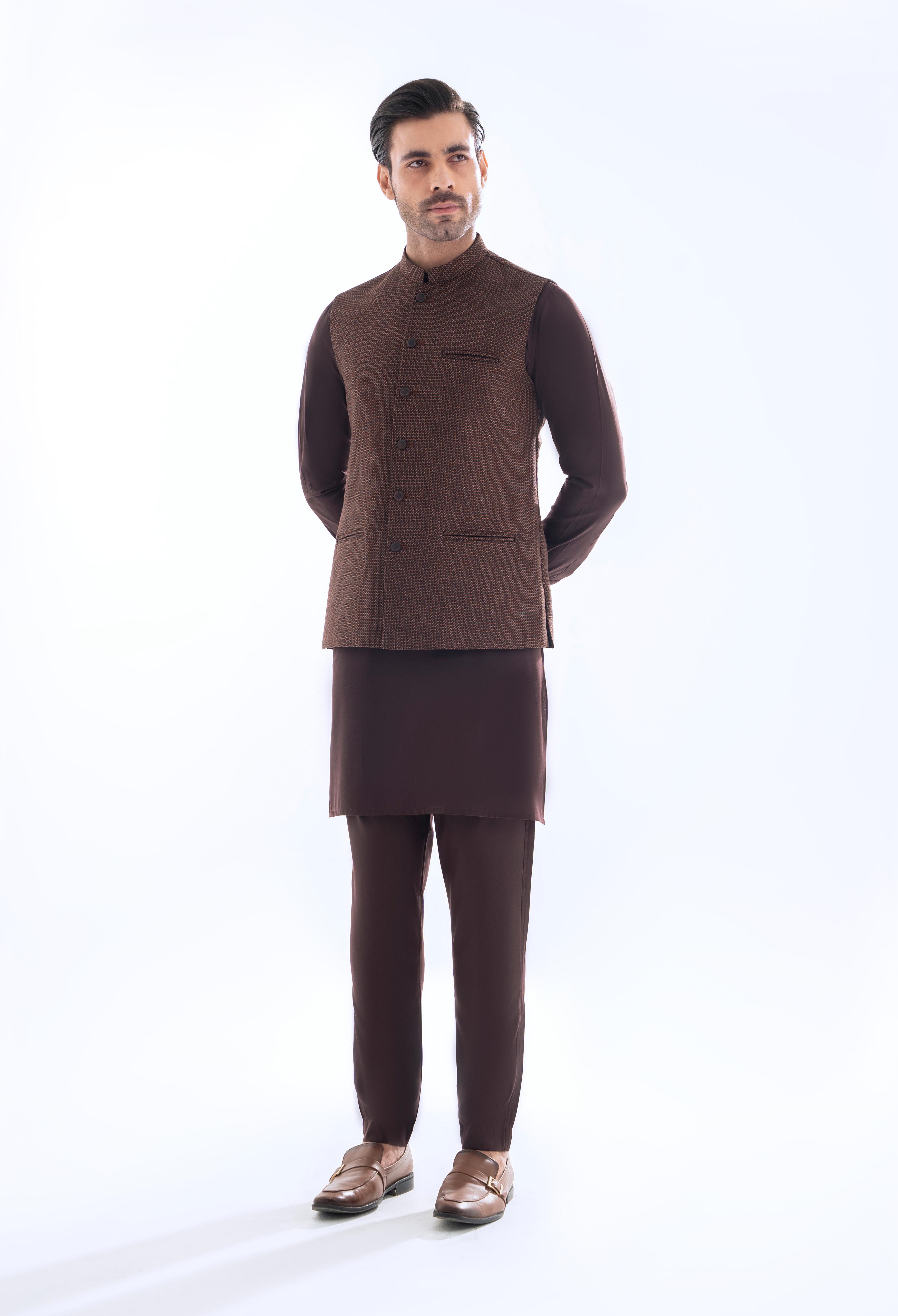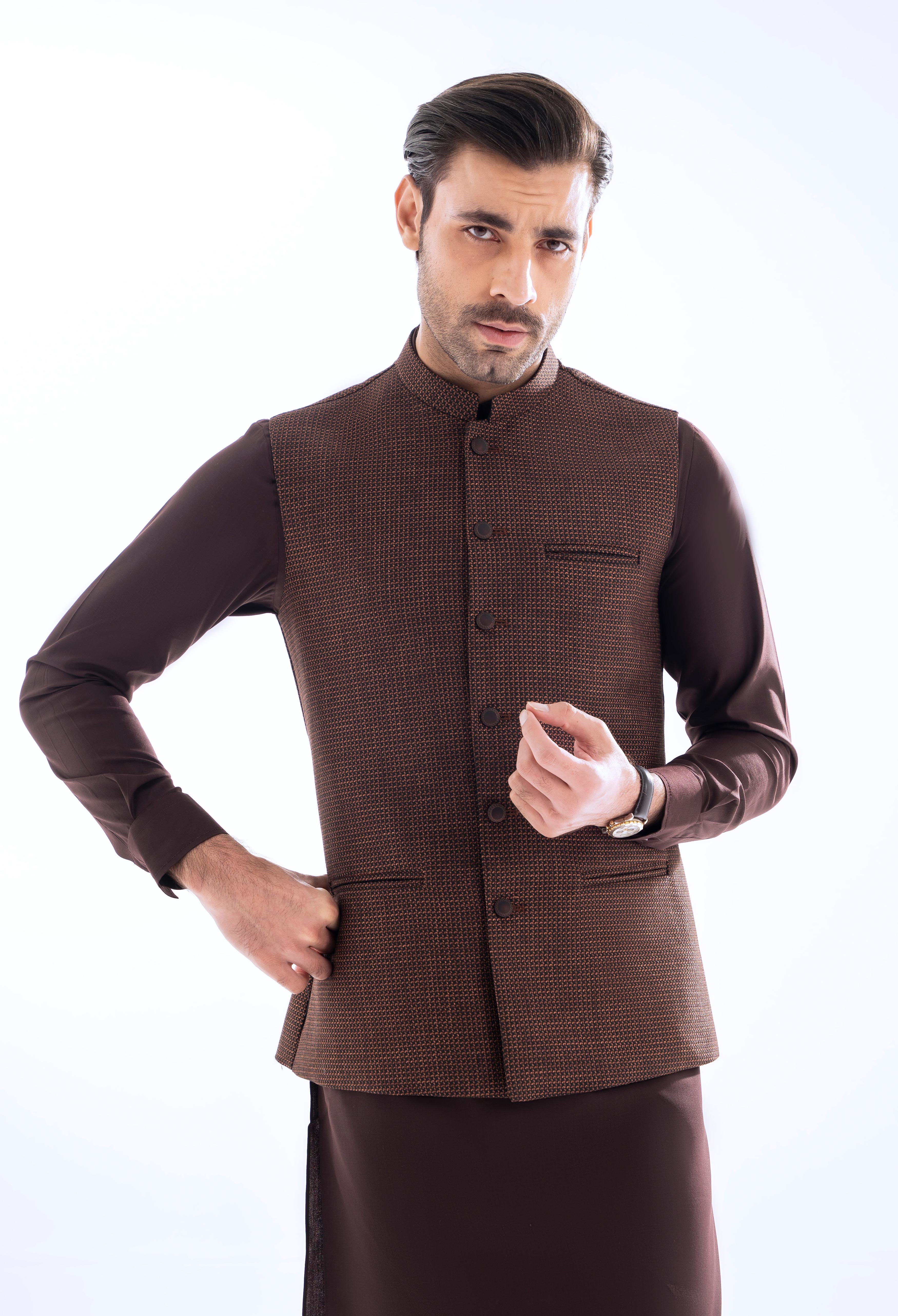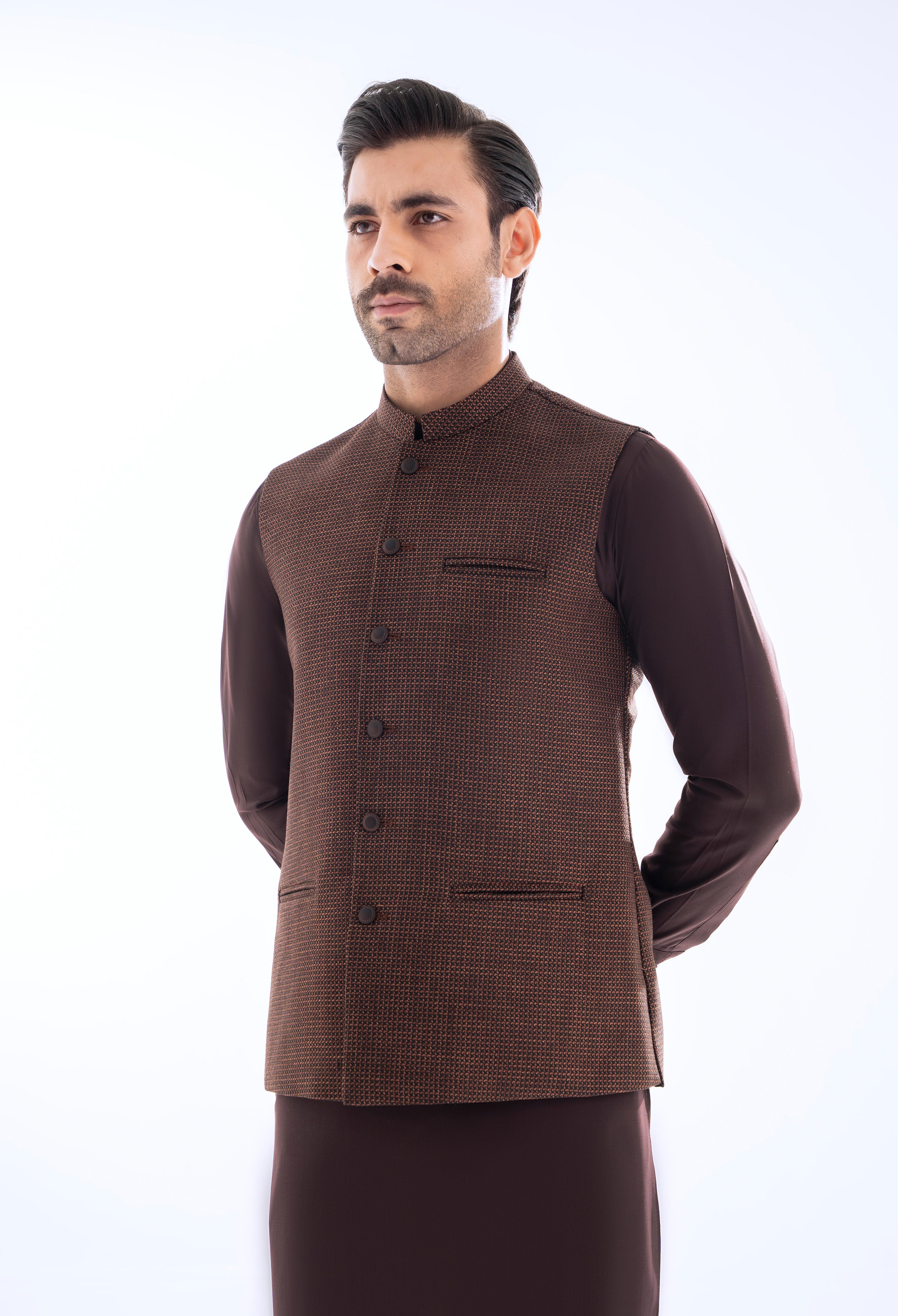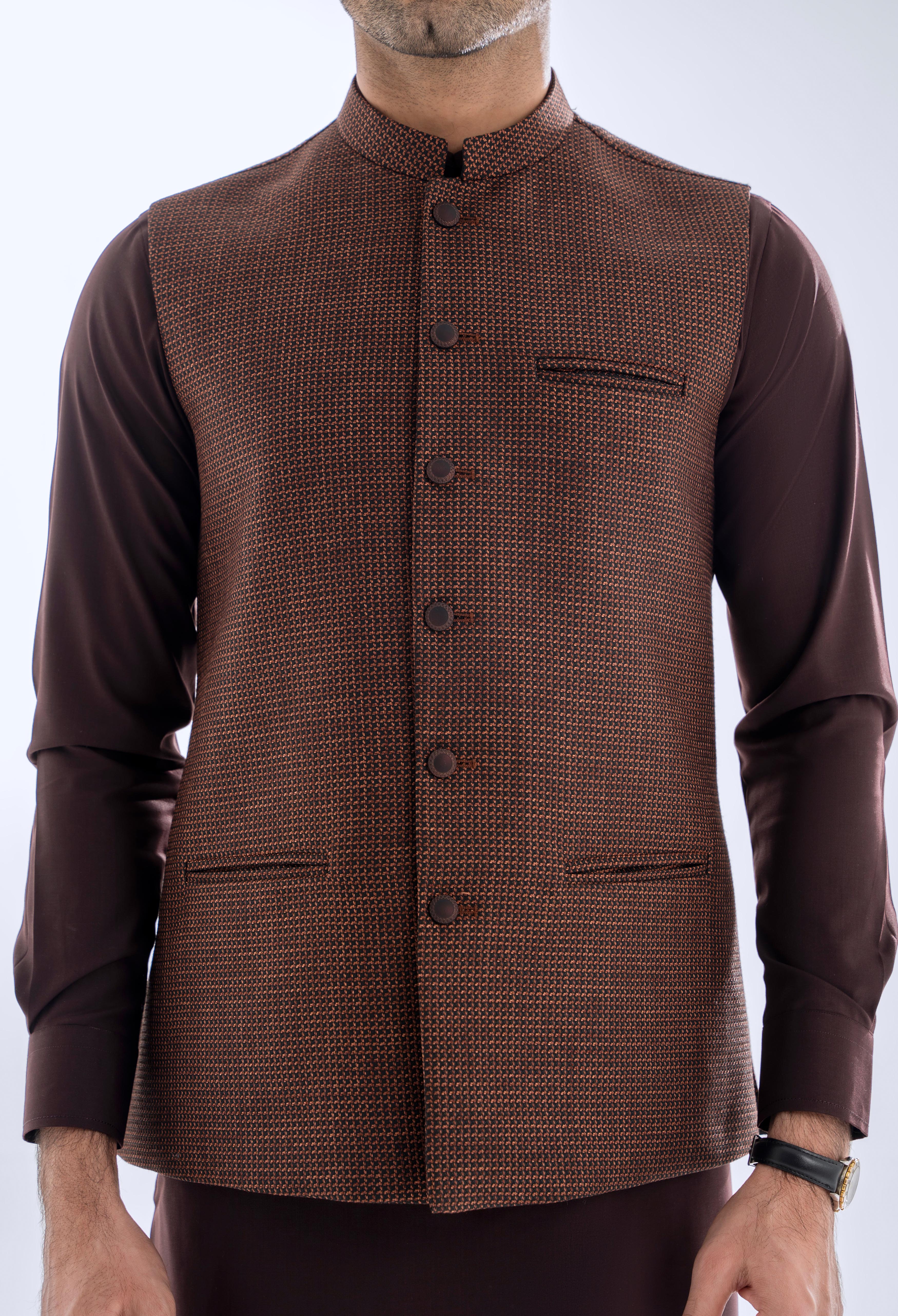 Introducing our stylish waistcoat, designed for the modern gentleman. Featuring three functional bone pockets on the front, it combines practicality with elegance. The eye-catching printed lining and matching pocket square add a unique flair, while the band collar offers a contemporary silhouette. Complete with striking metallic buttons, this waistcoat is the perfect blend of sophistication and style for any occasion.