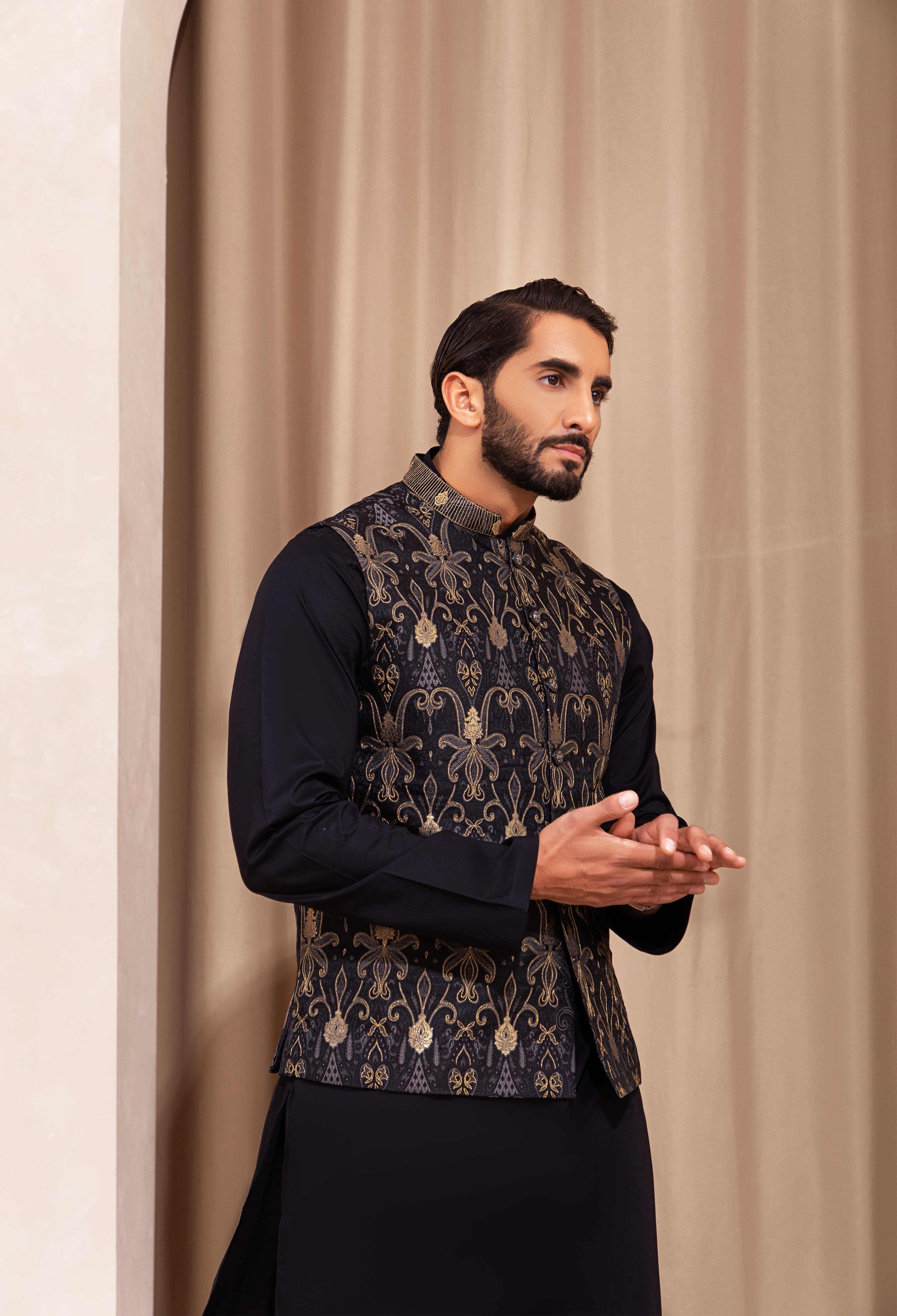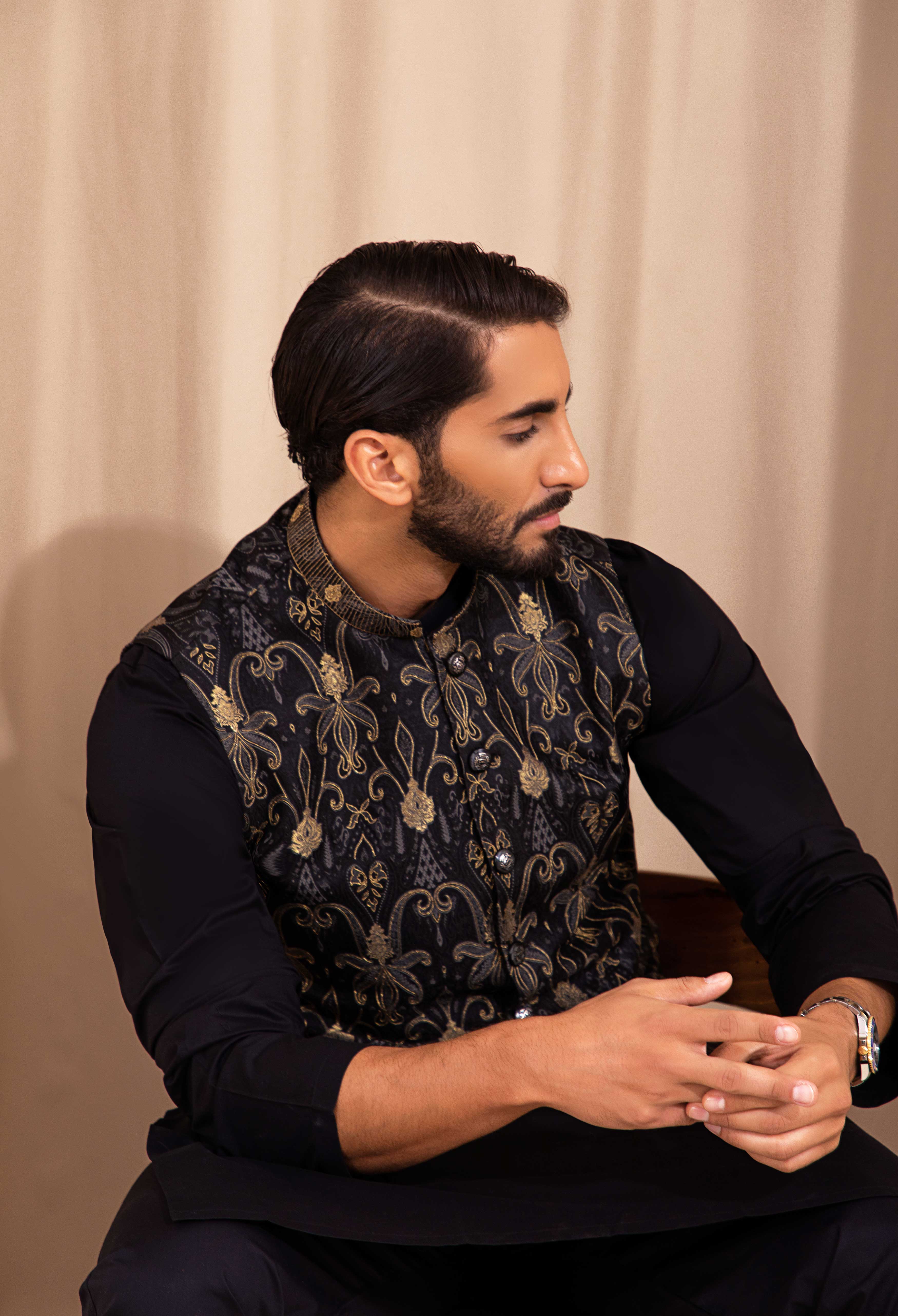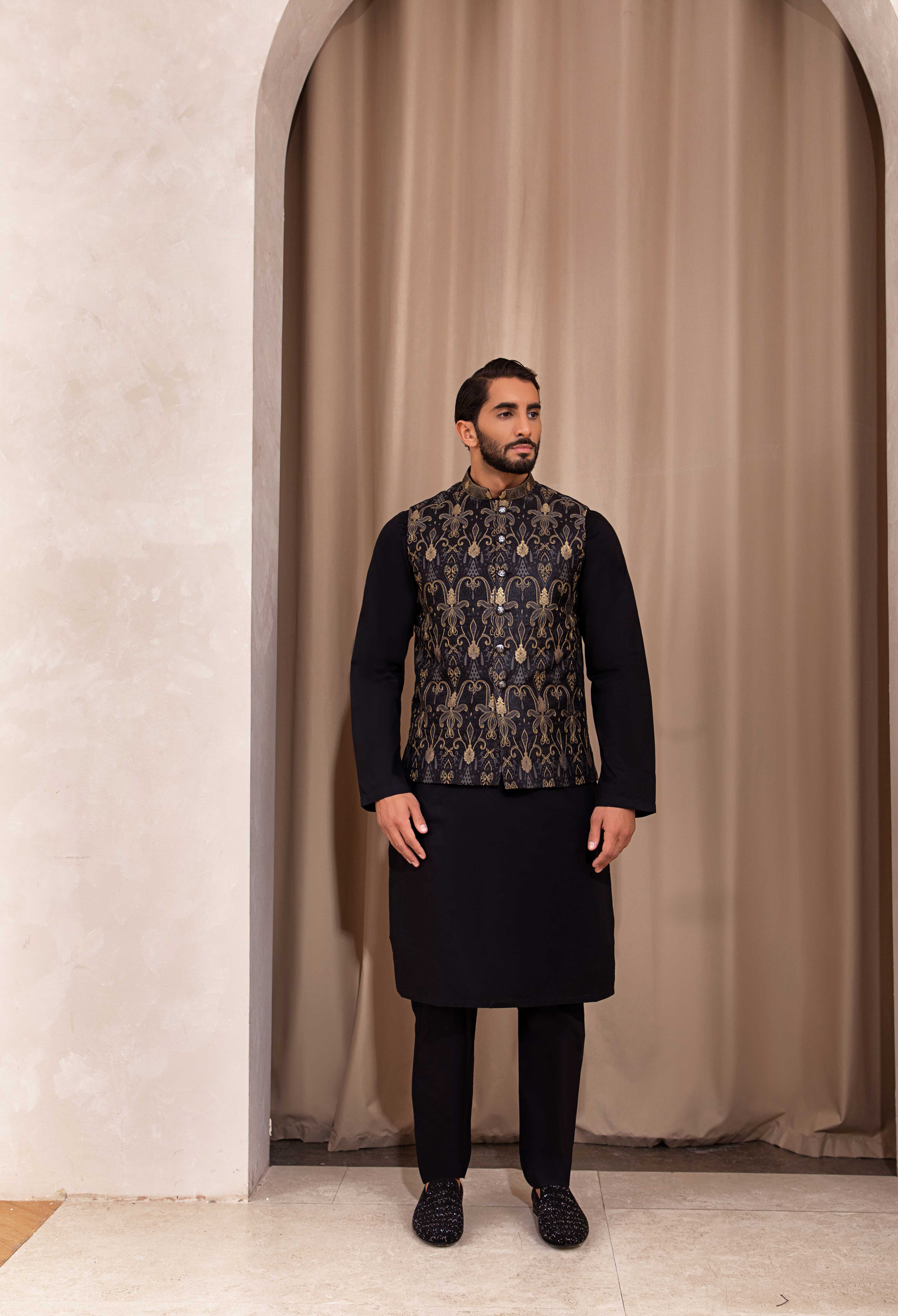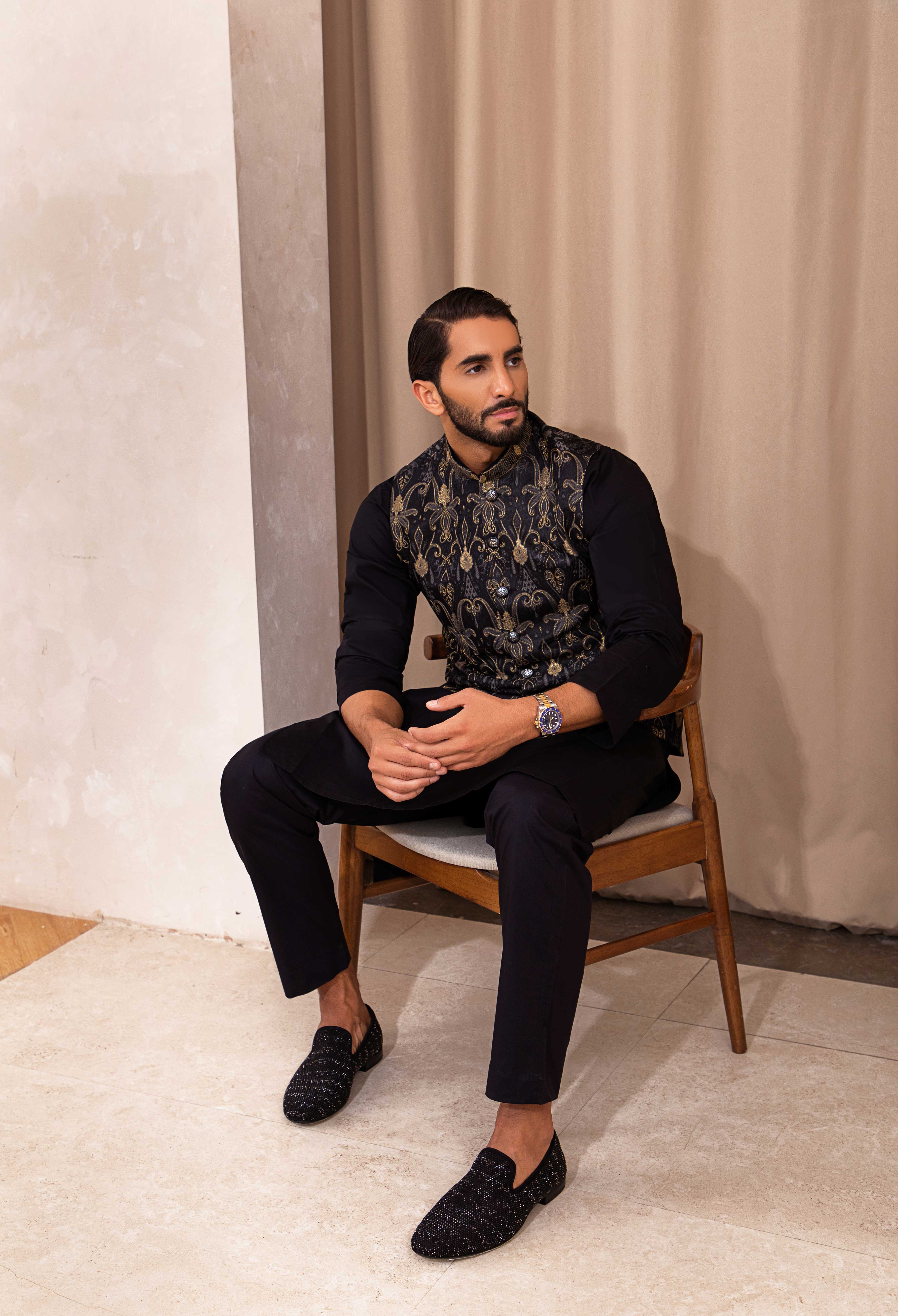 Description: The exquisite Siavash prince coat is meticulously crafted with the highest quality Jamawar fabric and adorned with refined Ari embroidery.