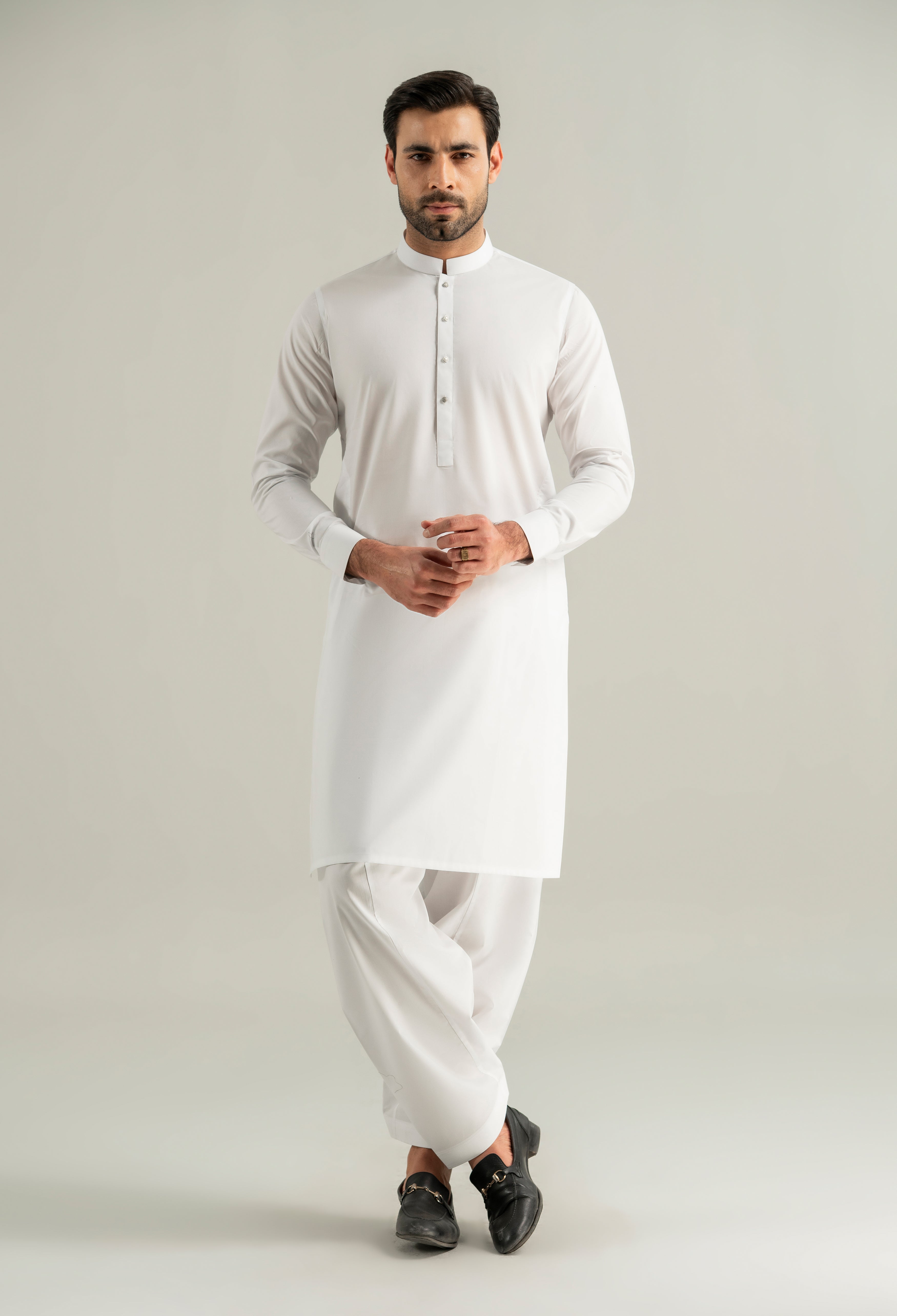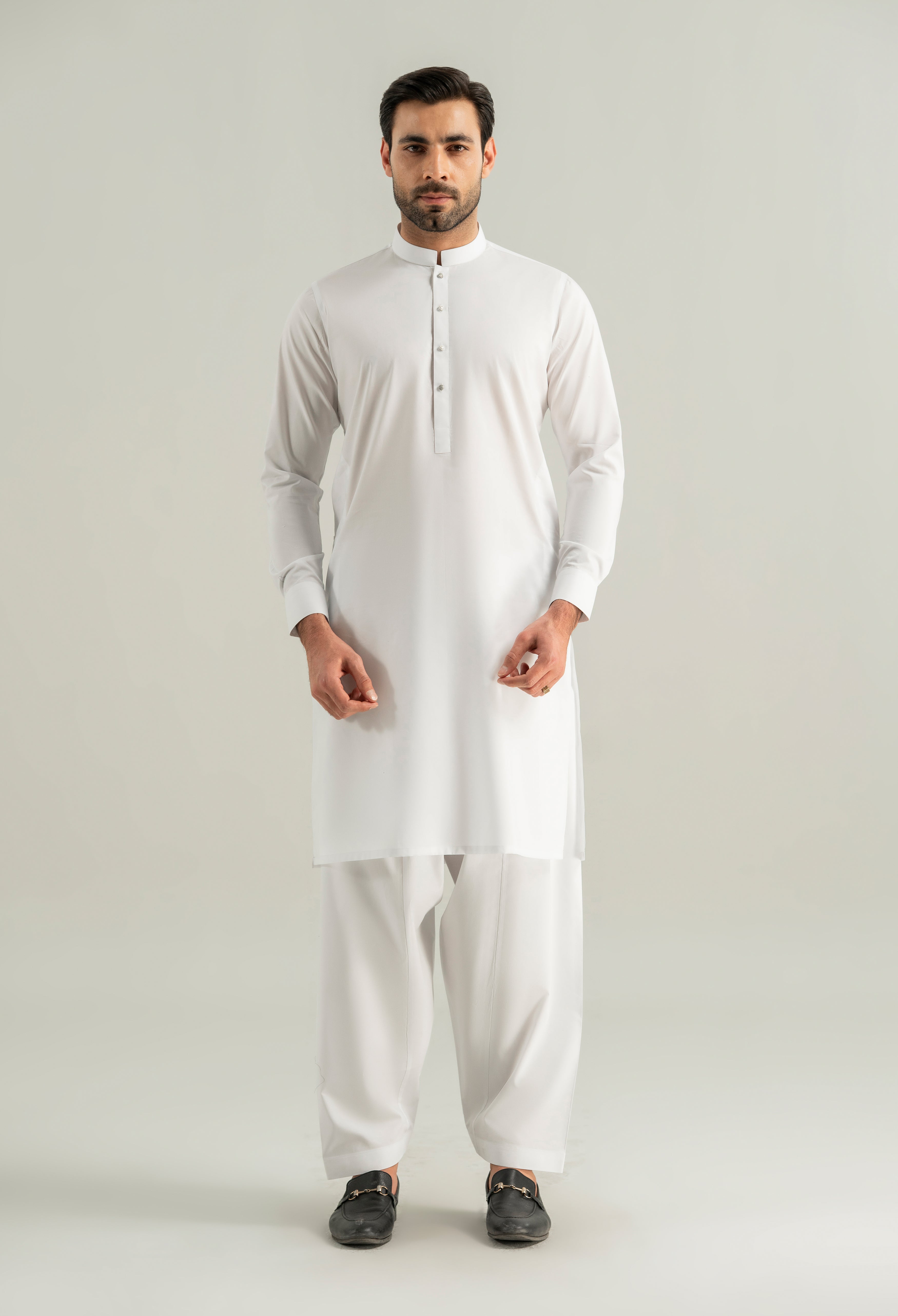 Chalk White Cotton Kameez Shalwar