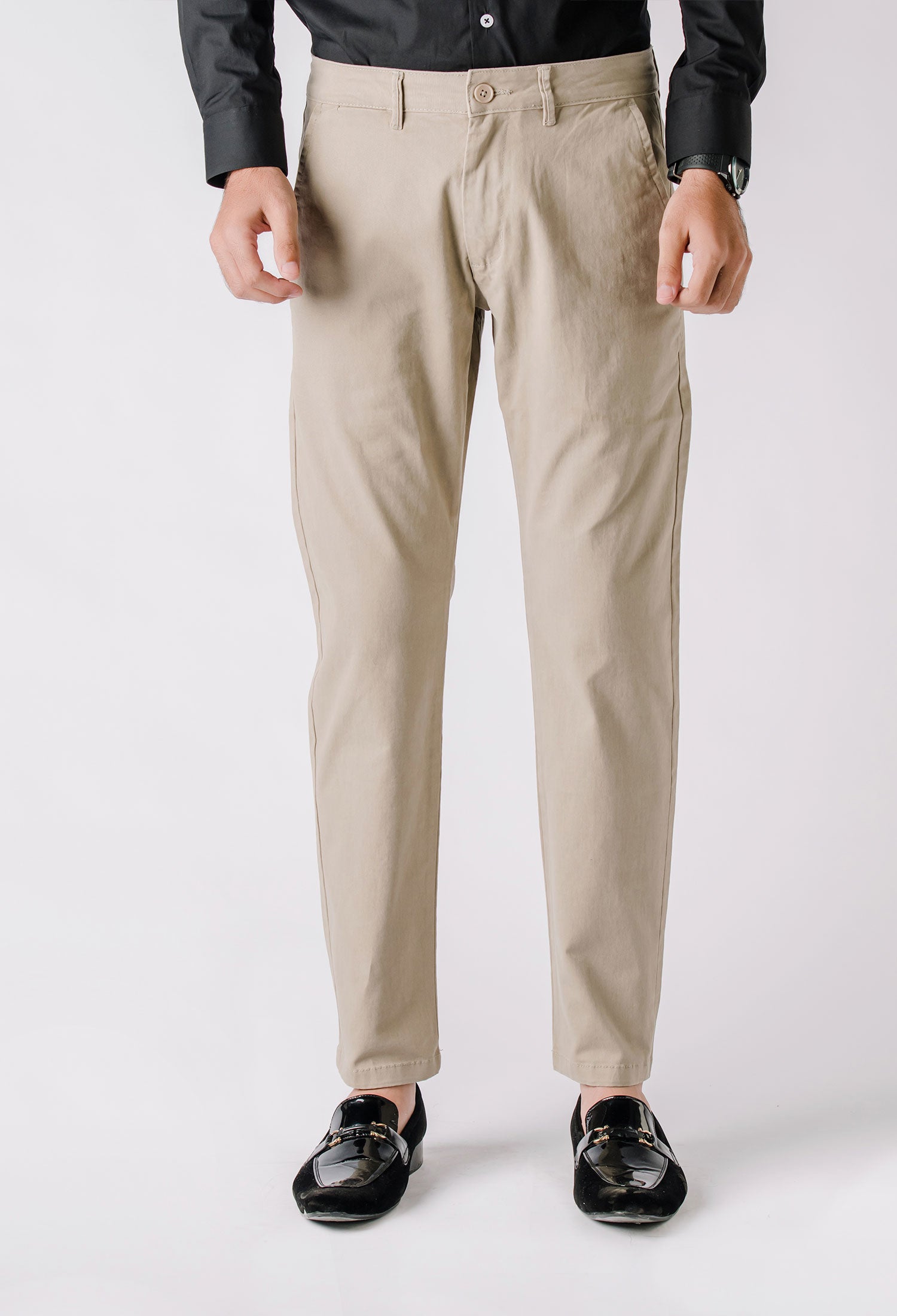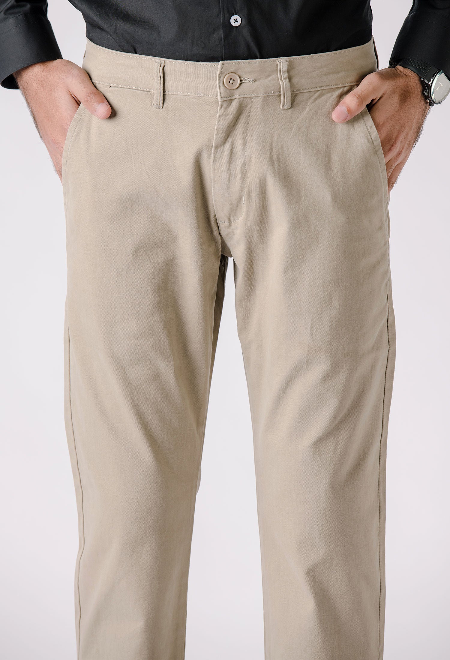 This Beige Cotton Chino Pant is crafted from 98% Cotton and 2% Lycra for superior flexibility and comfort. It has a slim fit pattern that allows for year-round wear.