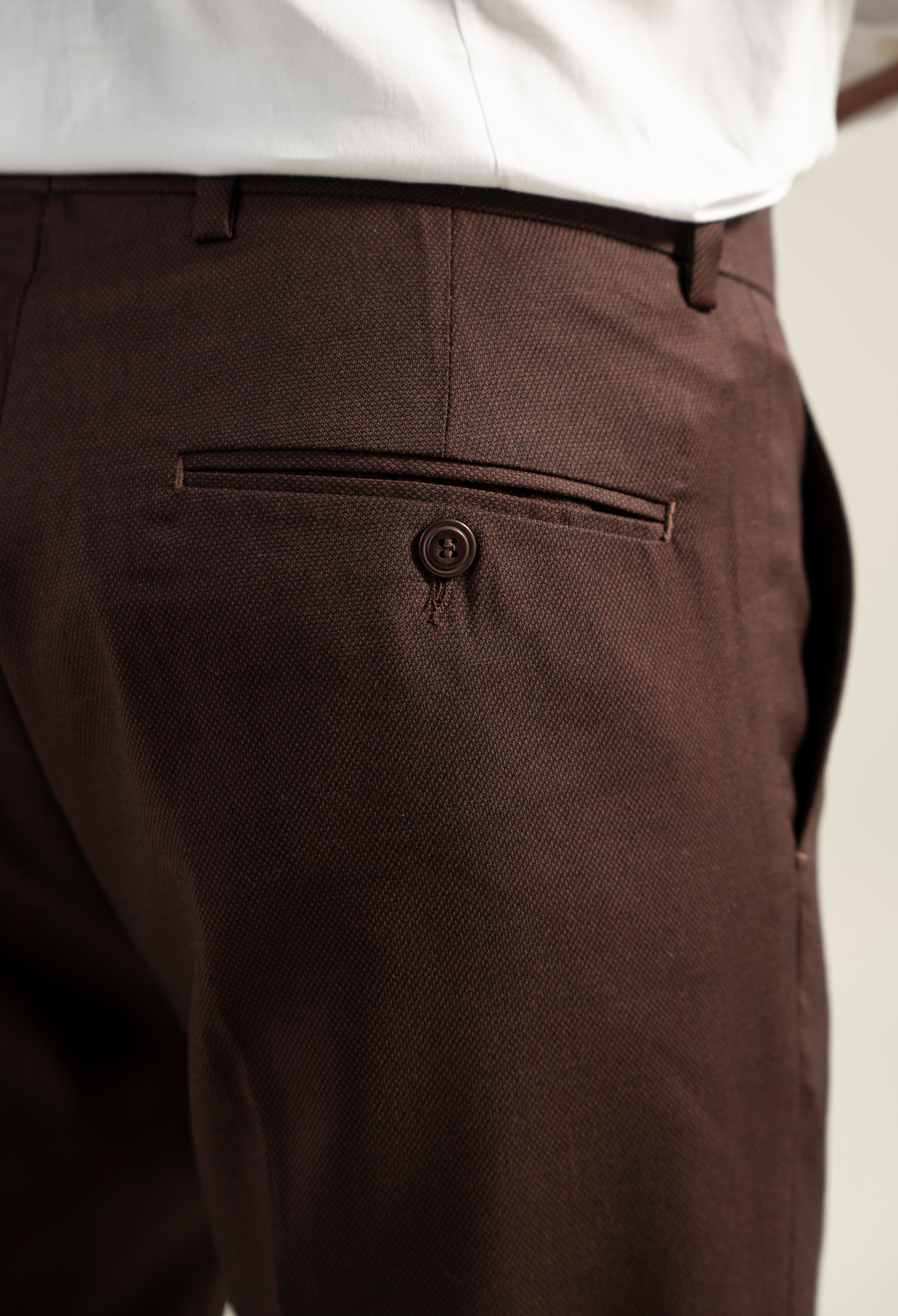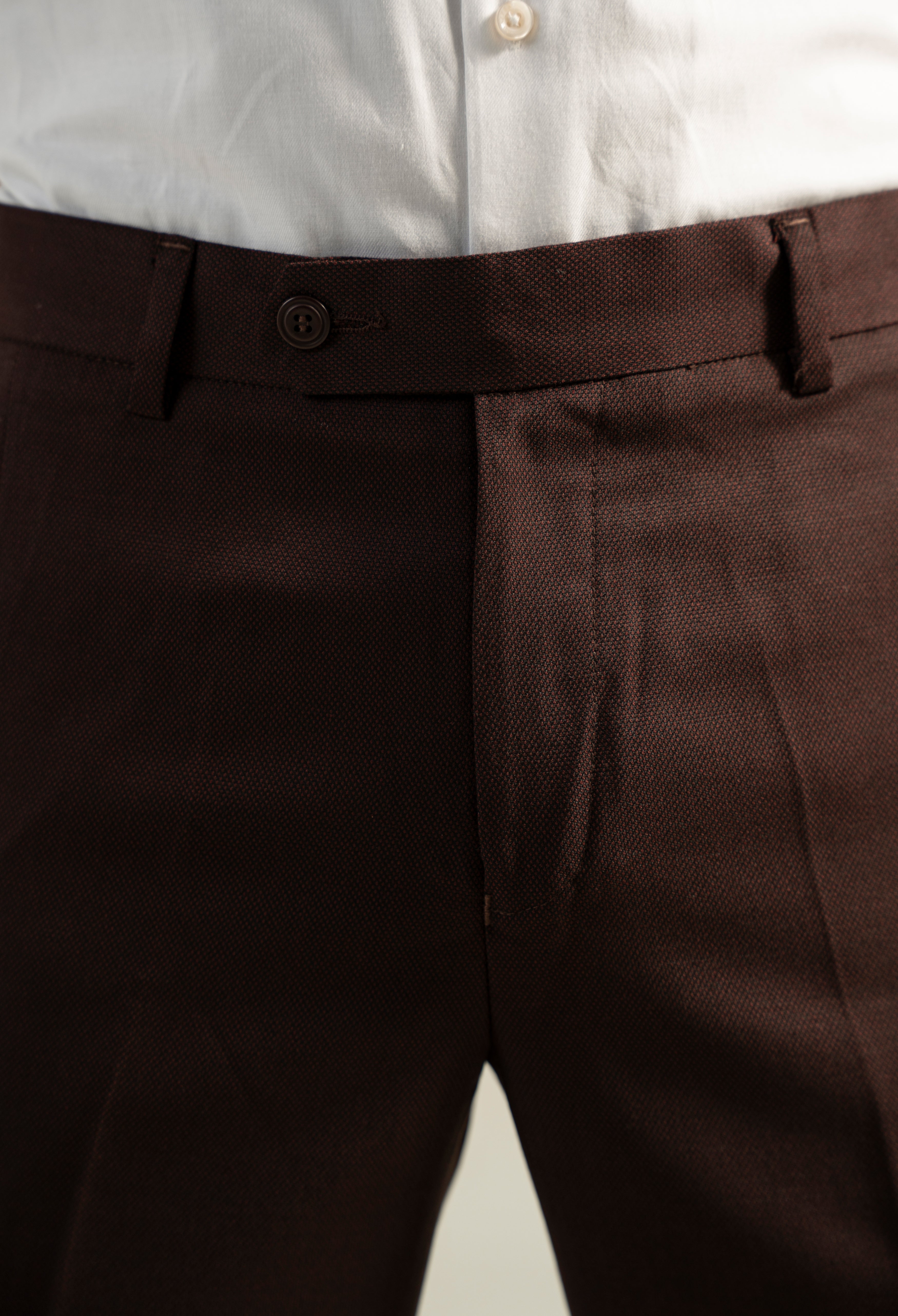 The Maroon Woolen Dress Pant offers a sophisticated blend of warmth and style, crafted from high-quality wool for durability and comfort. Its rich maroon shade adds a distinctive touch to formal attire, while the tailored cut ensures a sharp, flattering fit. Perfect for professional environments or elegant events,