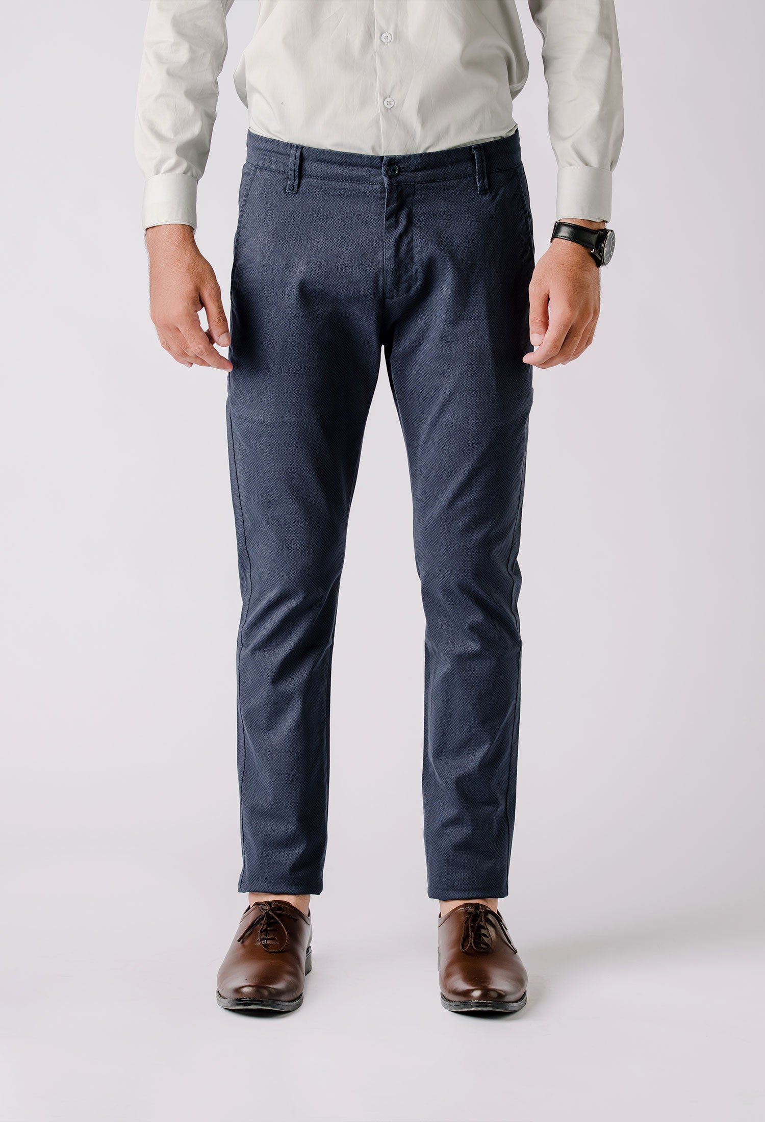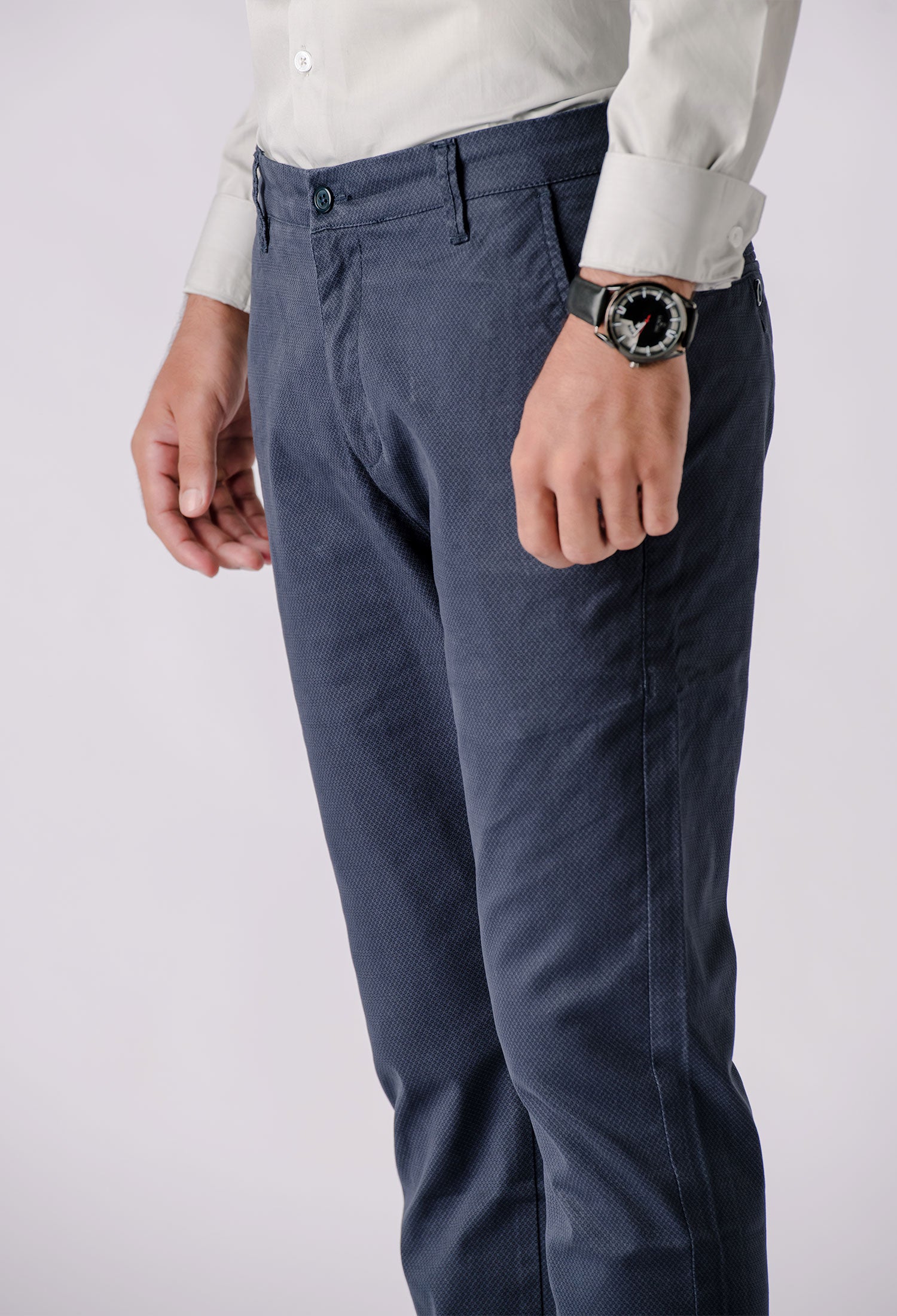 This Purssian Blue Printed Chino is crafted from 98% Cotton and 2% Lycra for a printed fabric with exceptional flexibility and comfort, making it perfect for a slim fit that can be worn throughout any season.