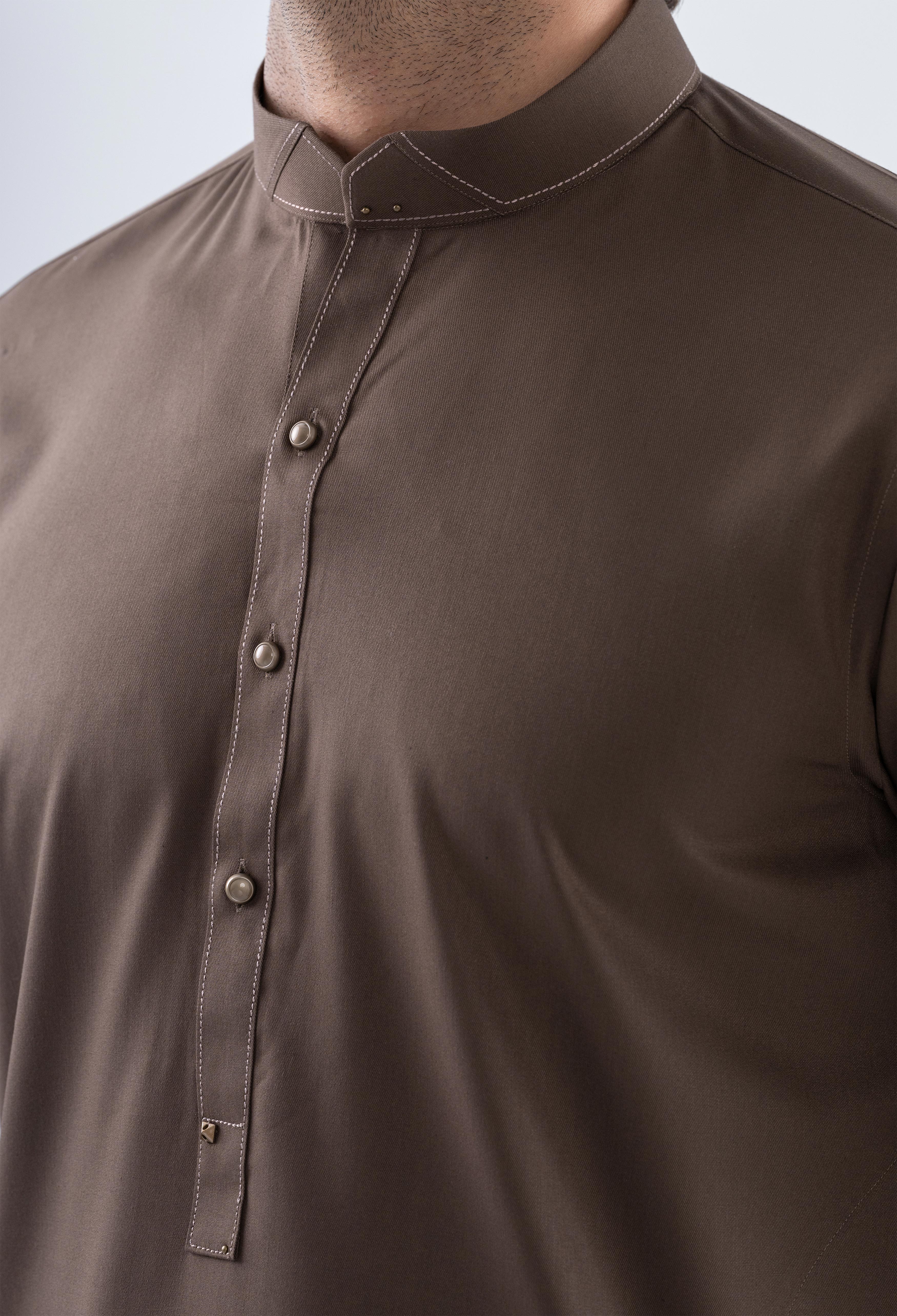 Double Latte Brown Detailing Kameez Shalwar
