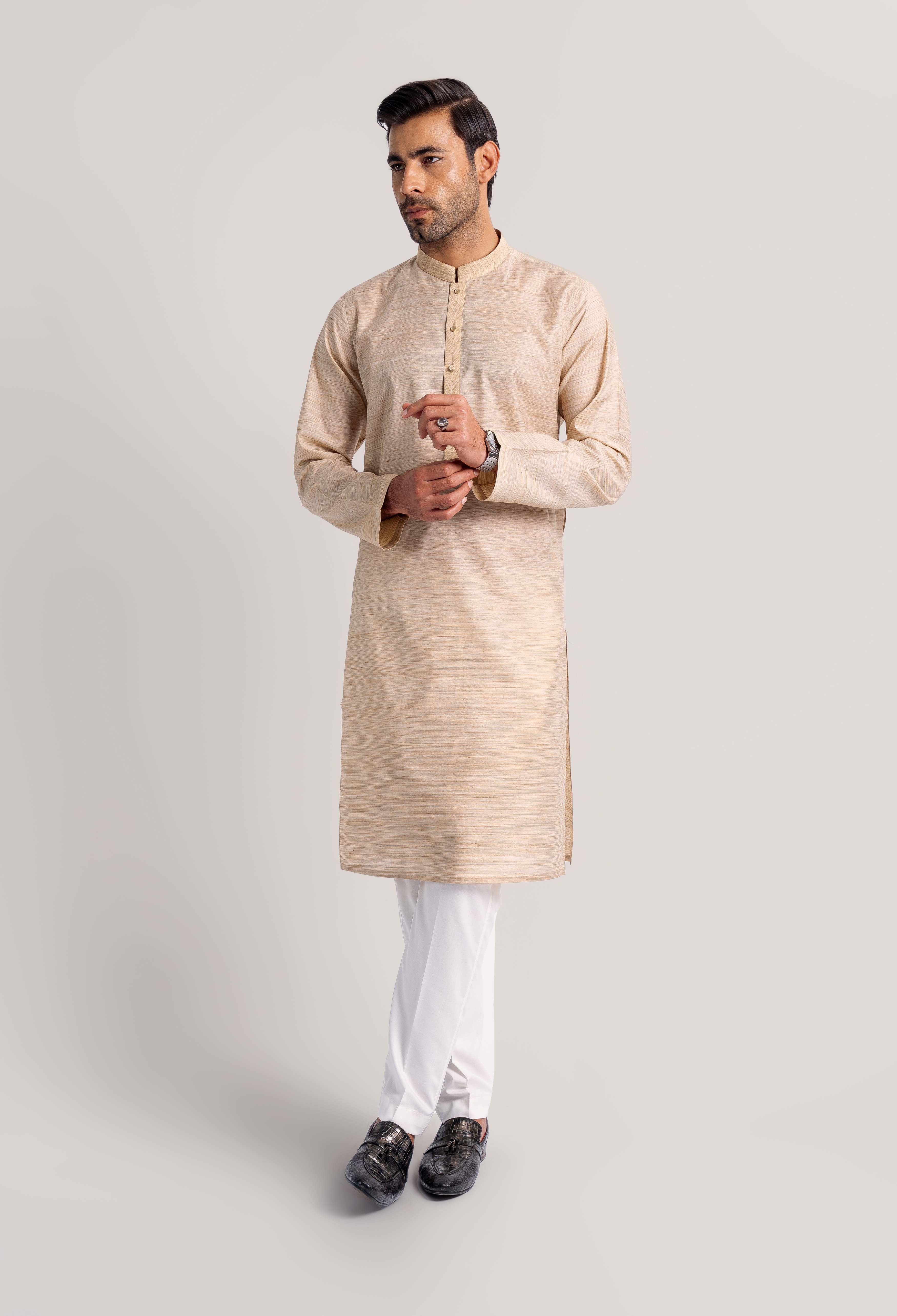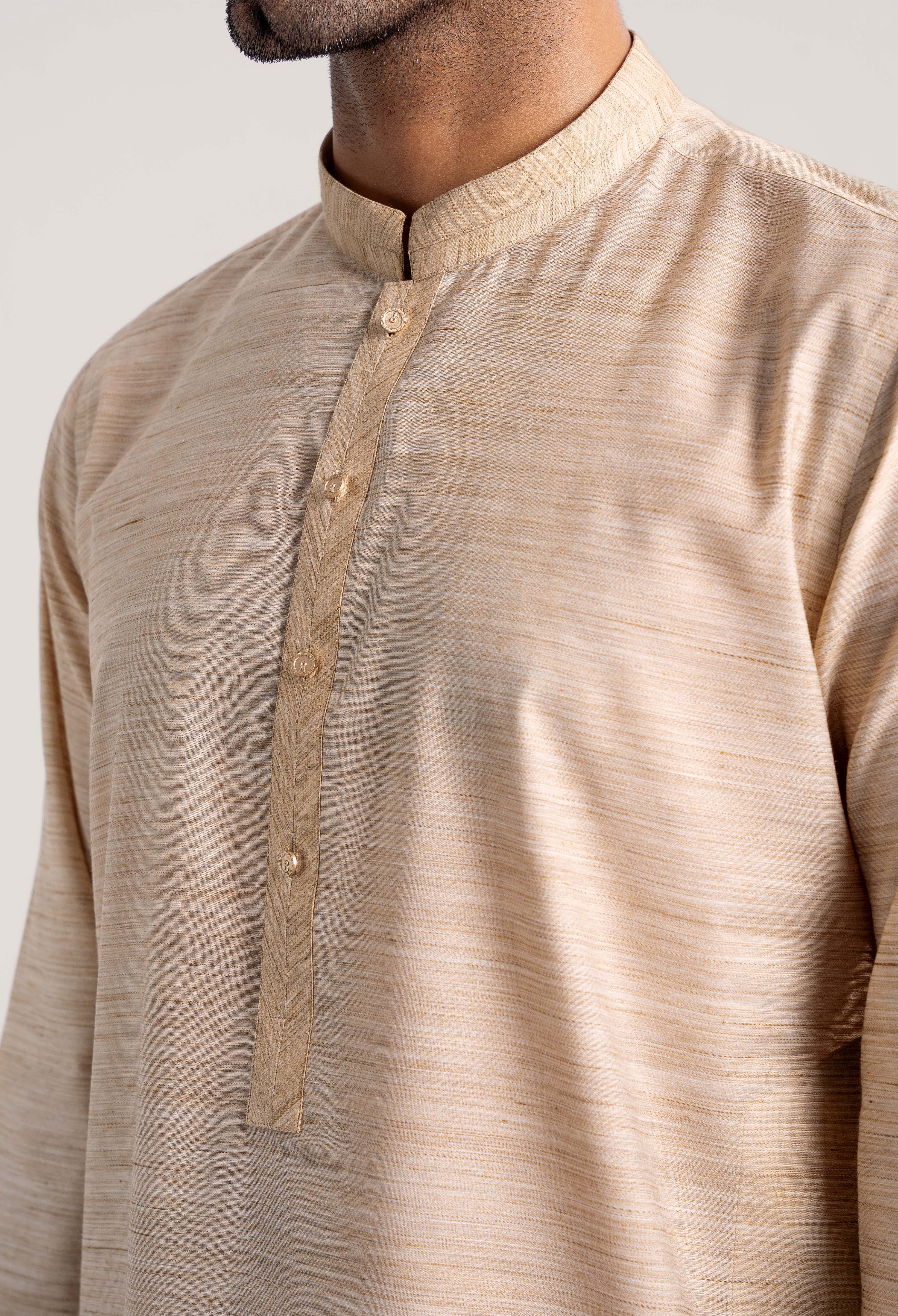 Stay comfortable and stylish with this Karandi-Parmesan Brown kurta. It is made of polyester fabric, making it ideal for everyday wear, and it features a unique design that offers a modern, sophisticated look.