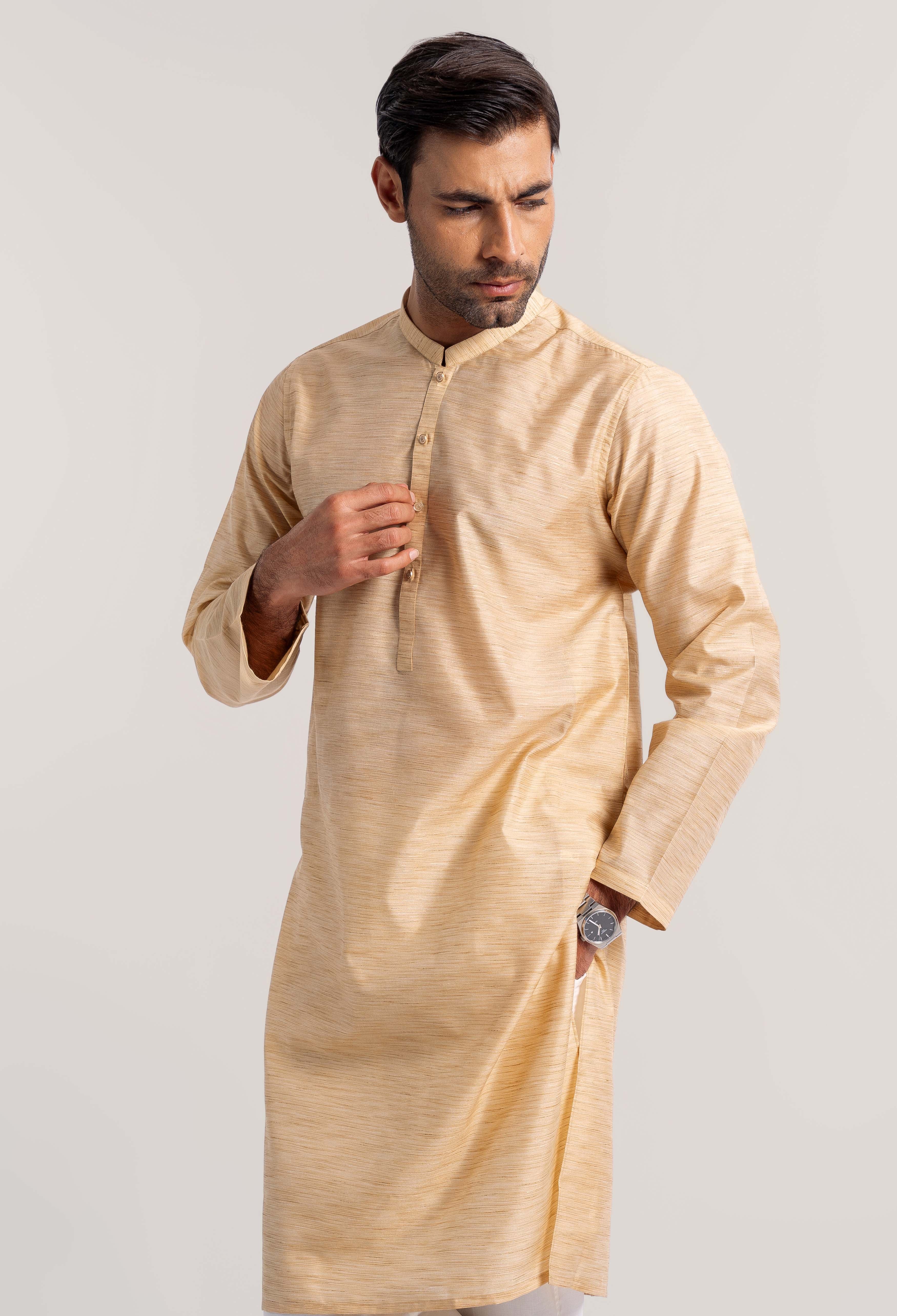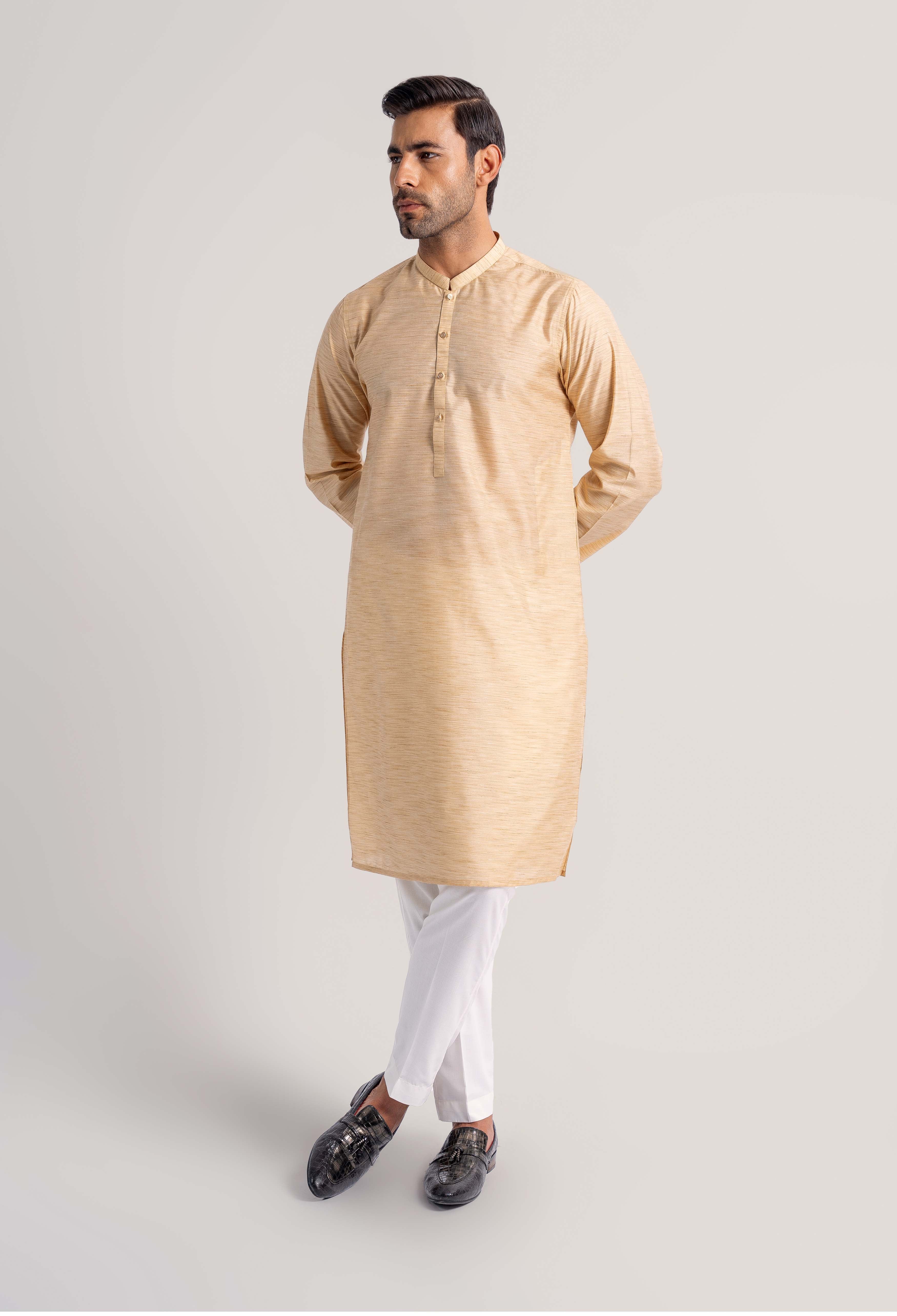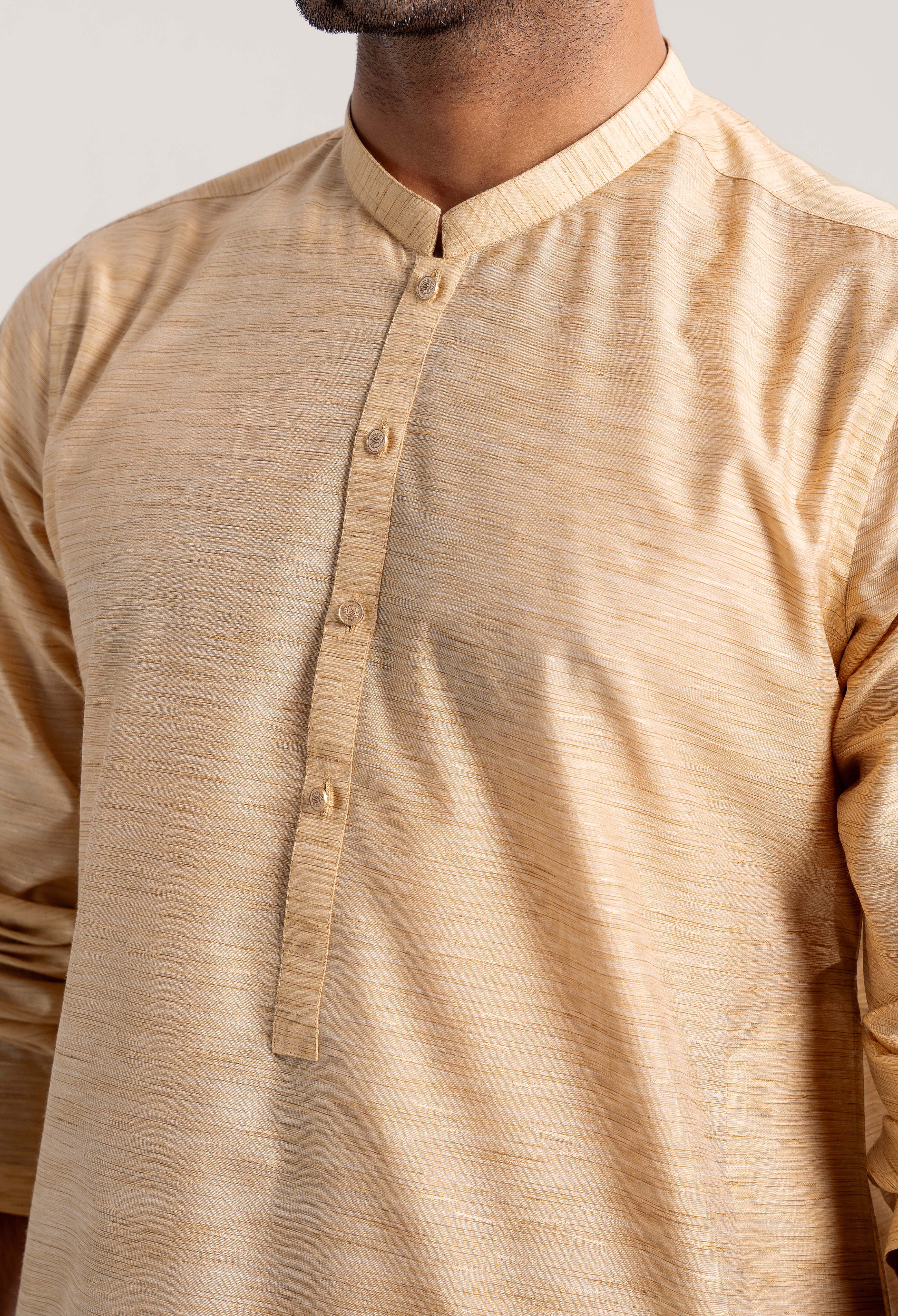 The Raw Silk-Beige Khaki Kurta exudes elegance and style with its luxurious raw silk fabric and timeless beige hue. The beautiful traditional design is perfect for both formal and informal occasions.