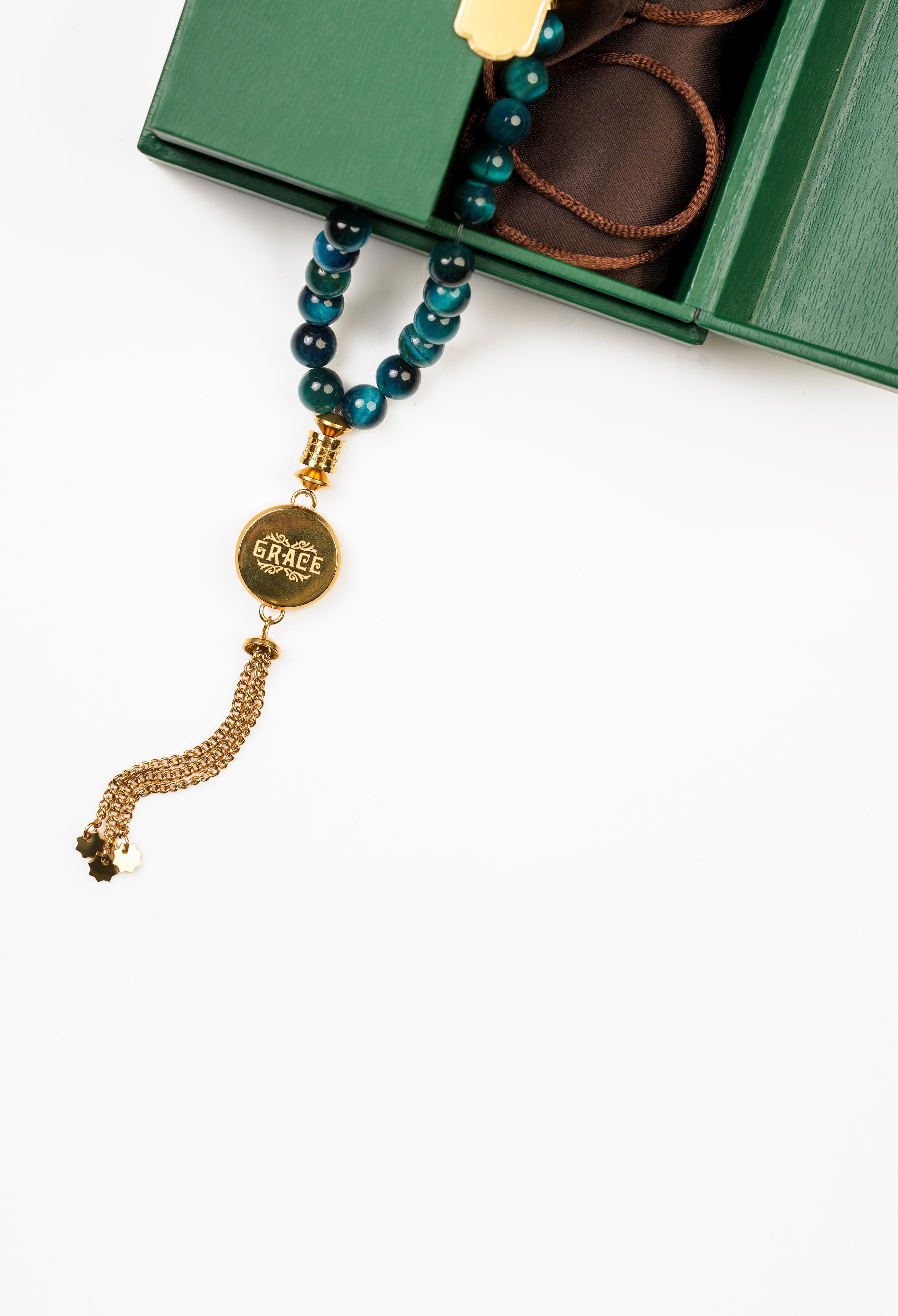 Balance, Focus. Complete with velvet pouch & elegant packaging. Genuine 8mm beads with golden spacer markers. Perfect gift with antique-like charm.
