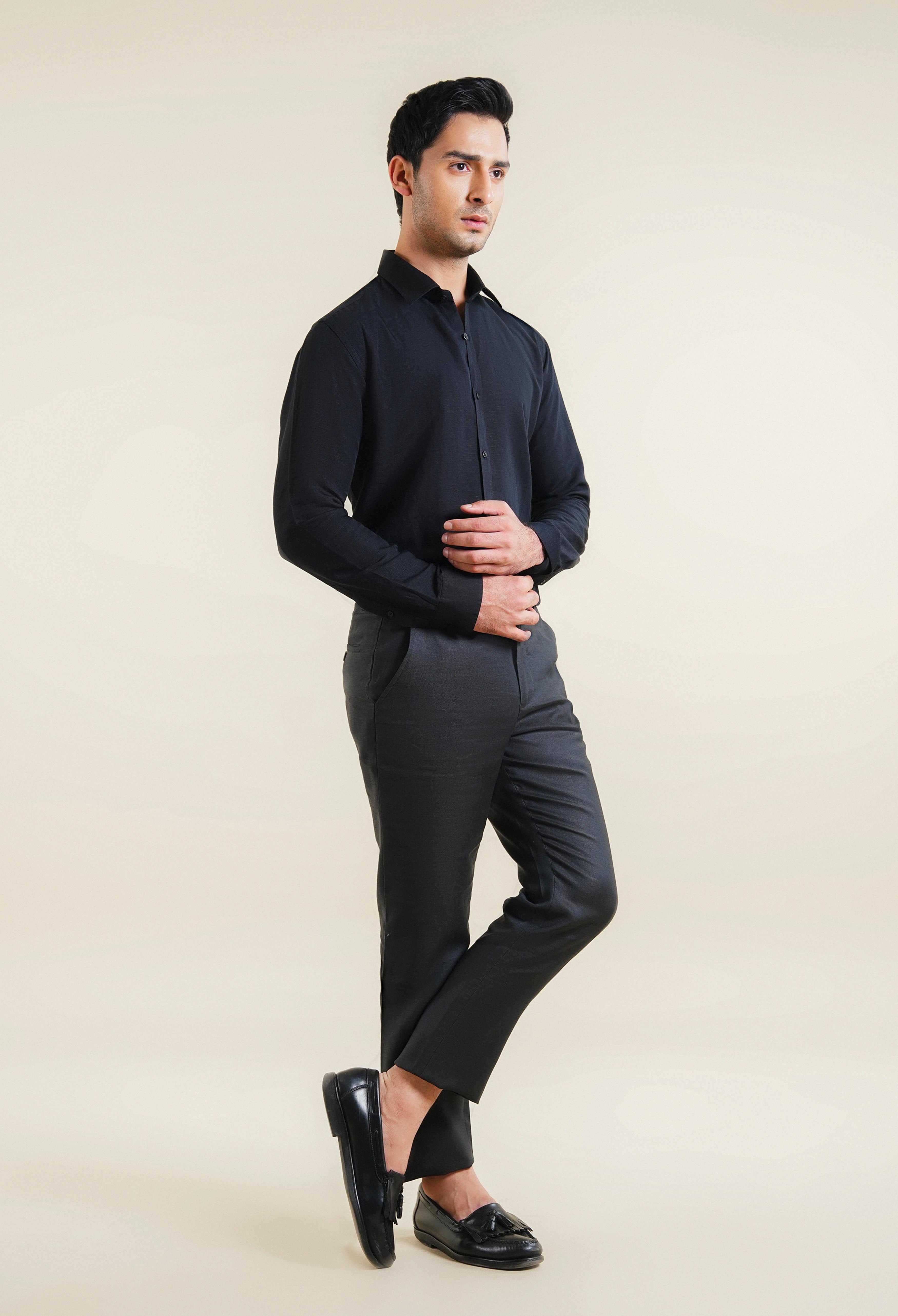 This men’s linen shirt seamlessly blends comfort with timeless elegance. Tailored in a slim fit, it is adorned with a classic shirt collar, straight cuffs, and shell buttons, delivering a refined and polished appearance. Made from lightweight and breathable linen, it exudes relaxed sophistication, making it an ideal choice for warm climates and casual settings.