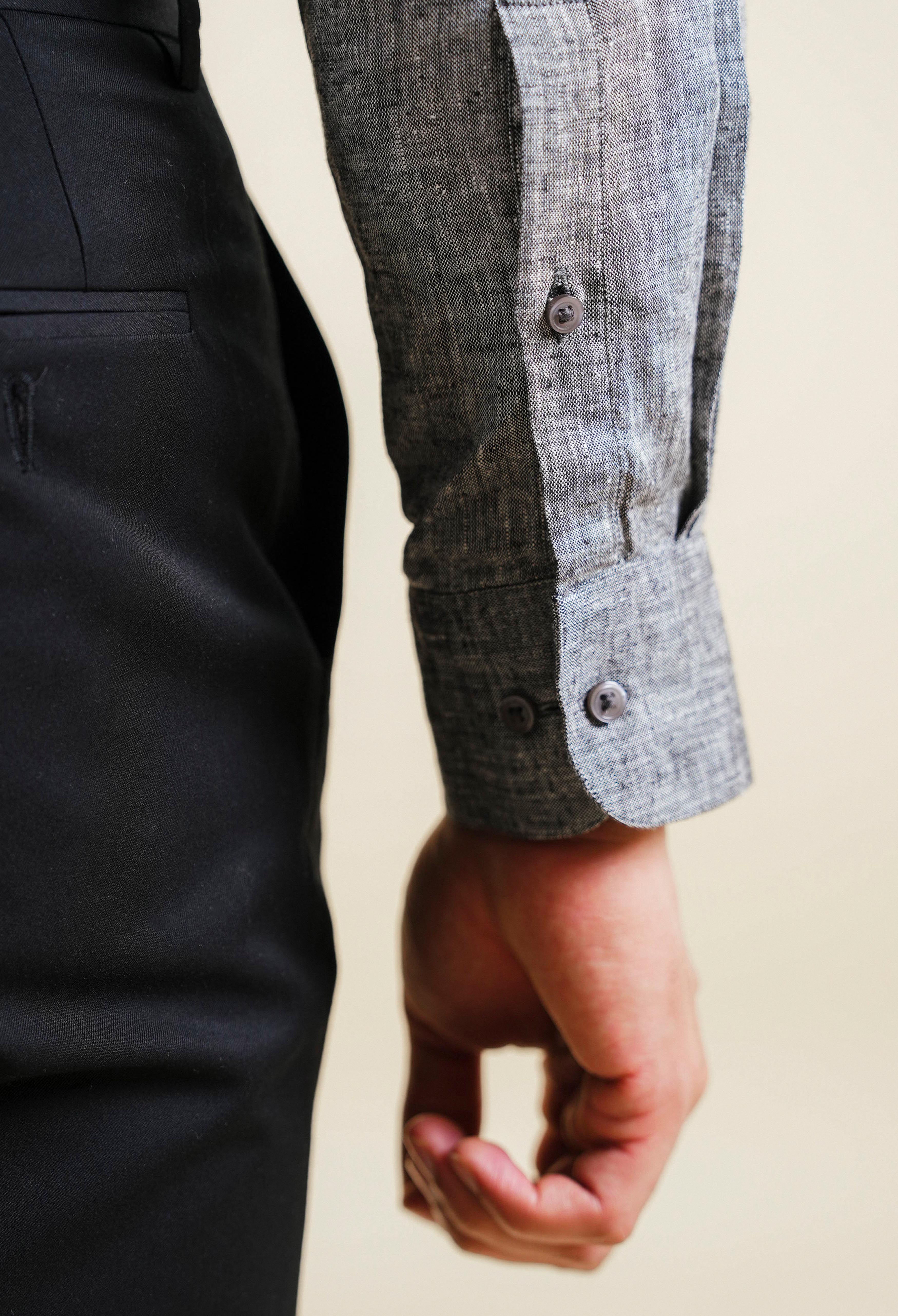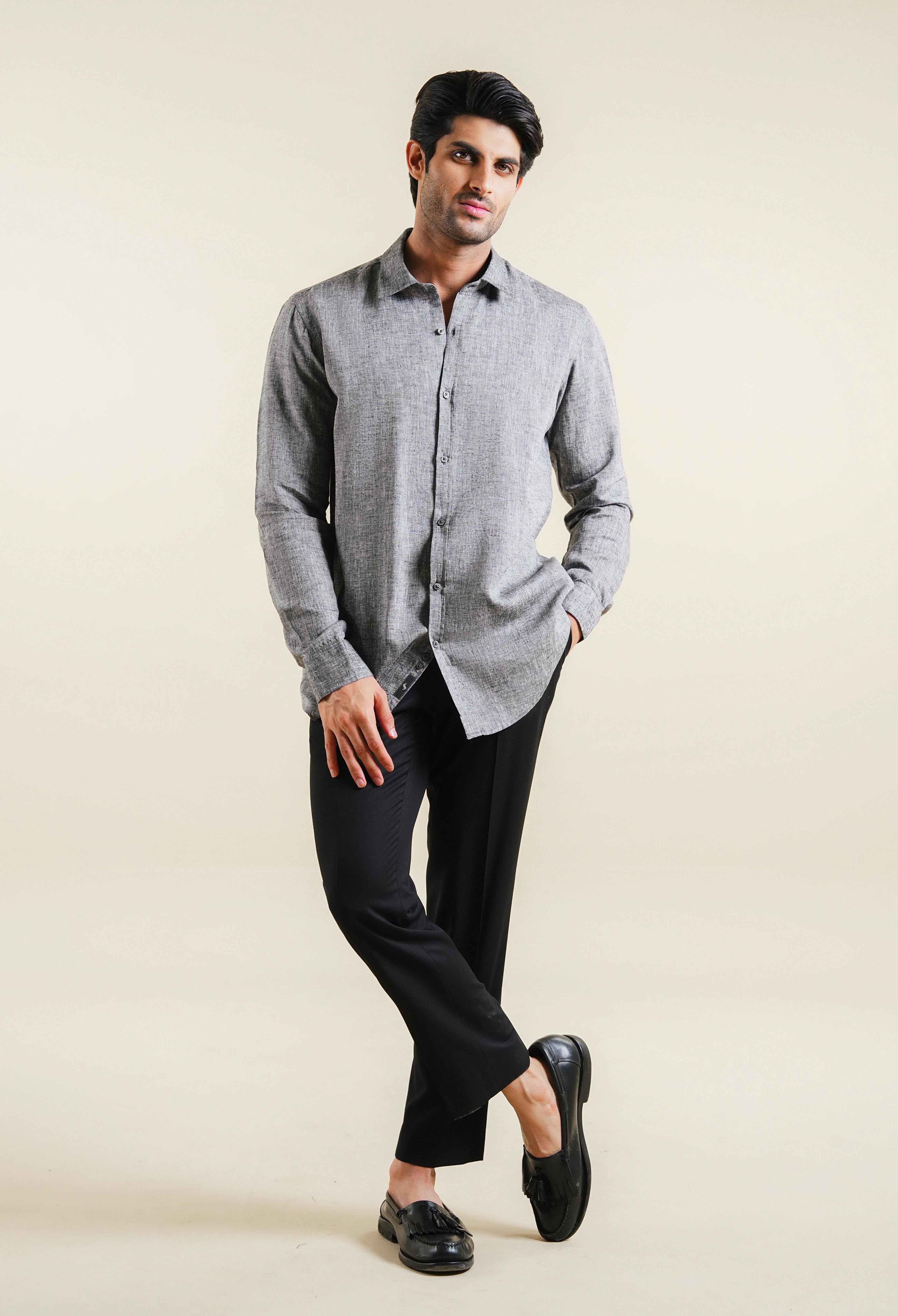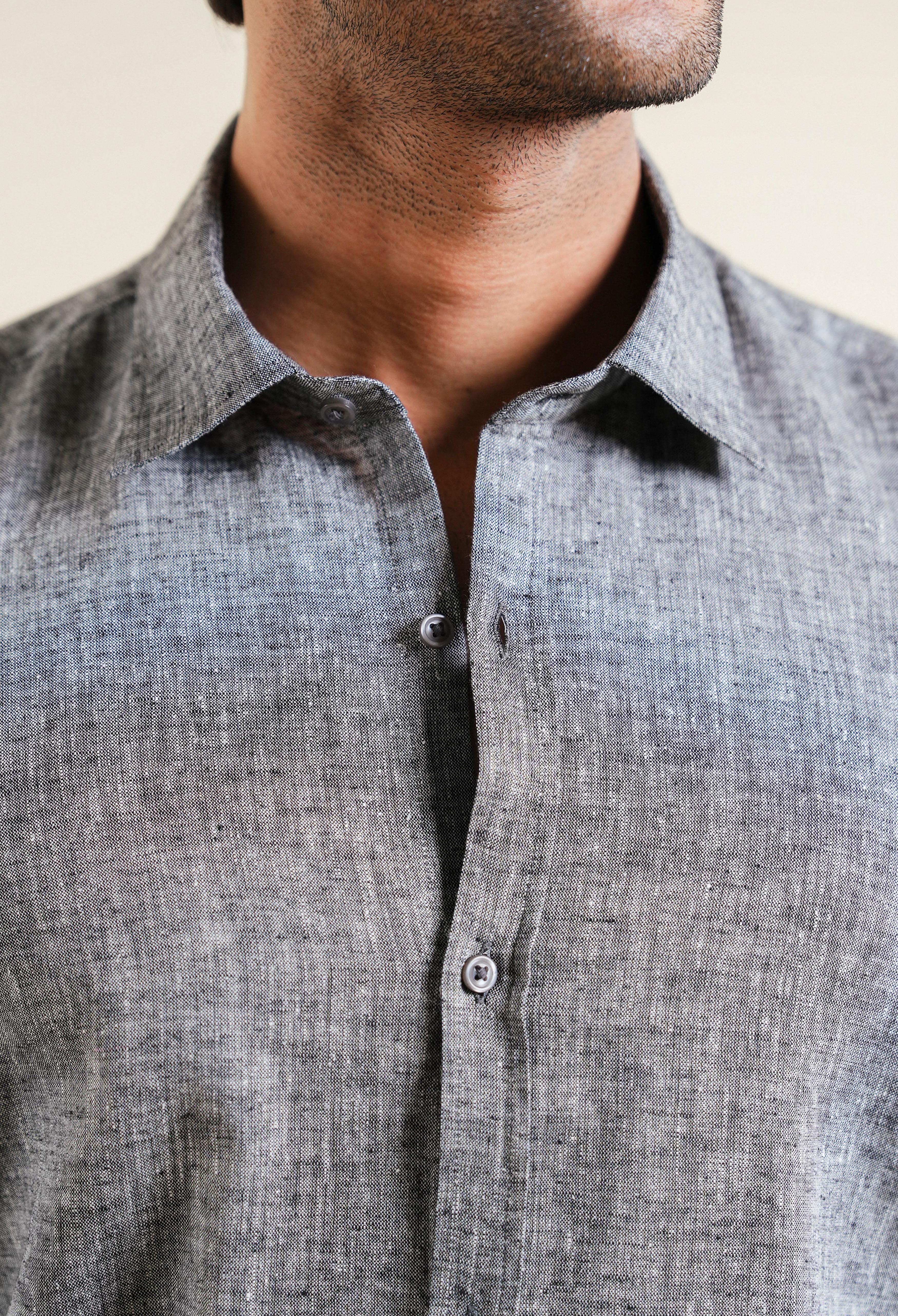 This men’s linen shirt seamlessly blends comfort with timeless elegance. Tailored in a slim fit, it is adorned with a classic shirt collar, straight cuffs, and shell buttons, delivering a refined and polished appearance. Made from lightweight and breathable linen, it exudes relaxed sophistication, making it an ideal choice for warm climates and casual settings.