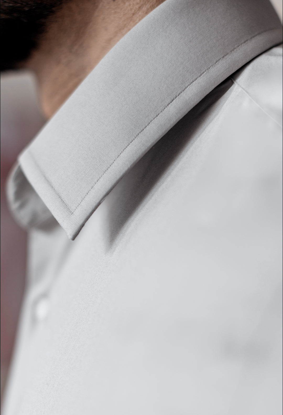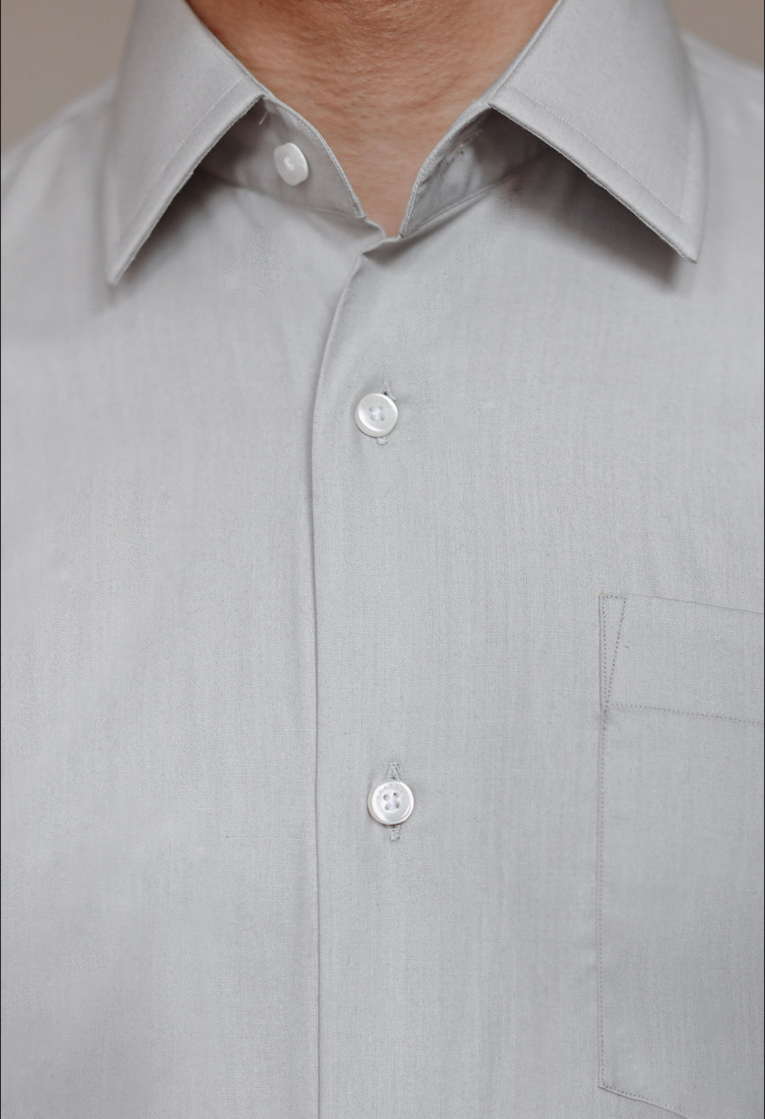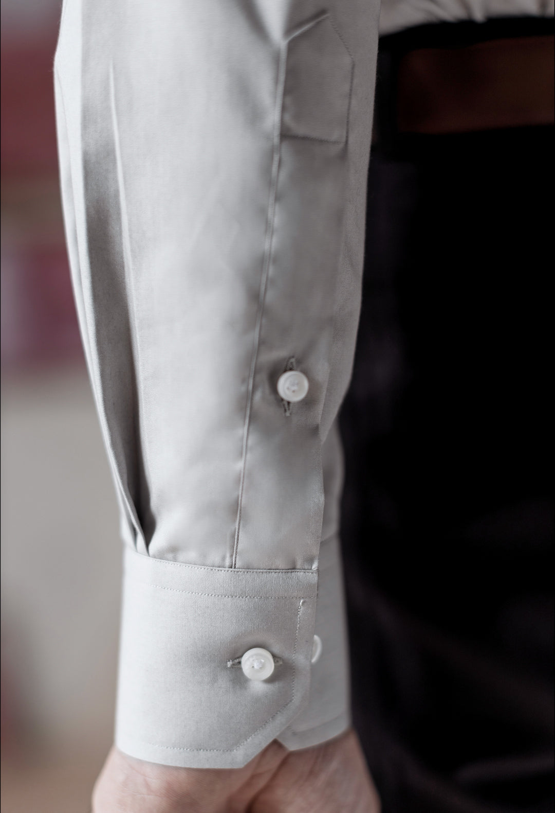 This shirt boasts a sleek, contemporary design with a plastic button and a distinctive cut-style patch pocket that adds a touch of modern flair. The round hem and back, featuring a slightly box pleat, offer a comfortable and stylish fit. The customized collar and plain placket enhance the shirt’s refined look, while the diagonal cut cuff and cut cuff details provide a unique finishing touch.