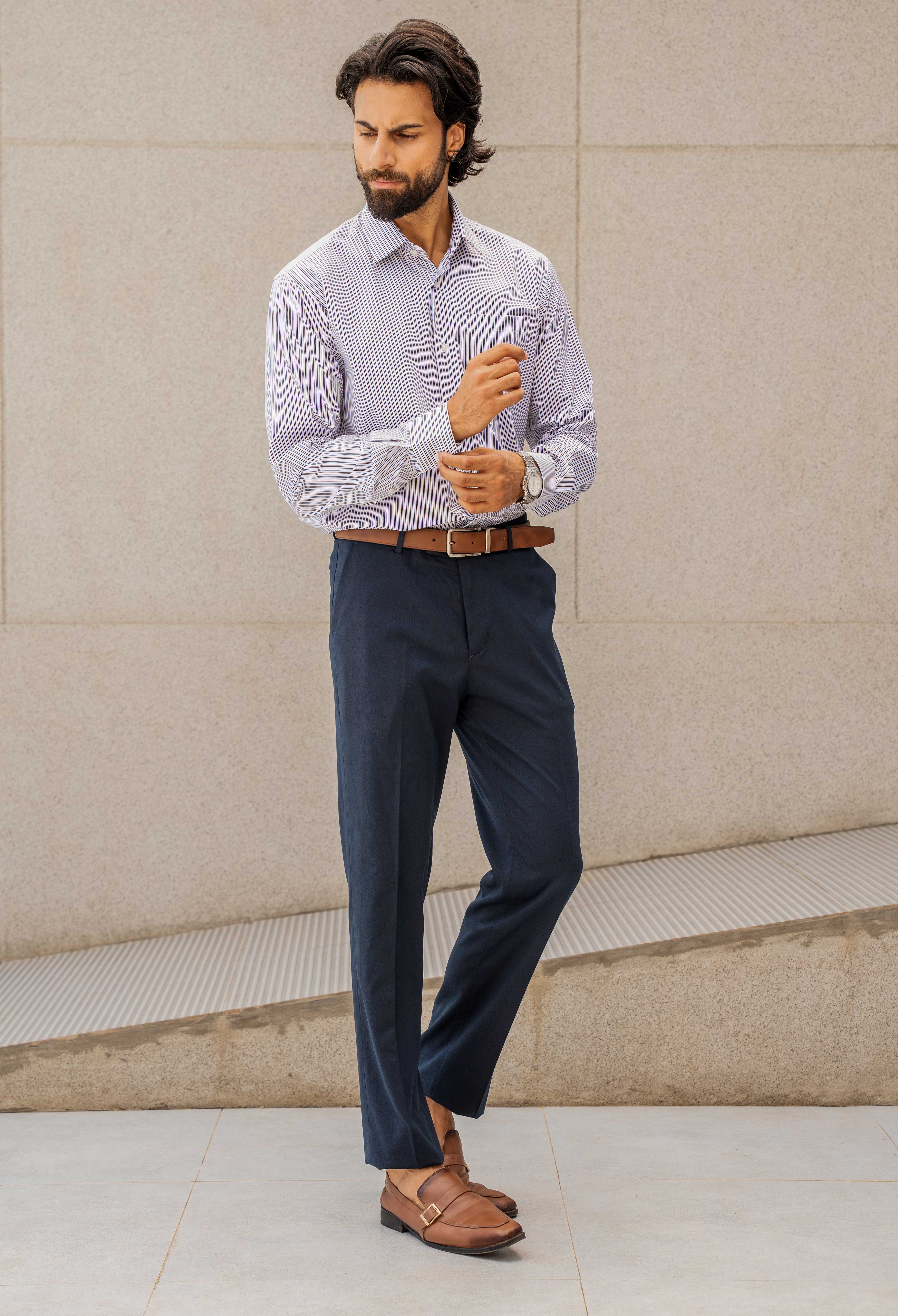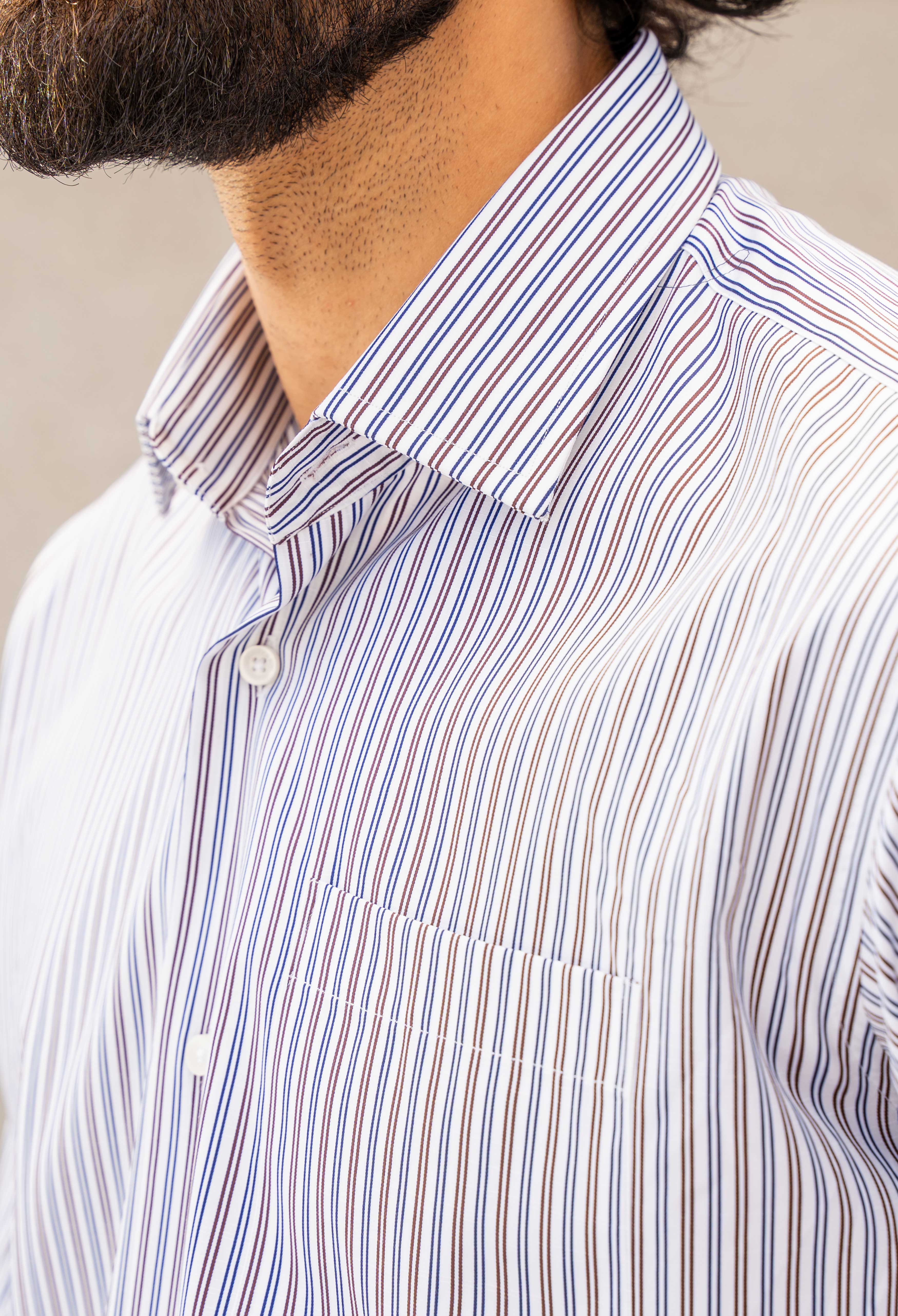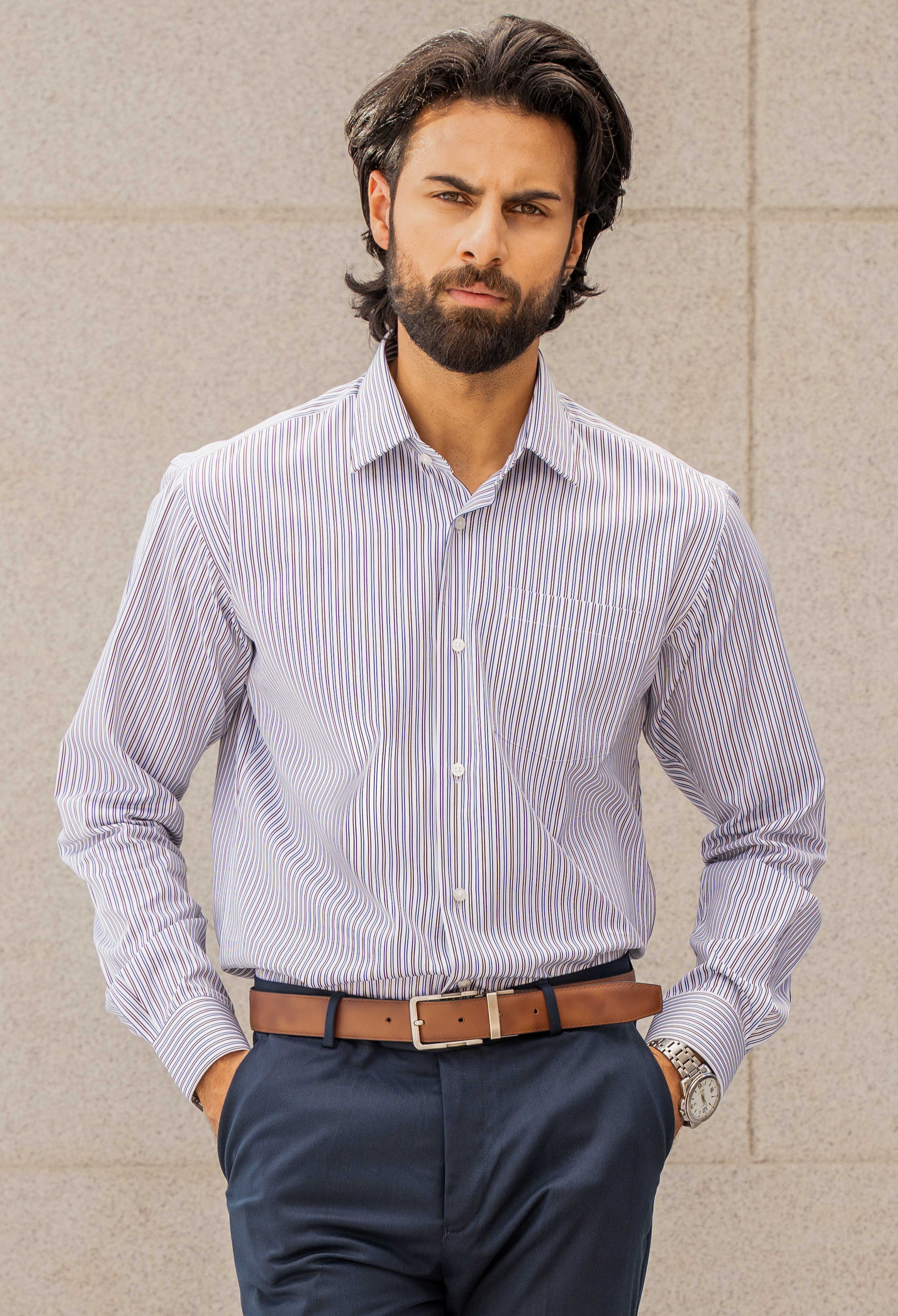 This Maroon/Blue Formal Stripes Shirt is the perfect addition to any professional wardrobe. With a sleek and sophisticated design, this shirt is made with high-quality materials for maximum comfort and style. Stand out in the office or at your next formal event with this stylish and professional shirt.
