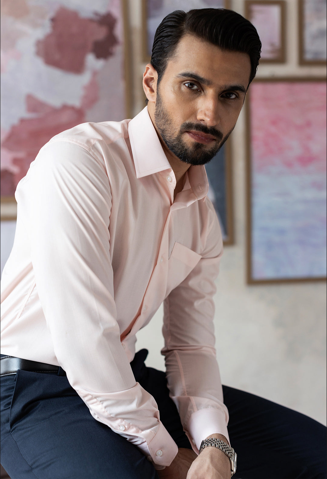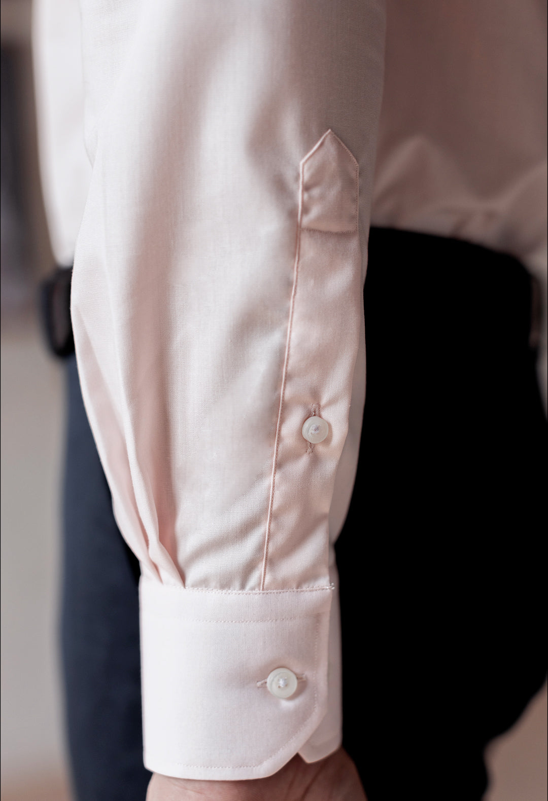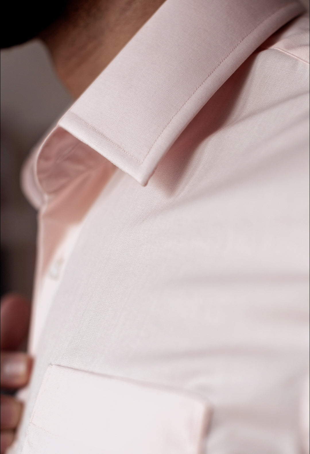 This shirt boasts a sleek, contemporary design with a plastic button and a distinctive cut-style patch pocket that adds a touch of modern flair. The round hem and back, featuring a slightly box pleat, offer a comfortable and stylish fit. The customized collar and plain placket enhance the shirt’s refined look, while the diagonal cut cuff and cut cuff details provide a unique finishing touch.