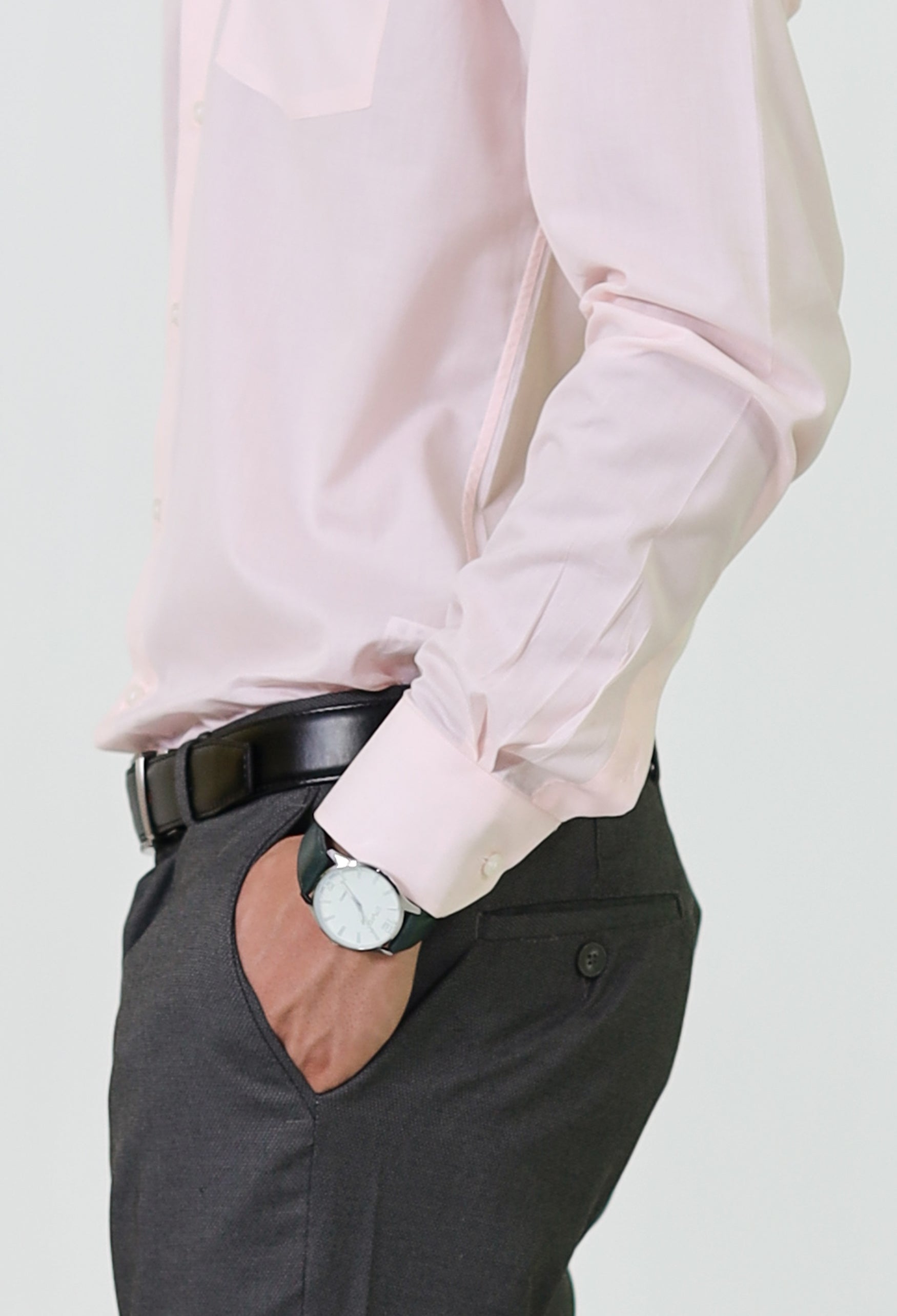 The garment features a classic yet modern design, characterized by a plastic button closure and cut-style patch pockets for a sleek, tailored look. The round hem adds a subtle touch of softness to the silhouette, while the back includes a slightly box pleat, providing ease of movement and a hint of sophistication