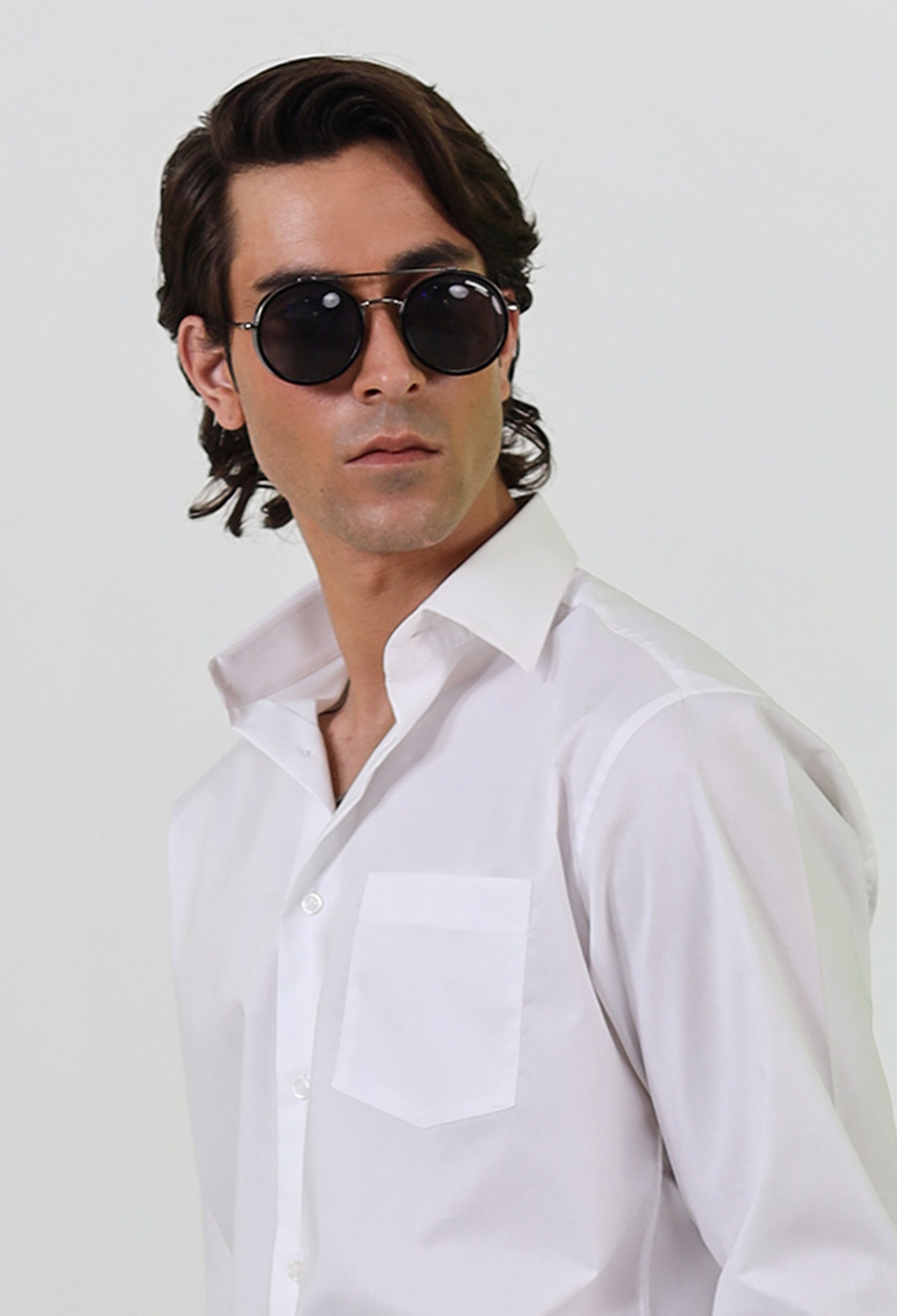 The garment features a classic yet modern design, characterized by a plastic button closure and cut-style patch pockets for a sleek, tailored look. The round hem adds a subtle touch of softness to the silhouette, while the back includes a slightly box pleat, providing ease of movement and a hint of sophistication