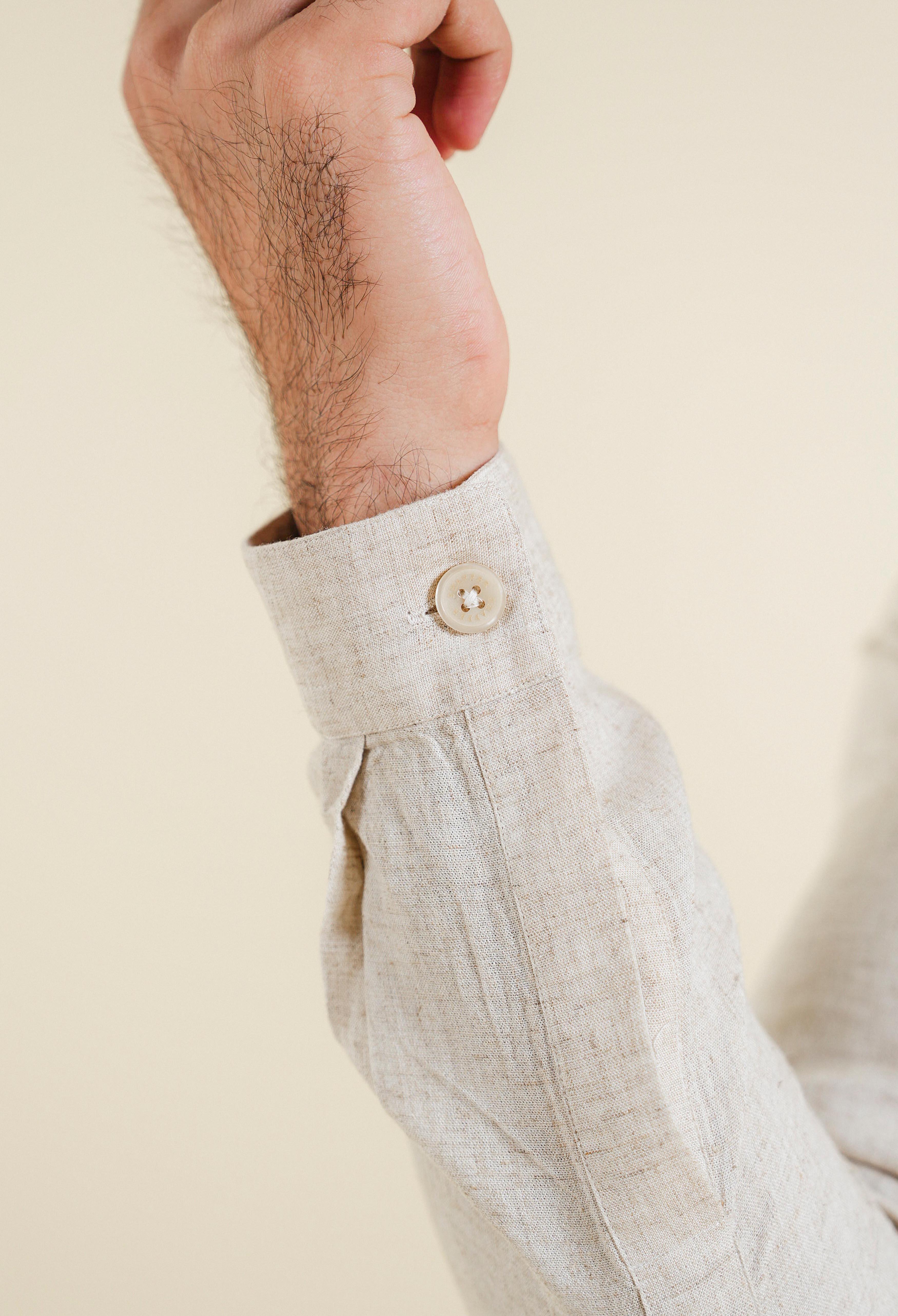 This linen shirt is comfortable, stylish, and stunning at the same time. It features a classic Cuban collar that is relaxed yet polished. The cuffs are straight, giving the shirt a crisp and structured appearance, while subtle shell buttons add an elegant touch. This linen shirt is breathable, lightweight, and moisture-wicking, ensuring you stay cool and dry on warm days. Pair it with chinos or shorts for a versatile and stylish look.