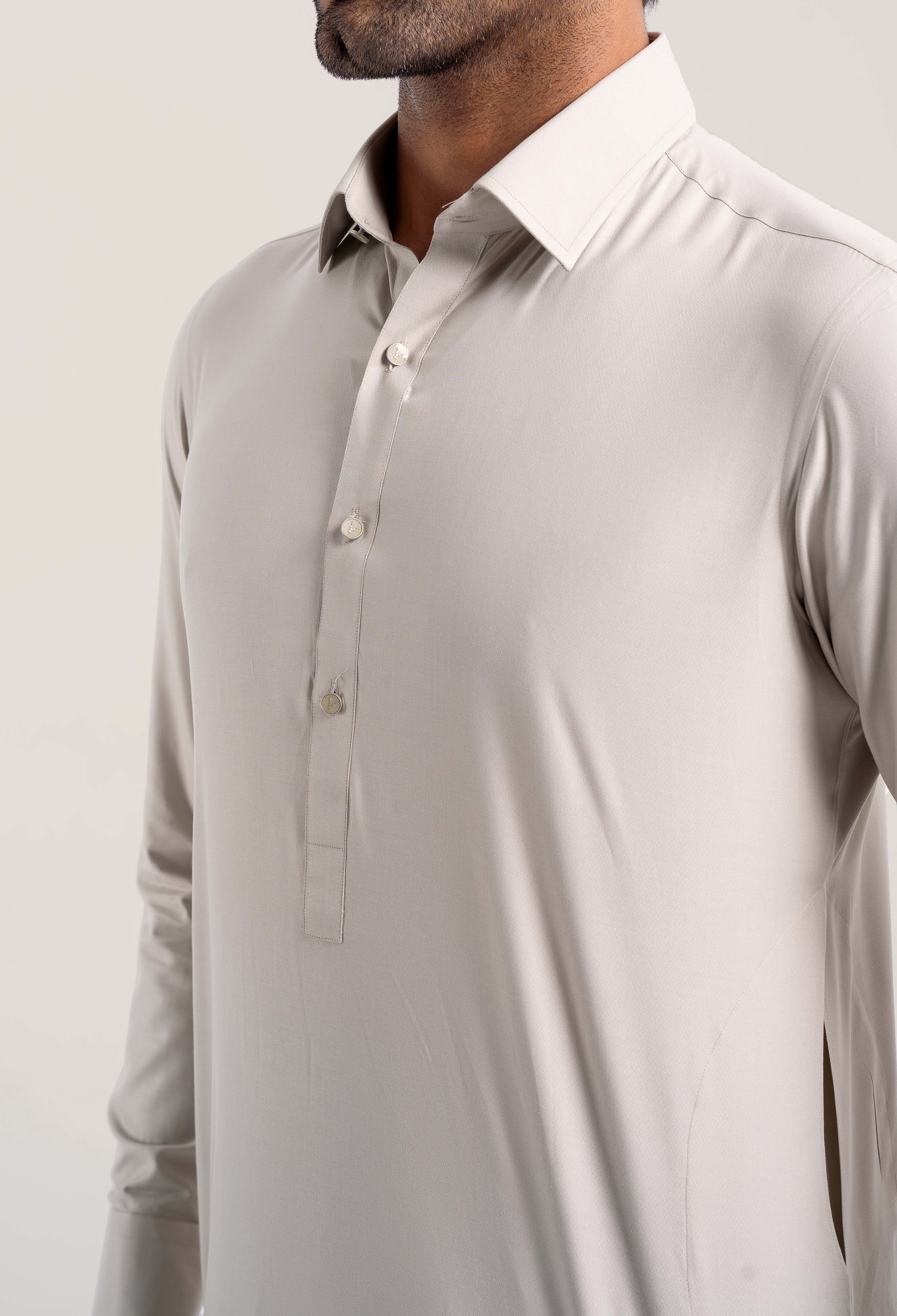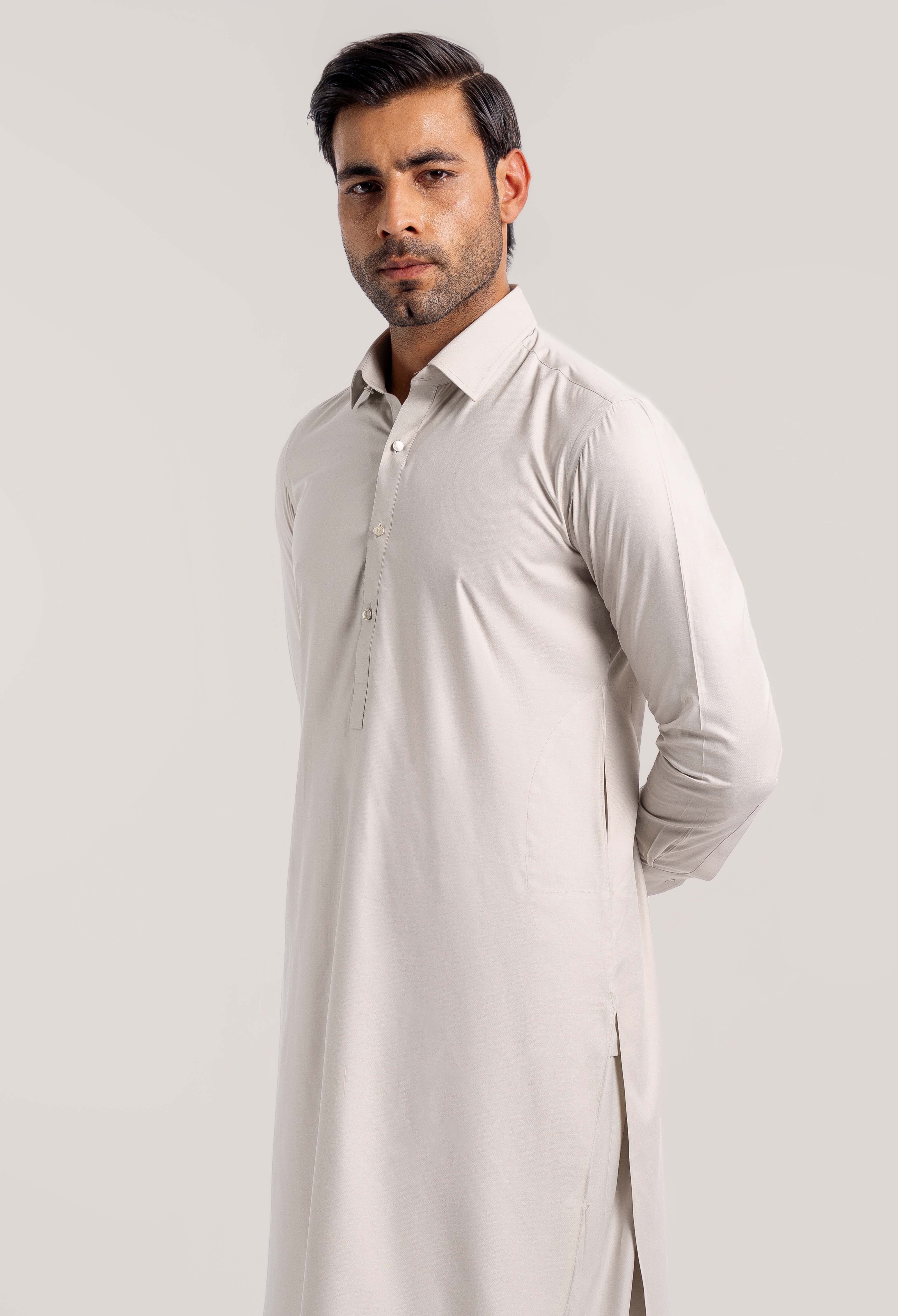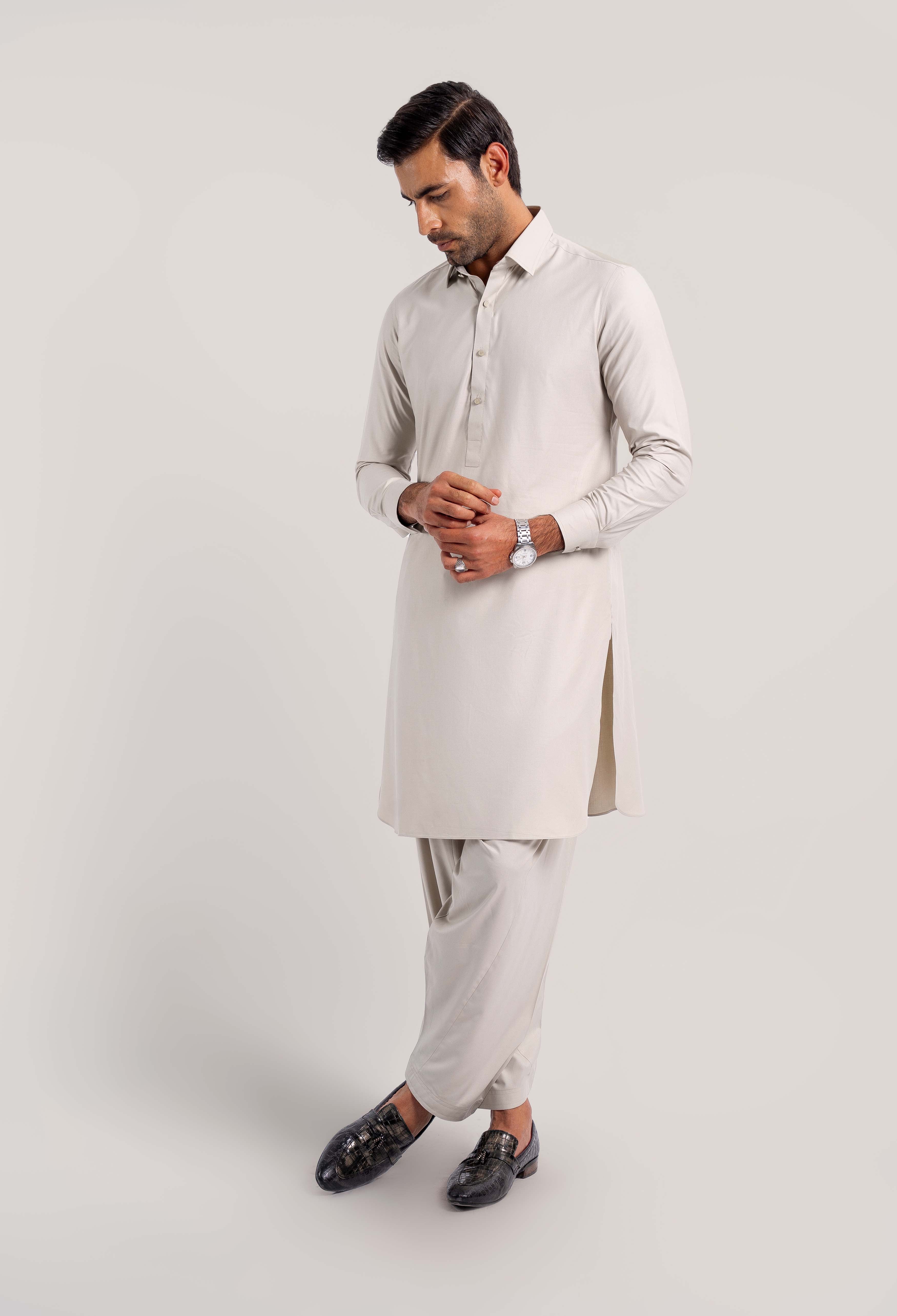 This Star Shine Egg Shell Grey Blended Kameez Shalwar is the perfect addition to your wardrobe. Made from star shine blended fabric, it offers a unique and elegant look. The soft and comfortable material is perfect for any occasion,