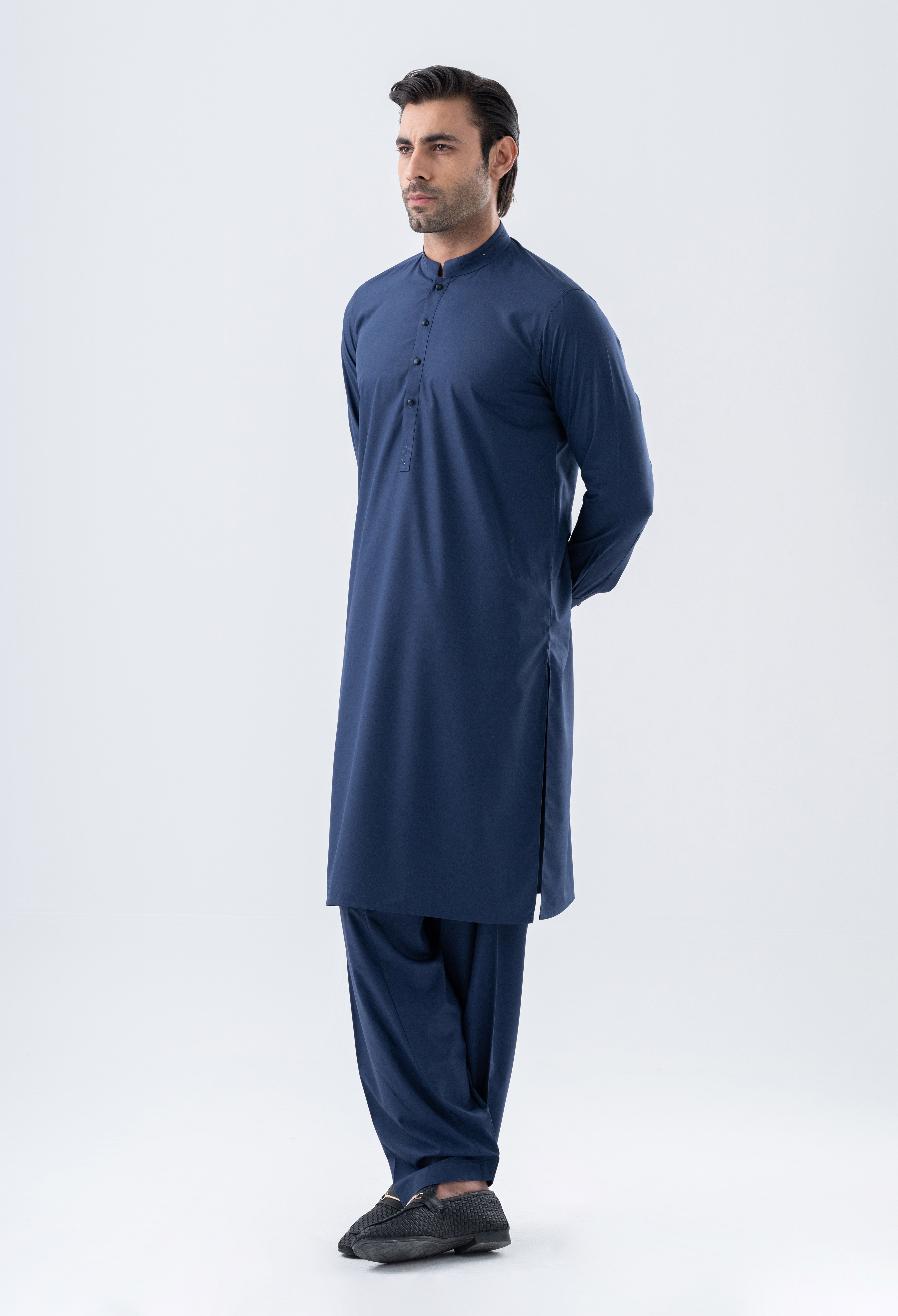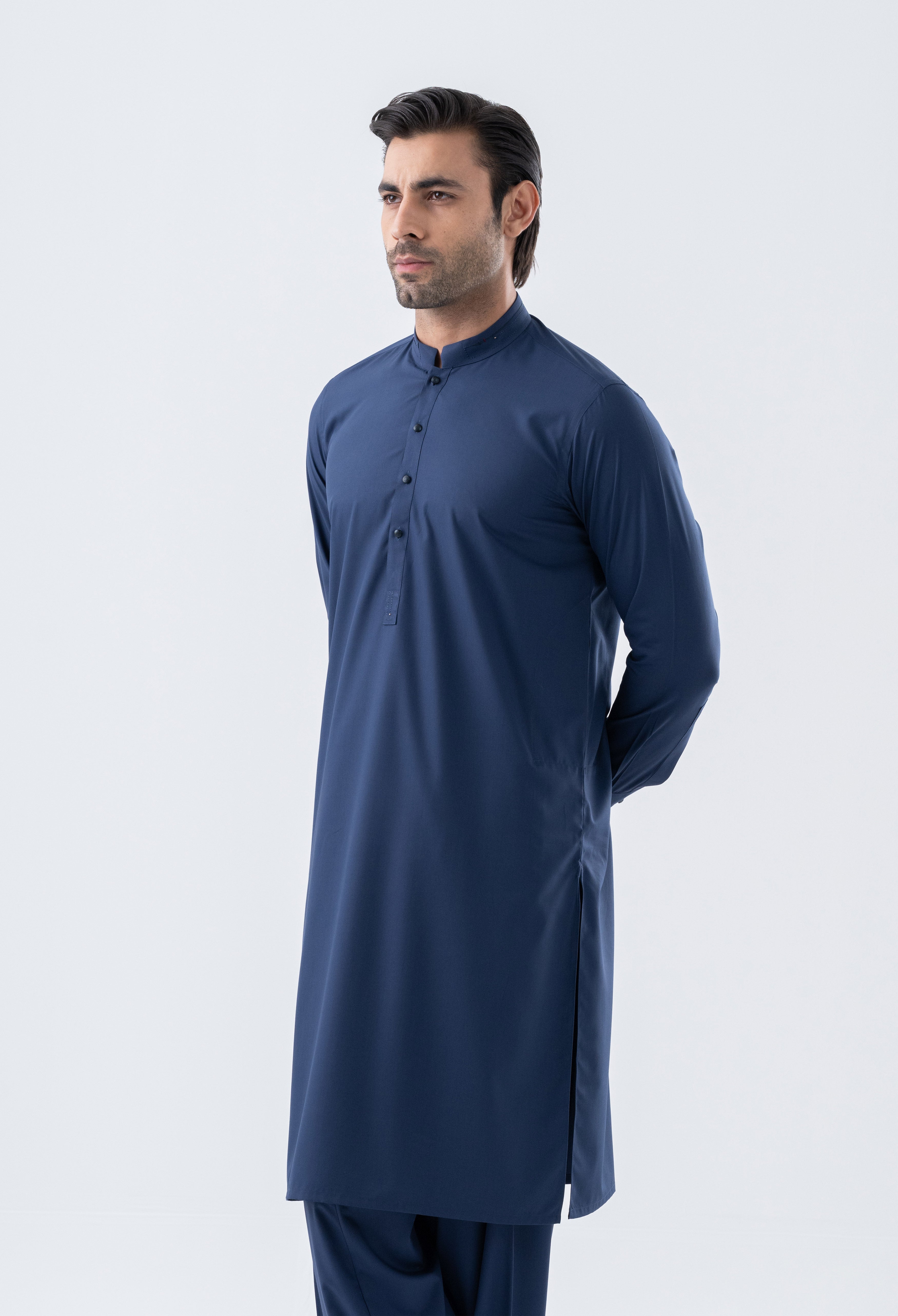 Introducing SILKY & SILKO—your ultimate casual Shalwar Suit that redefines elegance. This slim-fit masterpiece features a fabric panel and distinctive commando stitching on the collar cuff, complemented by intricate kaj Pati and galfi detailing. The band detailing on the collar adds a modern twist, while the metal fancy buttons elevate the overall look.