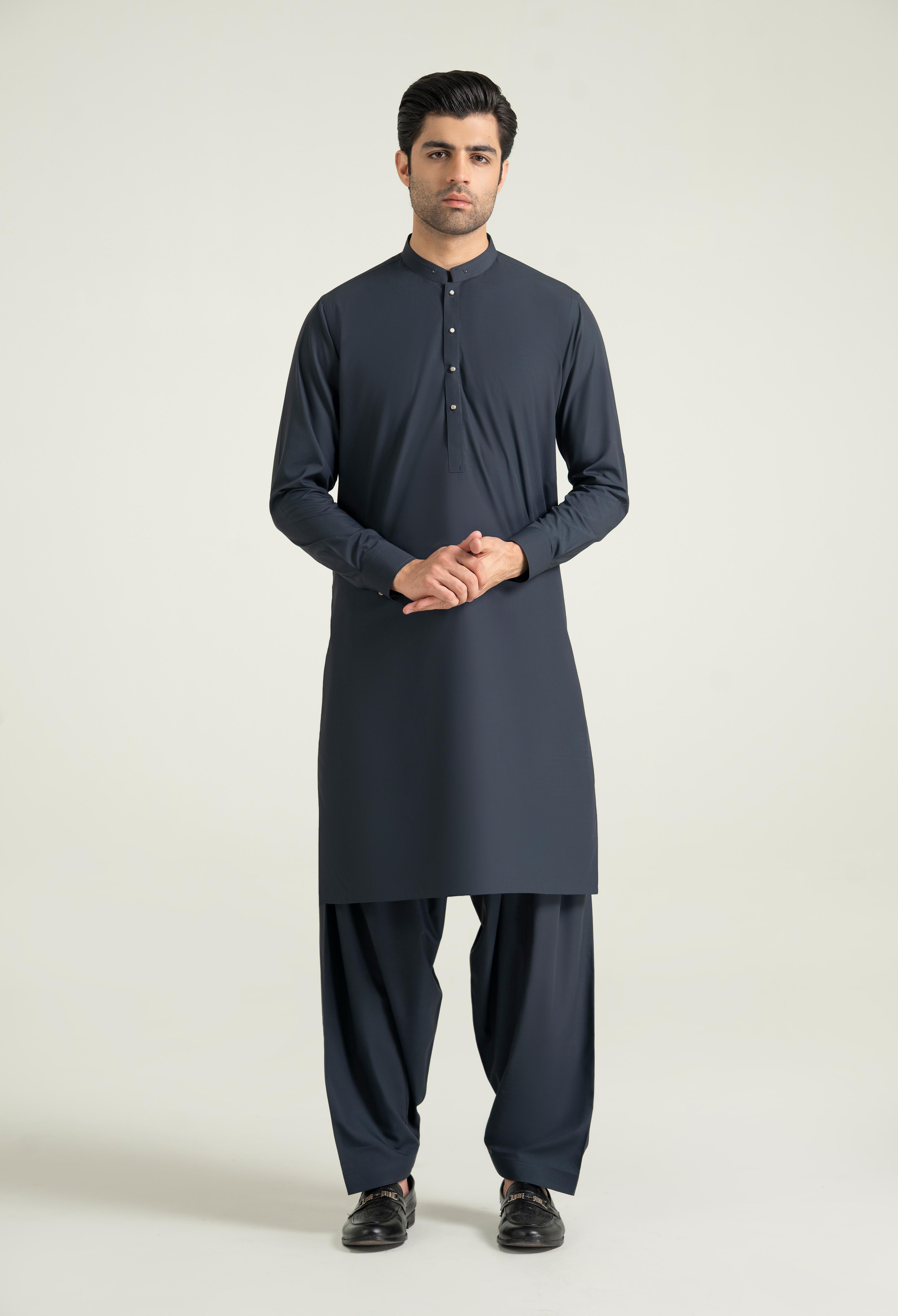 Navy Blue Blended Kameez Shalwar