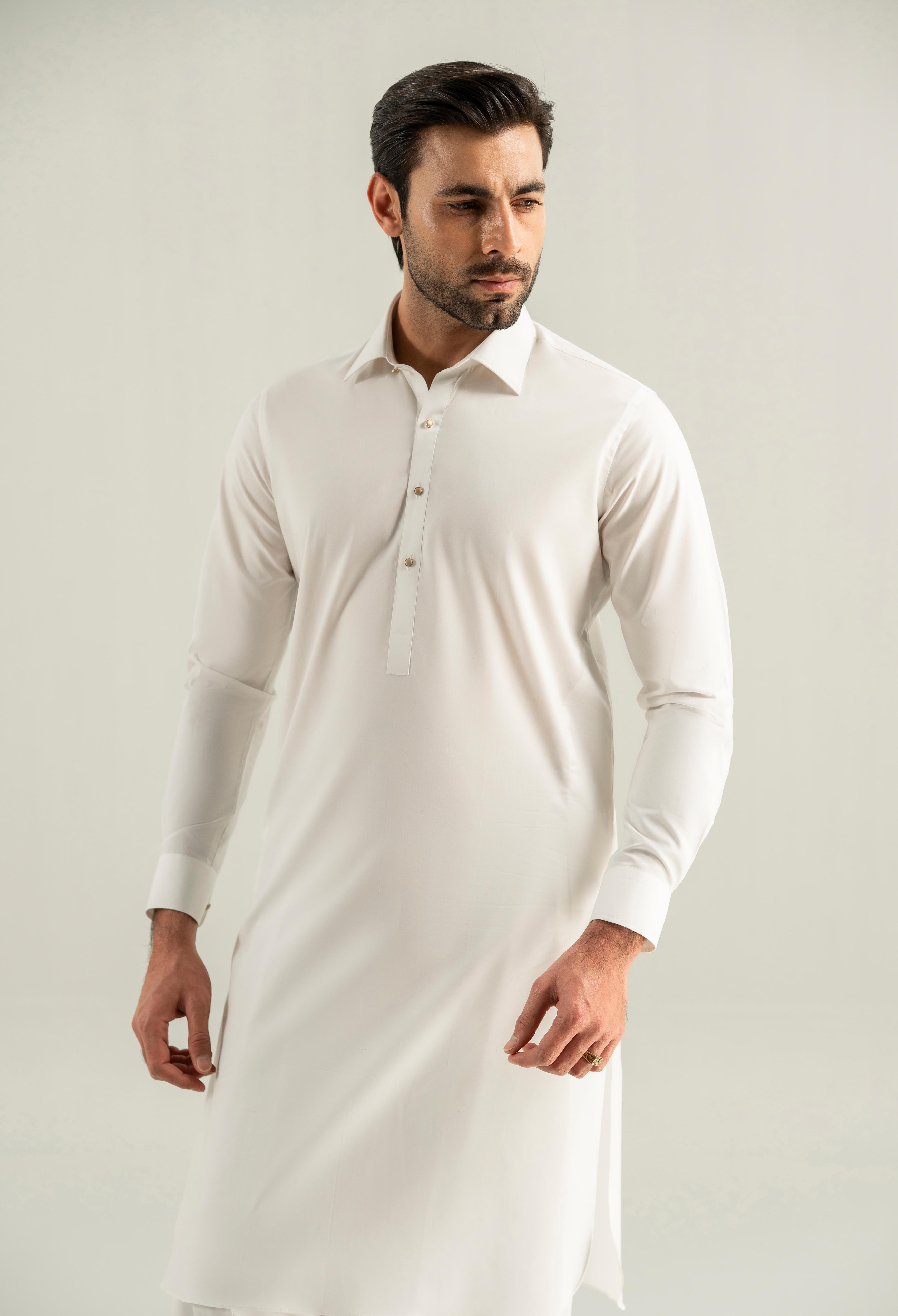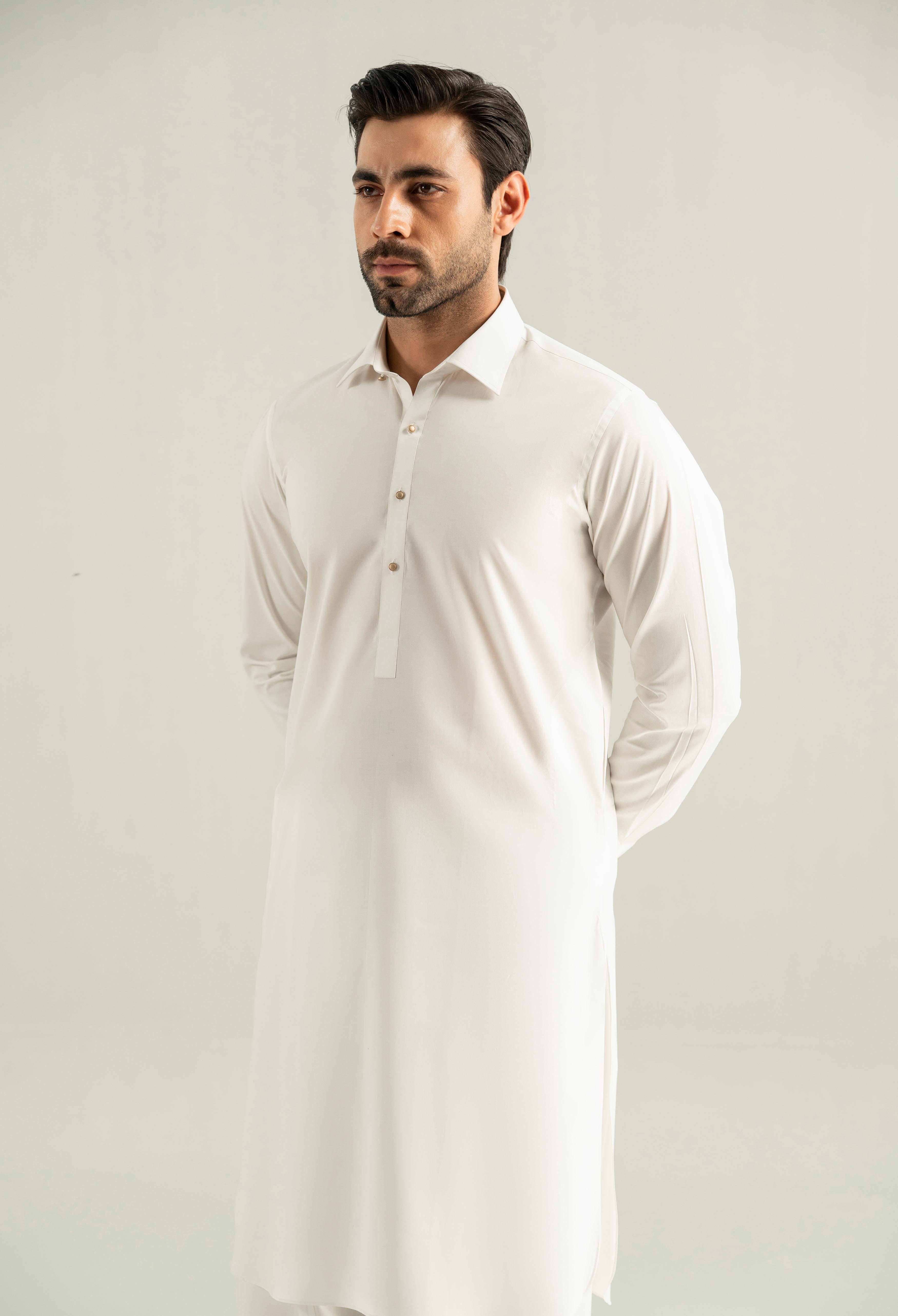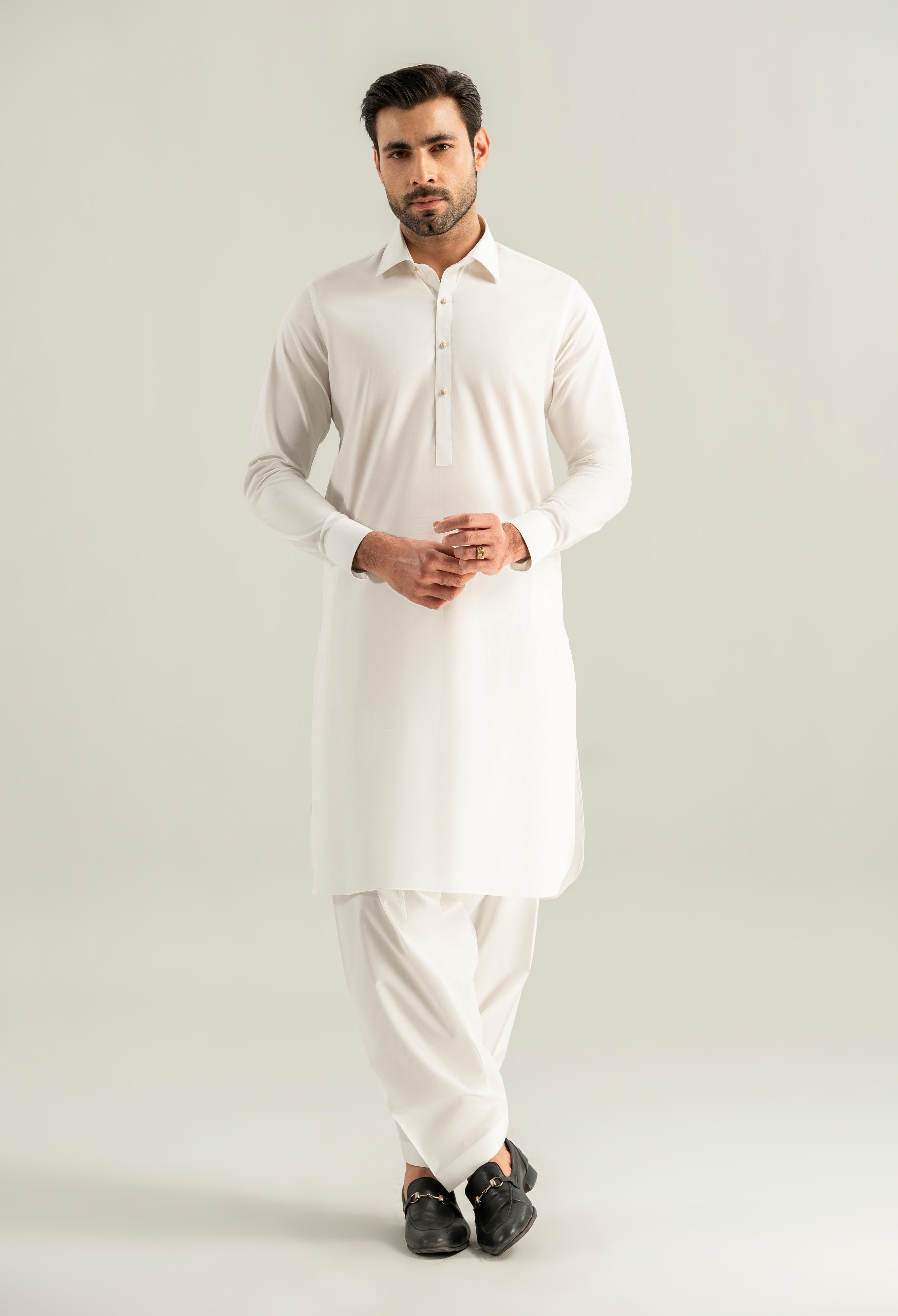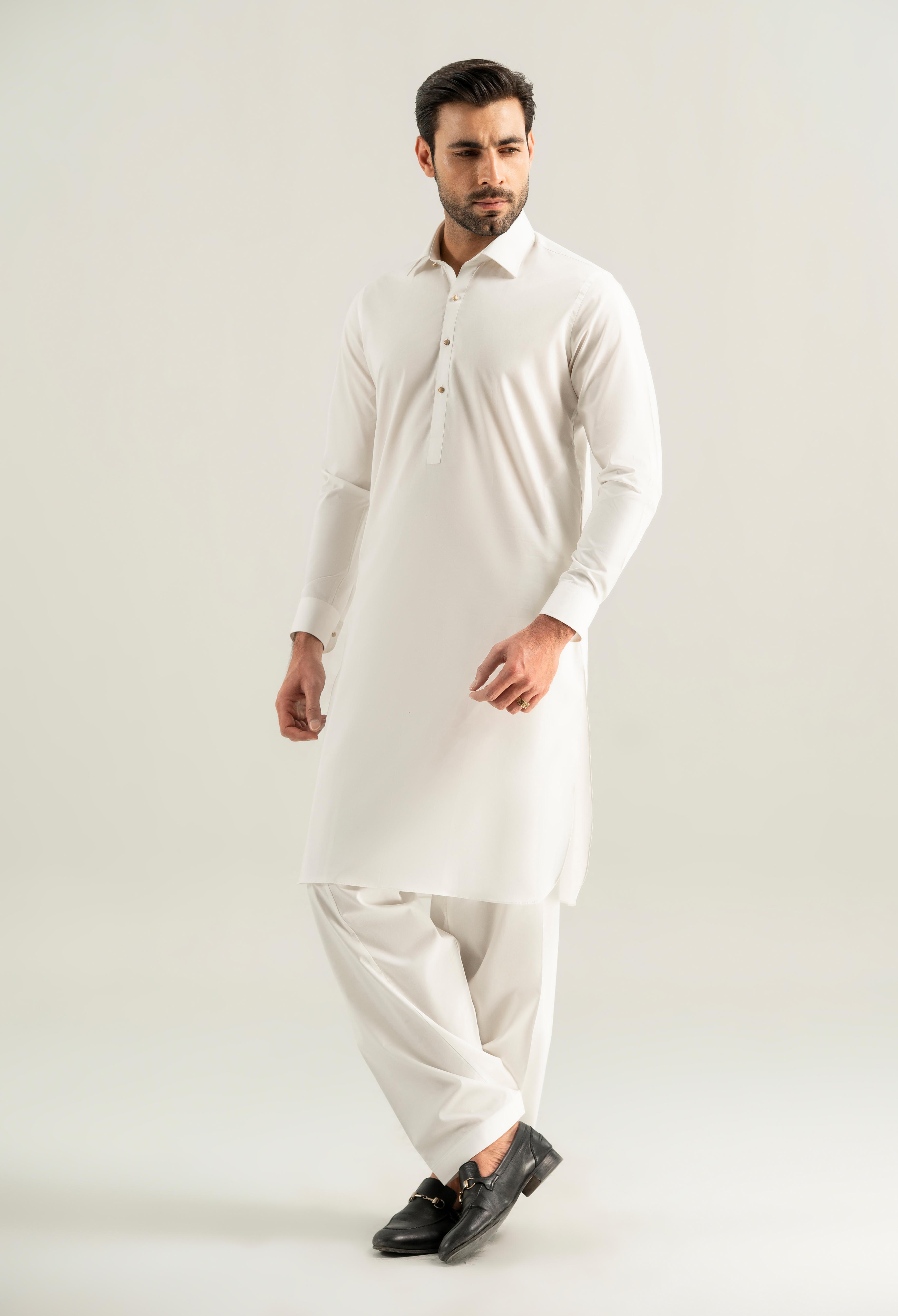 Off White Cotton Kameez Shalwar