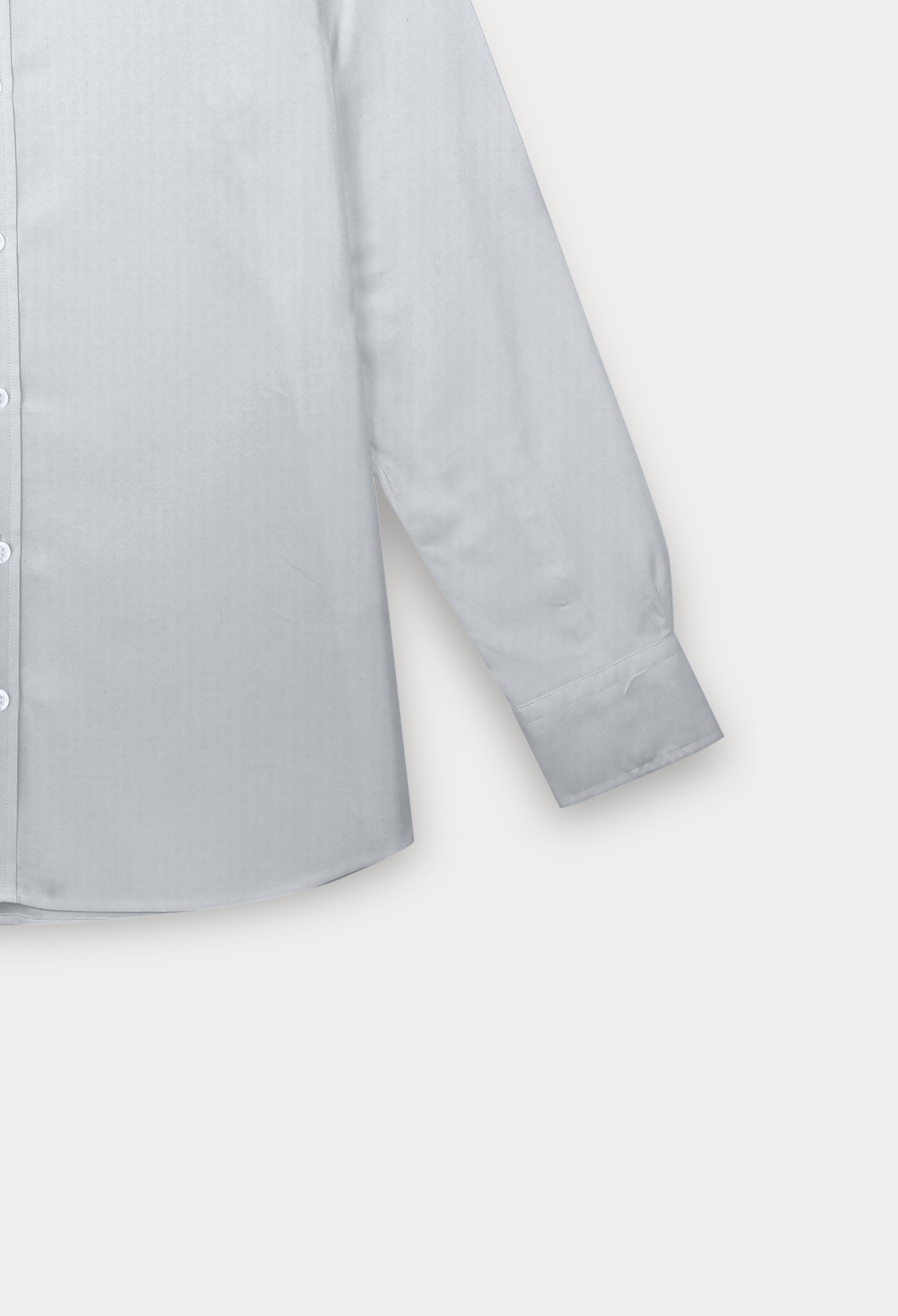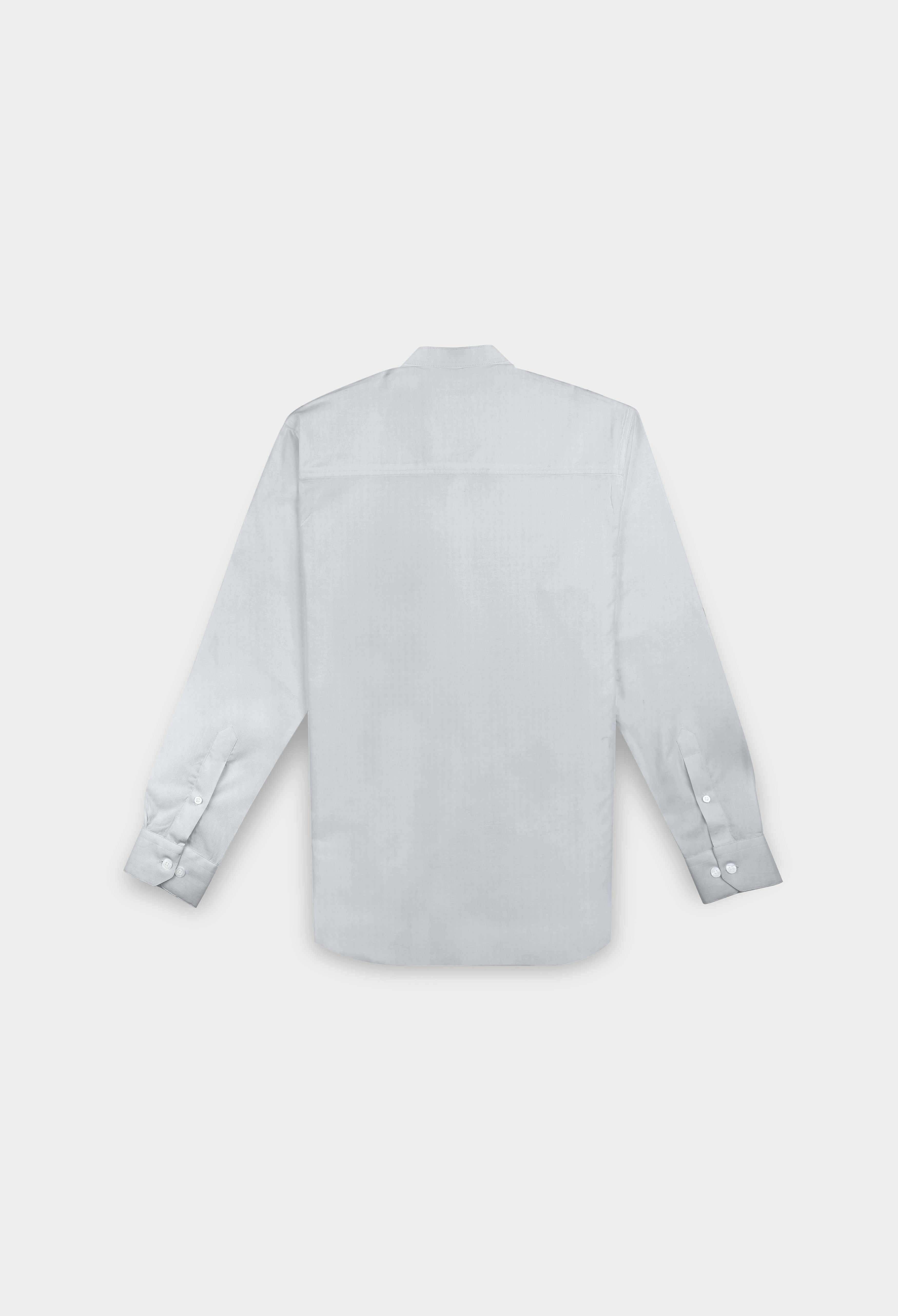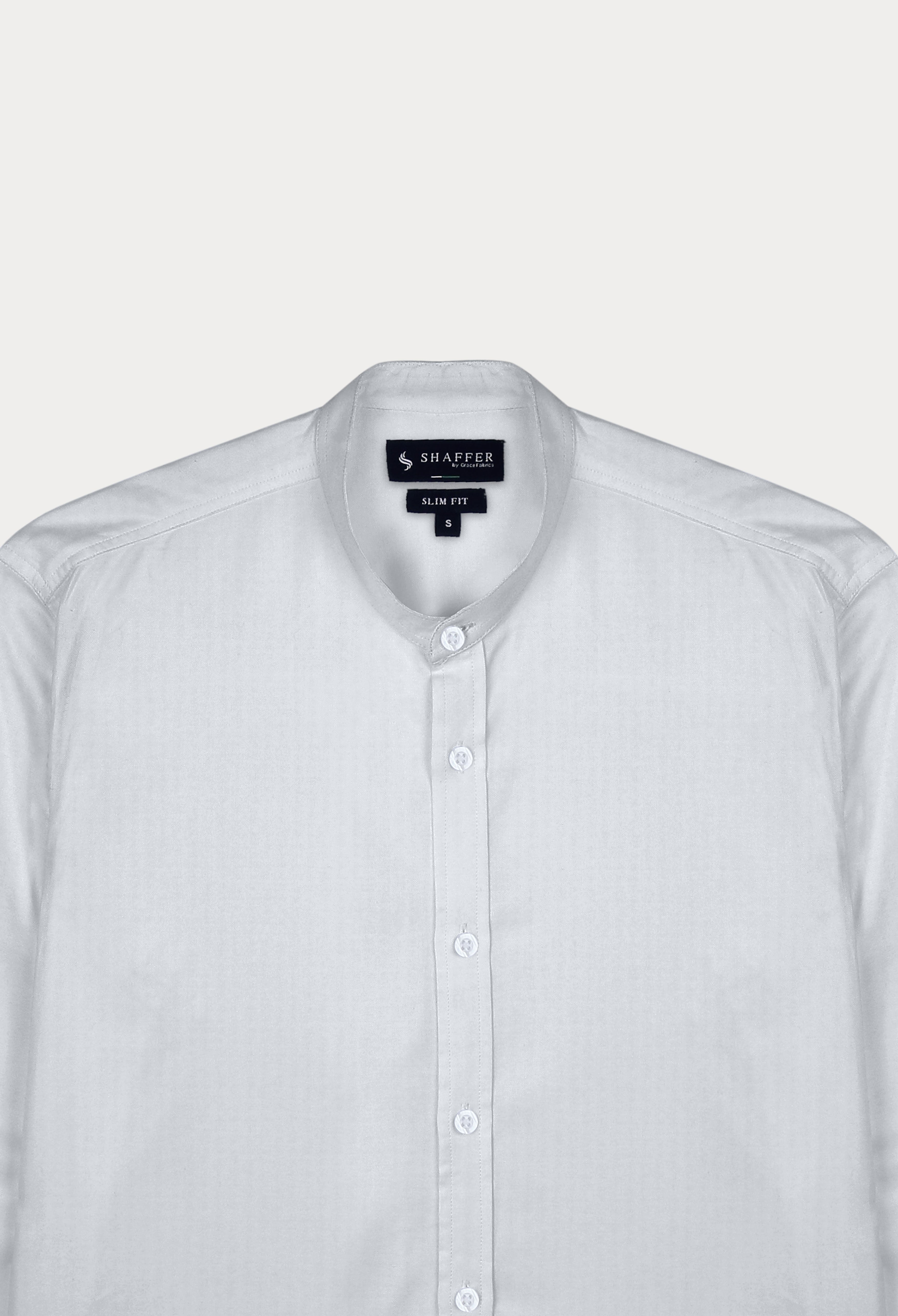 This Grey Semi Formal Shirt is crafted from 100% Cotton and includes a Band collar and slim fit styling for a semi formal look.